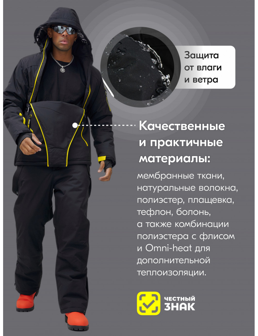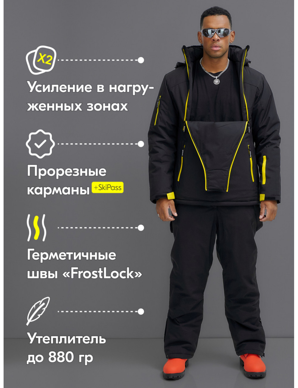 Не упустите шанс сделать свой зимний отдых незабываемым! Закажите мужской горнолыжный костюм прямо сейчас и наслаждайтесь каждым моментом на склонах! Доставка по Москве и Московской области Мужской зимний горнолыжный костюм-анорак, чёрный