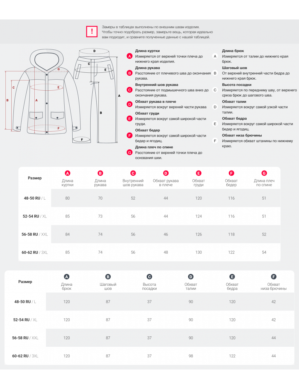 Фиксаторы | На капюшоне, по низу куртки, на рукавах, по низу брюк |