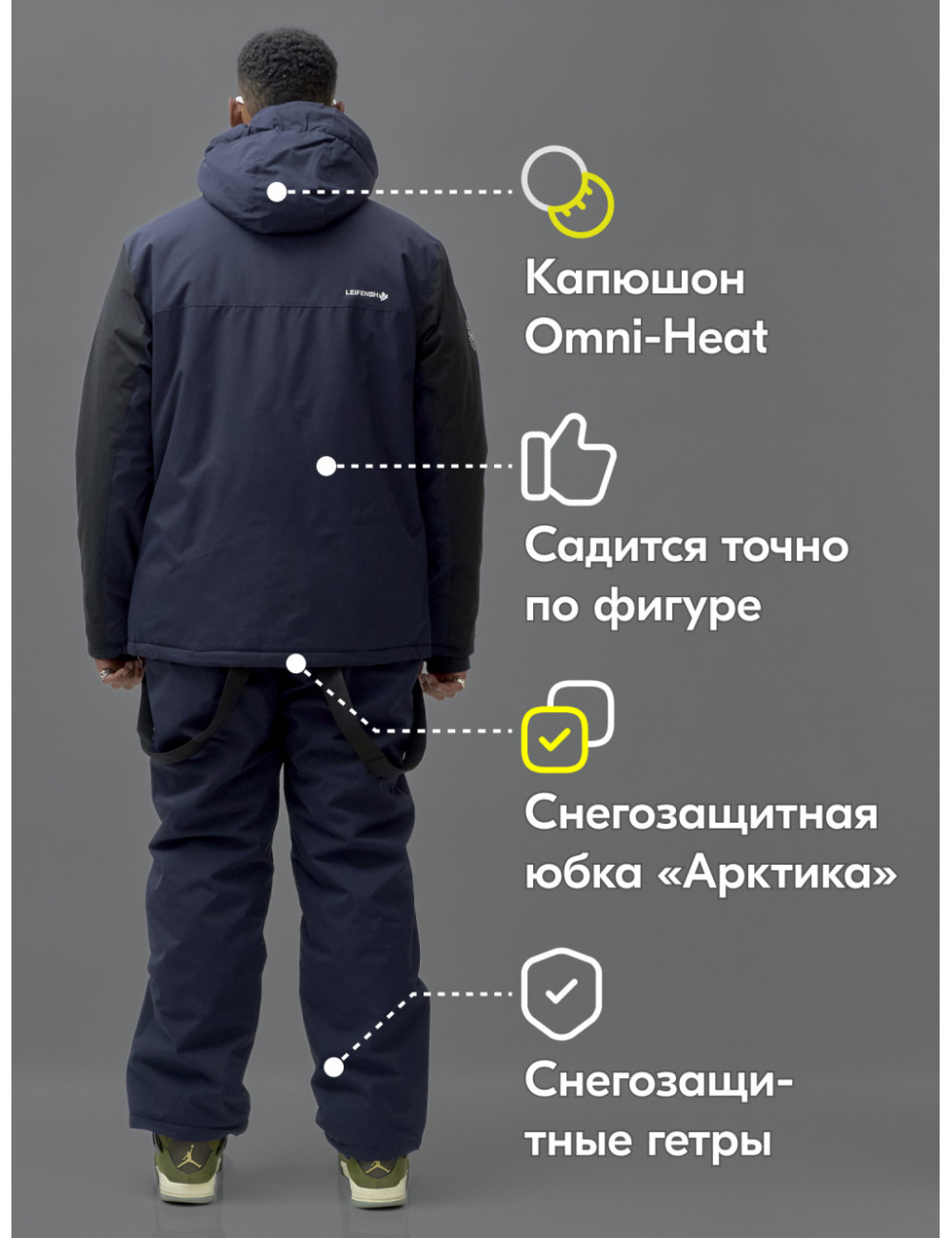 Технические характеристики Мужской зимний горнолыжный костюм синего цвета