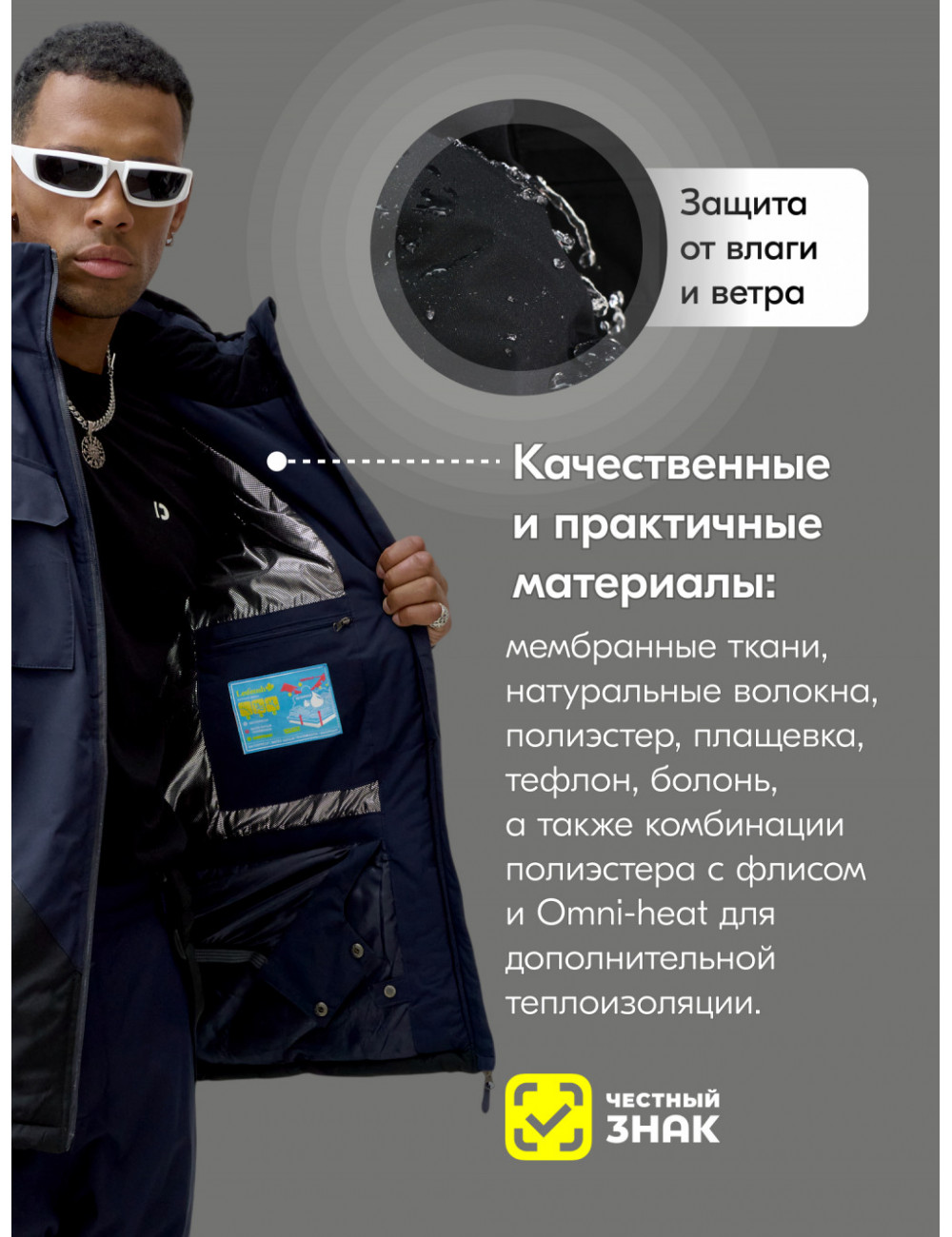 Вид застежкиДвойная молния/Кнопки/Липучки/Крючки | Вид одеждыГорнолыжная/Свободная/Утепленная модель | Внутренние карманыЕсть |