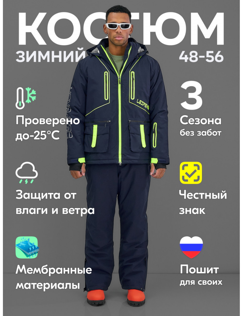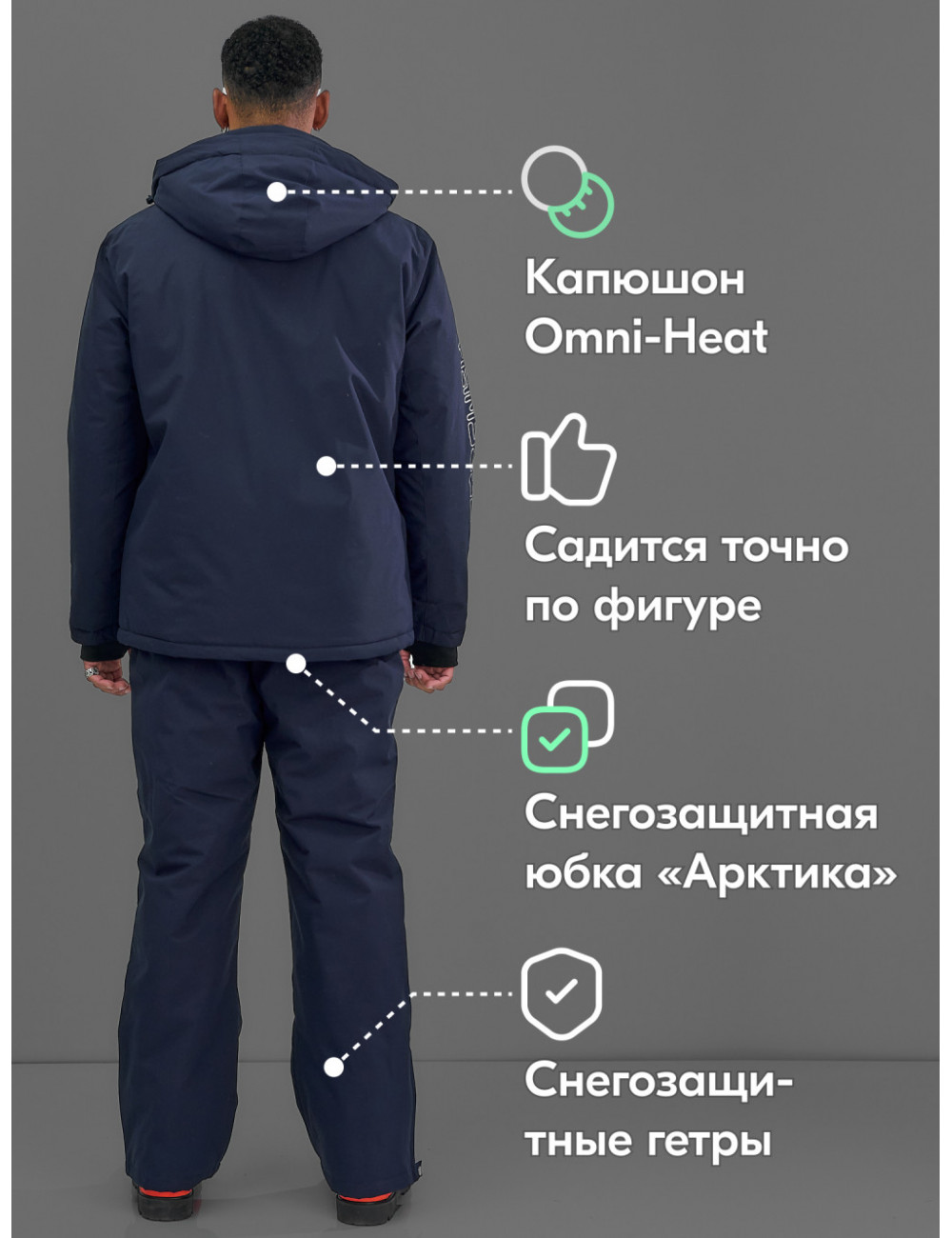 Технические характеристики Мужской зимний горнолыжный костюм, тёмно-синий