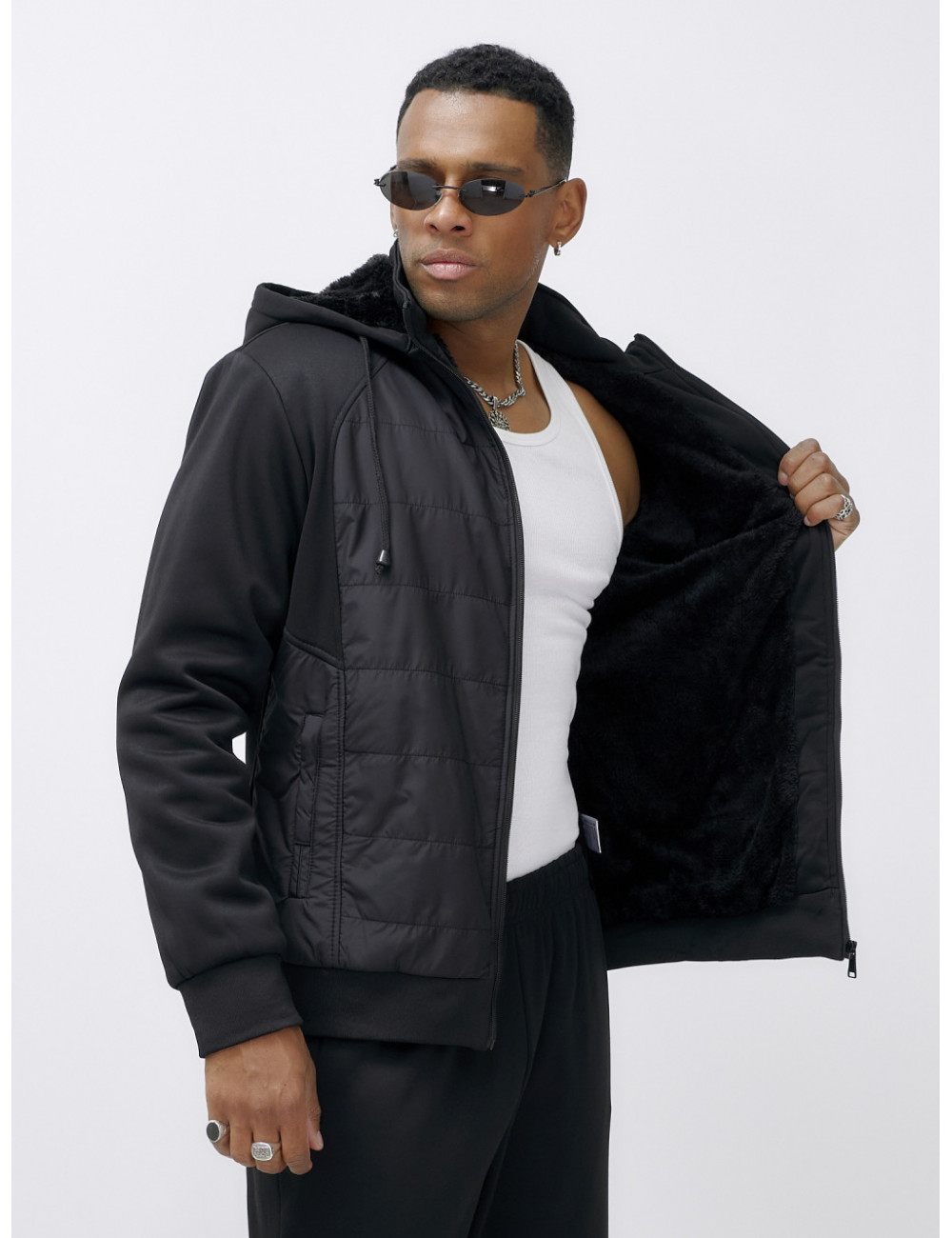 Технические характеристики Мужской зимний спортивный костюм с начёсом, чёрный