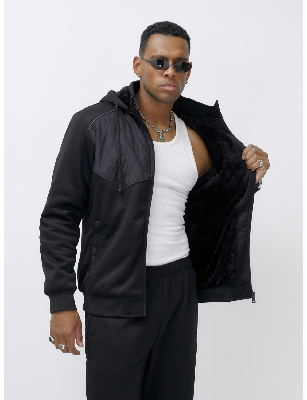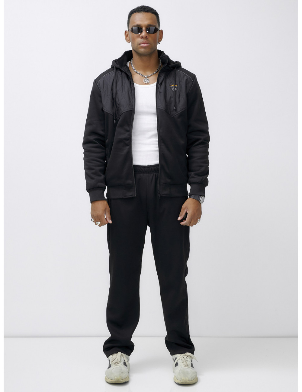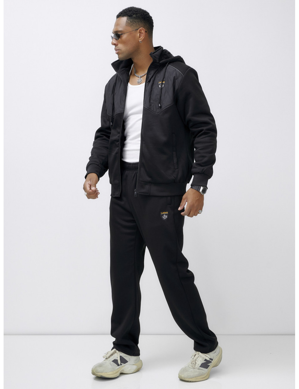 Этот костюм можно сочетать с термобельём и тёплыми ботинками для максимального комфорта в холодное время года. Также он отлично подойдёт к зимним аксессуарам, таким как шапки и перчатки в тон. Доставка по Москве и Московской области Мужской зимний спортивный костюм с начёсом, чёрный.