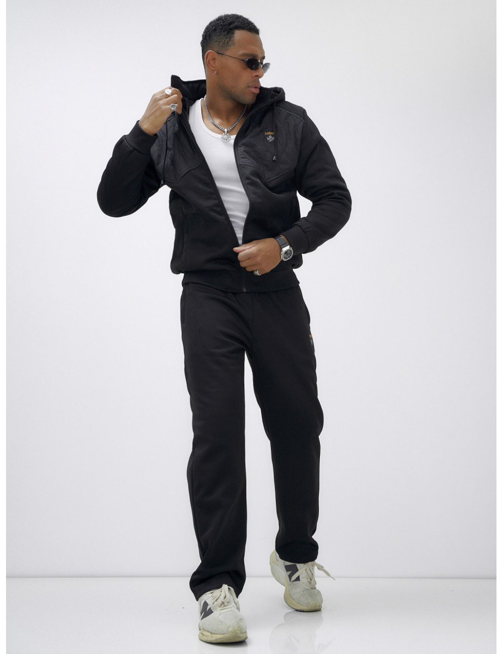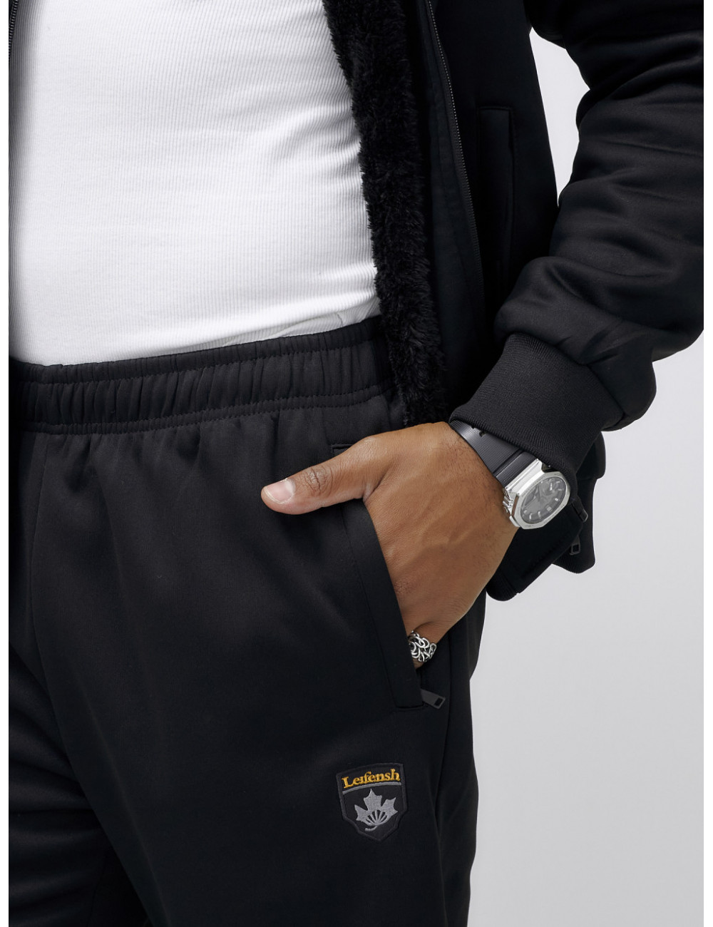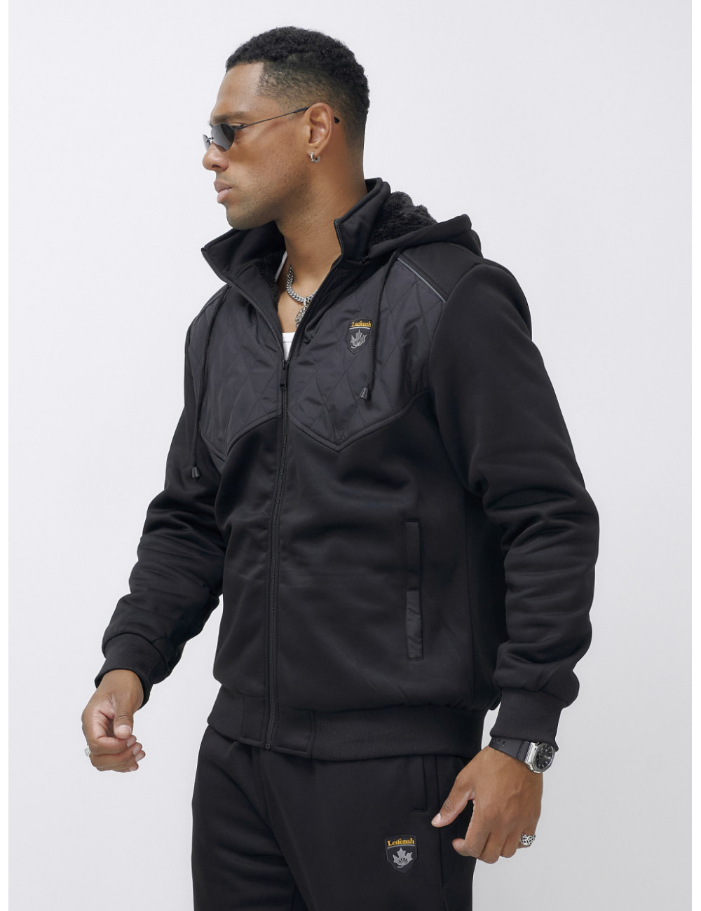 Этот костюм можно сочетать с термобельём и тёплыми ботинками для максимального комфорта в холодное время года. Также он отлично подойдёт к зимним аксессуарам, таким как шапки и перчатки в тон. Доставка по Москве и Московской области Мужской зимний спортивный костюм с начёсом, чёрный.