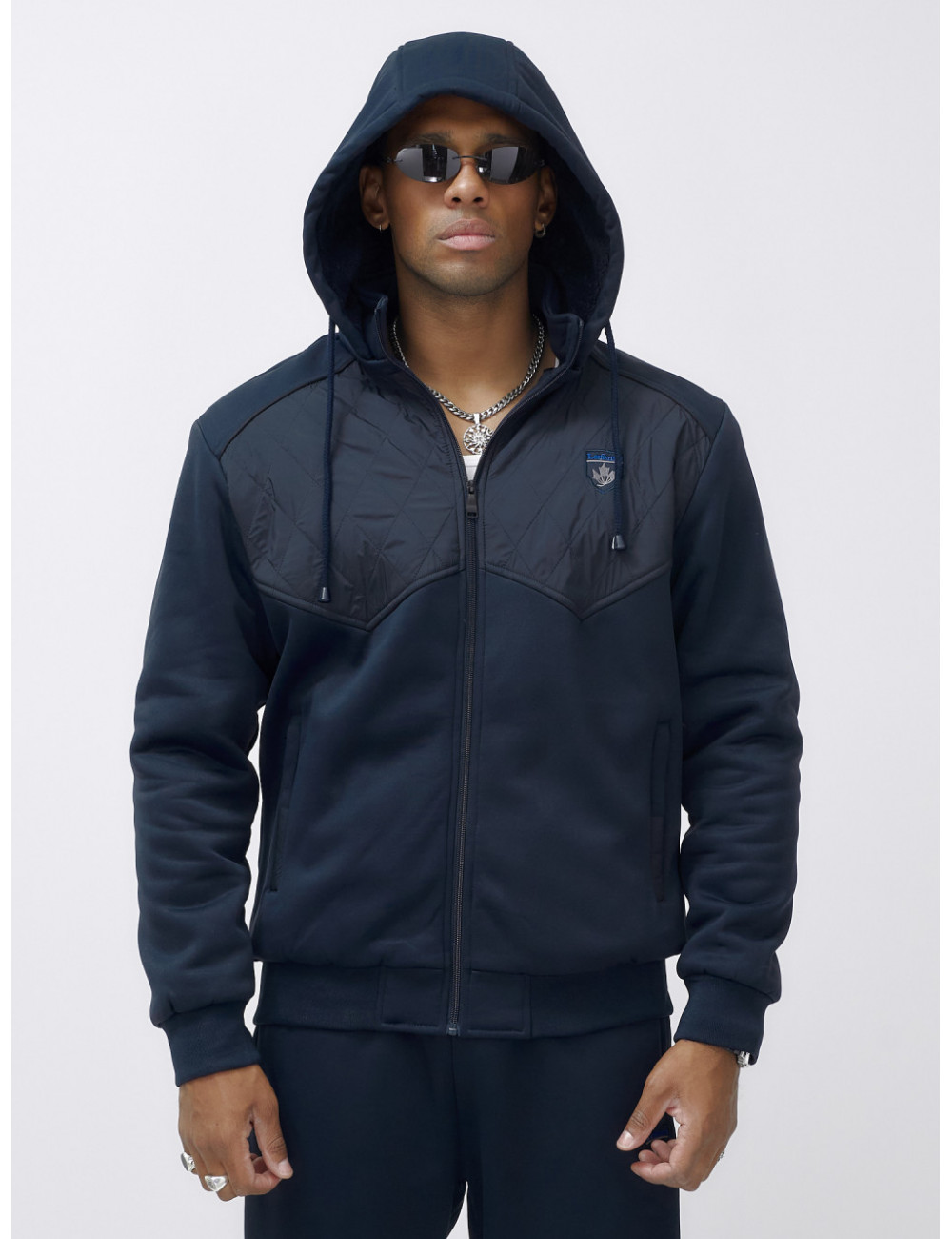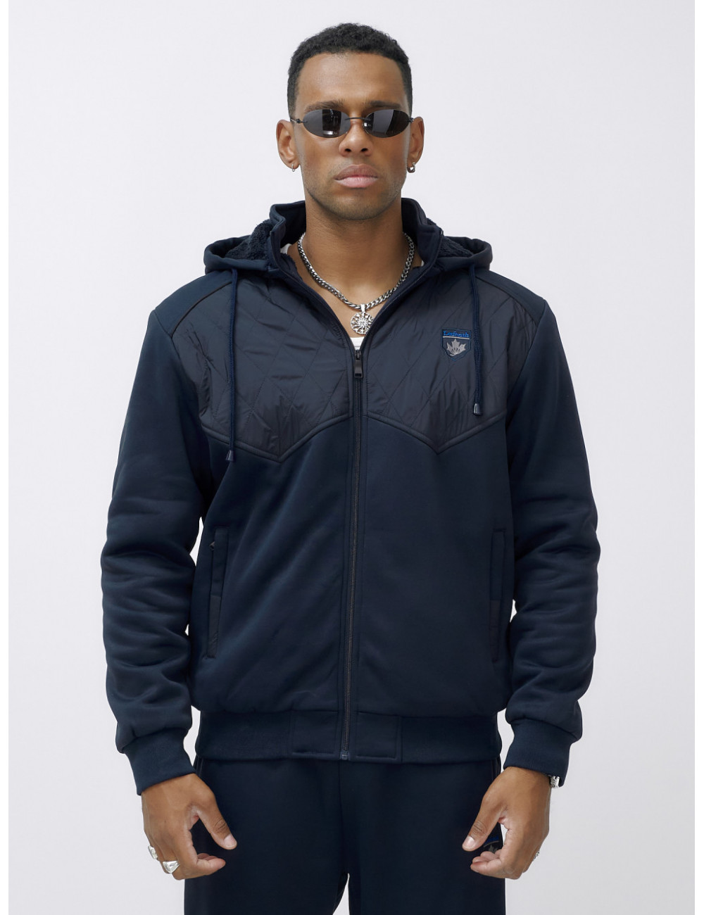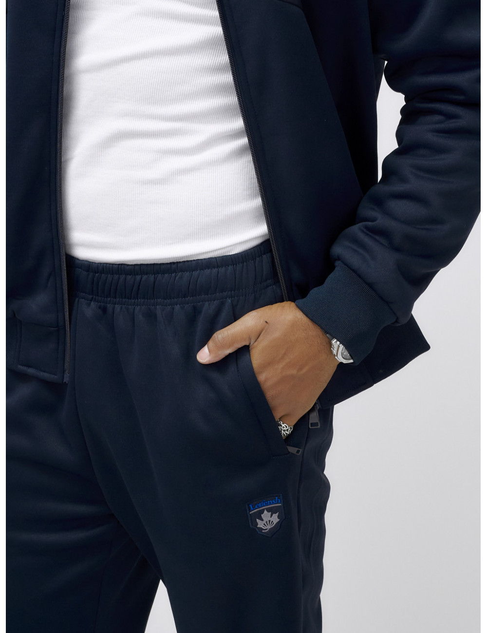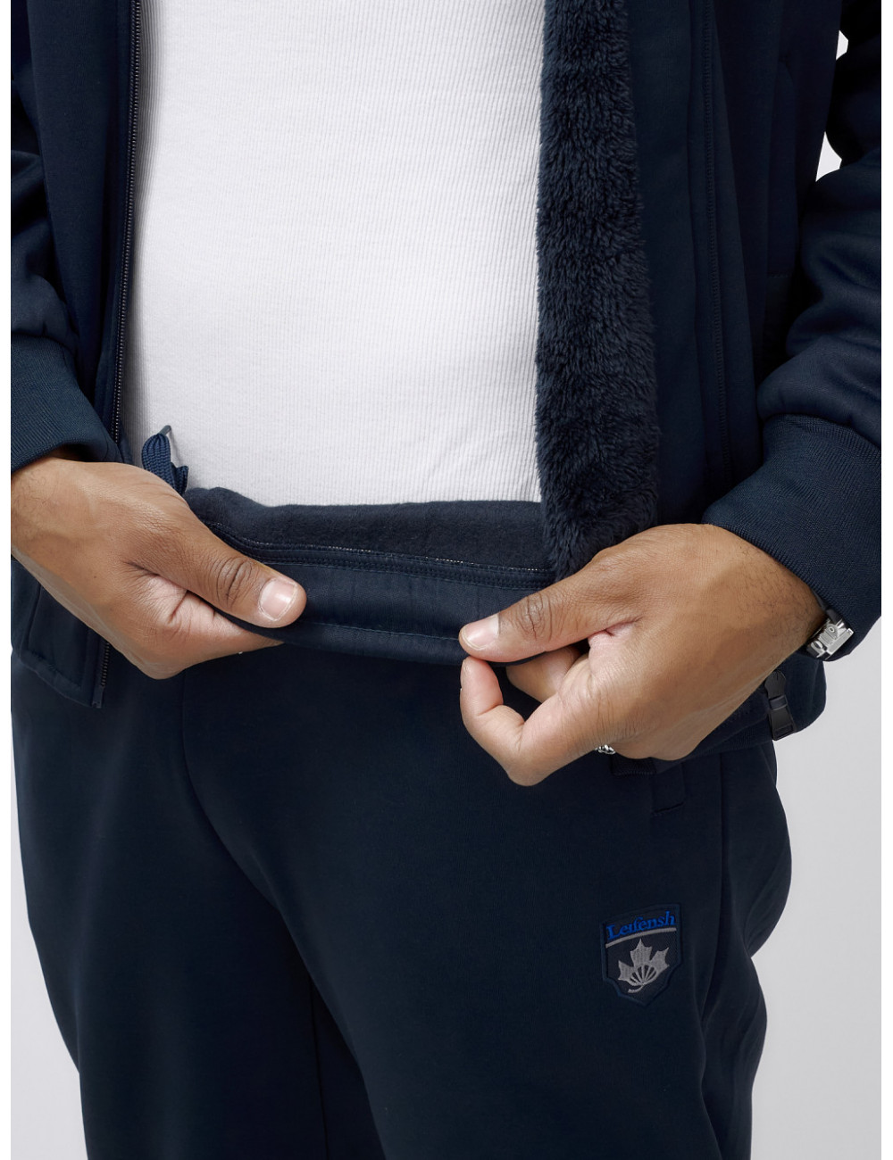 Этот костюм можно сочетать с различными аксессуарами и обувью, чтобы создать уникальный образ. Например, с тёплыми перчатками, шарфом и шапкой из аналогичного материала. Отлично подойдёт для создания стильного и комфортного образа в холодное время года. Доставка по Москве и Московской области Мужской зимний спортивный костюм с начёсом, тёмно-синий.