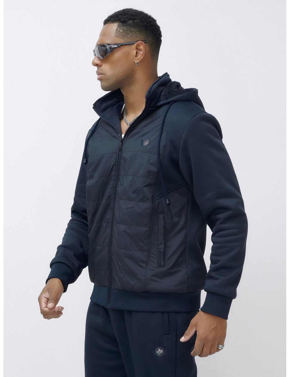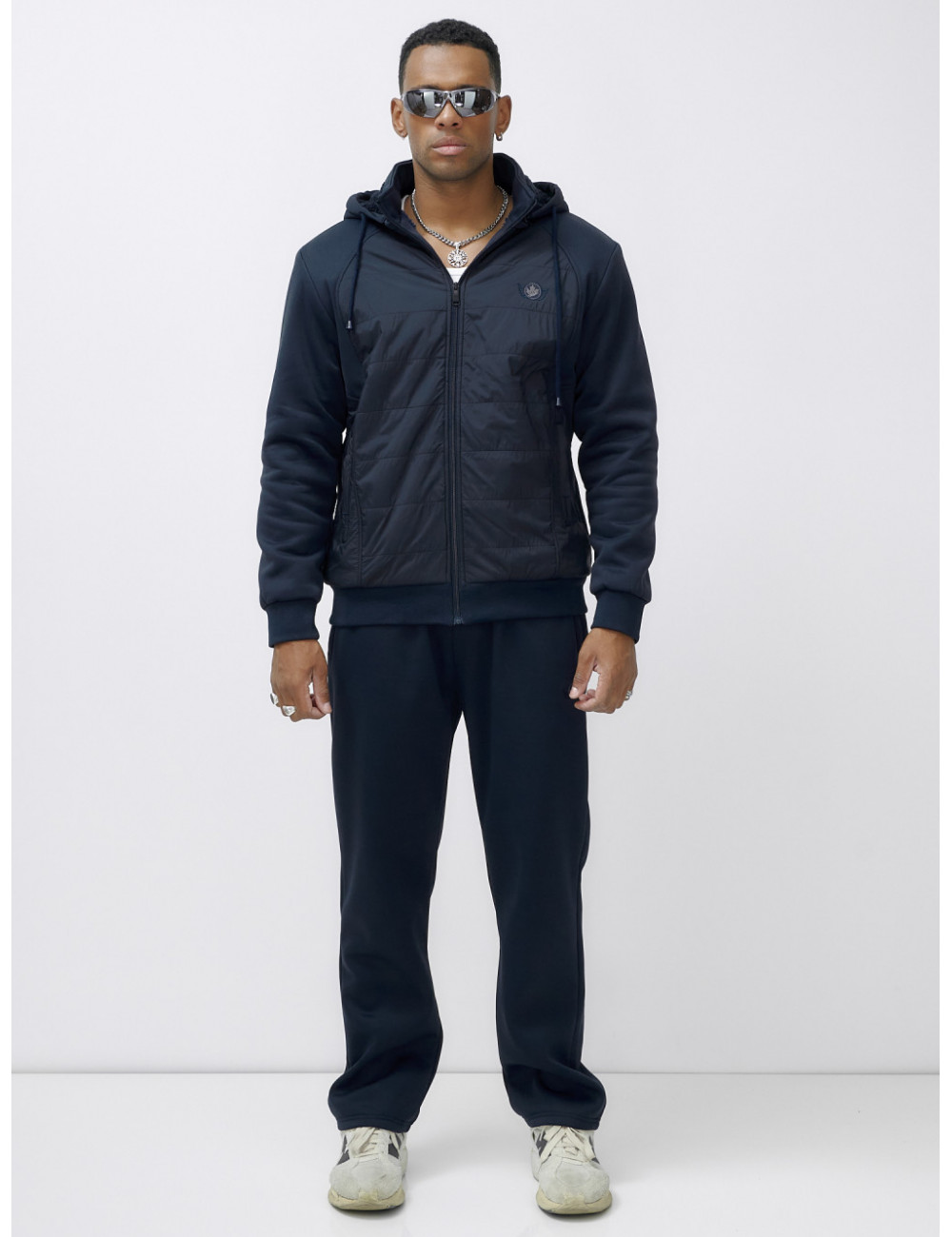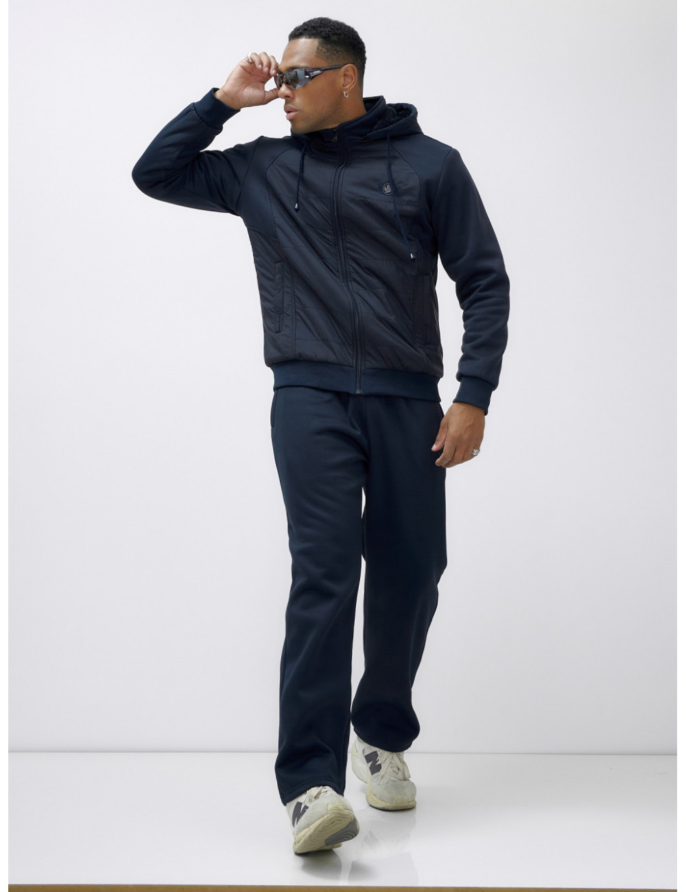 Костюм можно сочетать с термобельём, тёплыми носками и шарфом для максимального комфорта в холодную погоду. Также отлично подойдёт для создания стильного образа с шапкой и перчатками в аналогичном стиле. Доставка по Москве и Московской области Мужской зимний спортивный костюм с начёсом, тёмно-синий.
