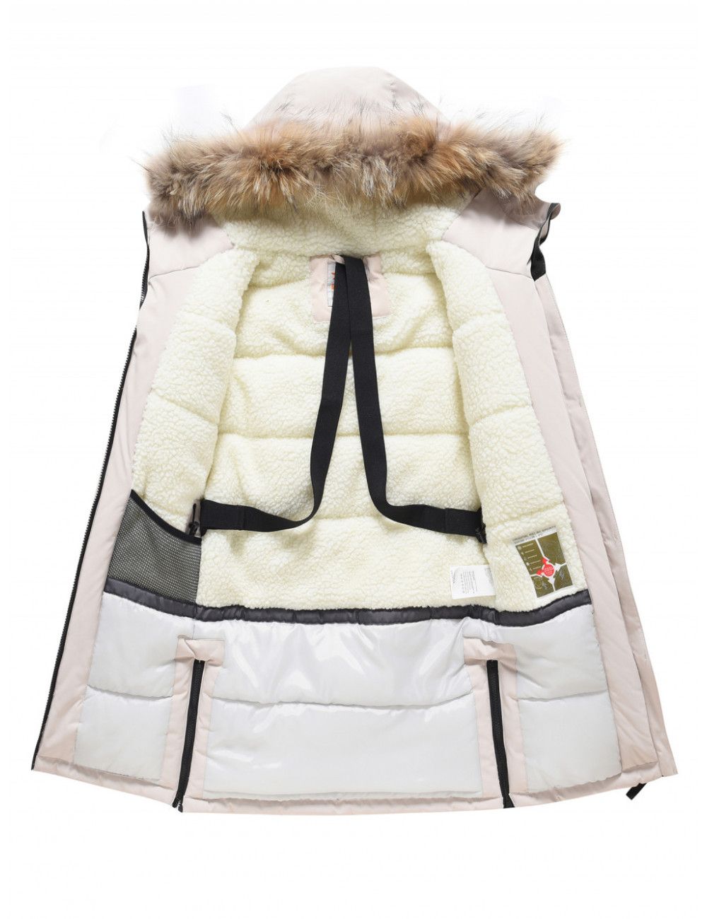 - Внутренние лямки позволяют удобно носить парку на плечах, освобождая руки.