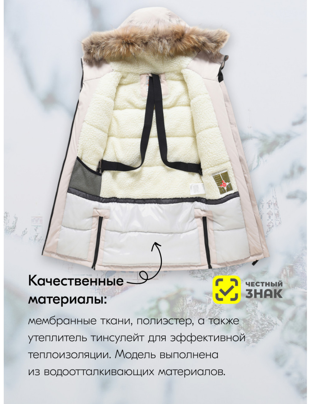 | Материал подкладки воротника | Полиэстер/Овчина |