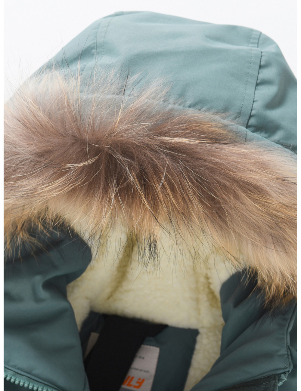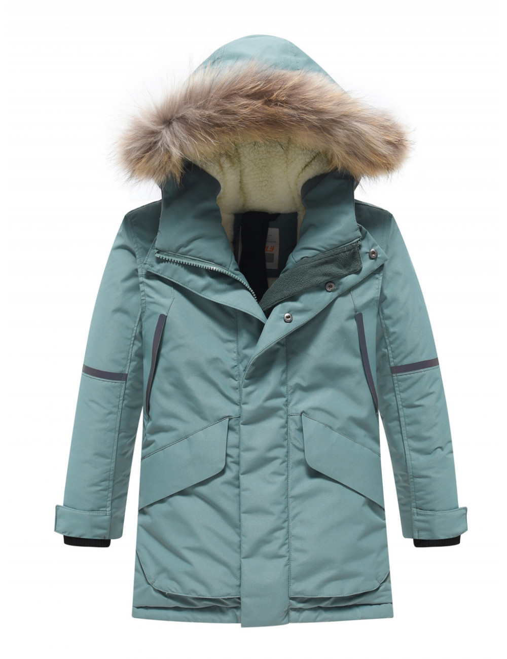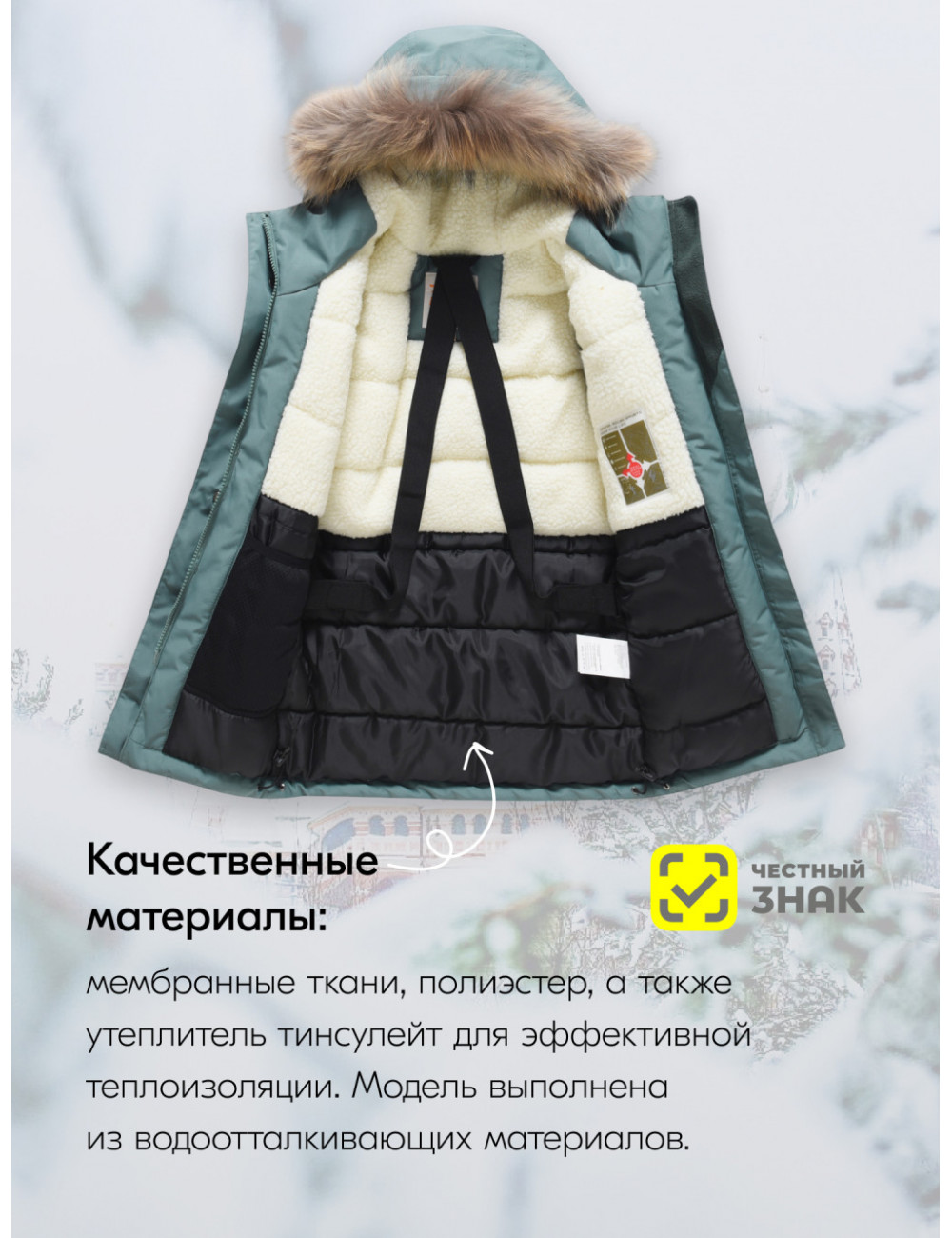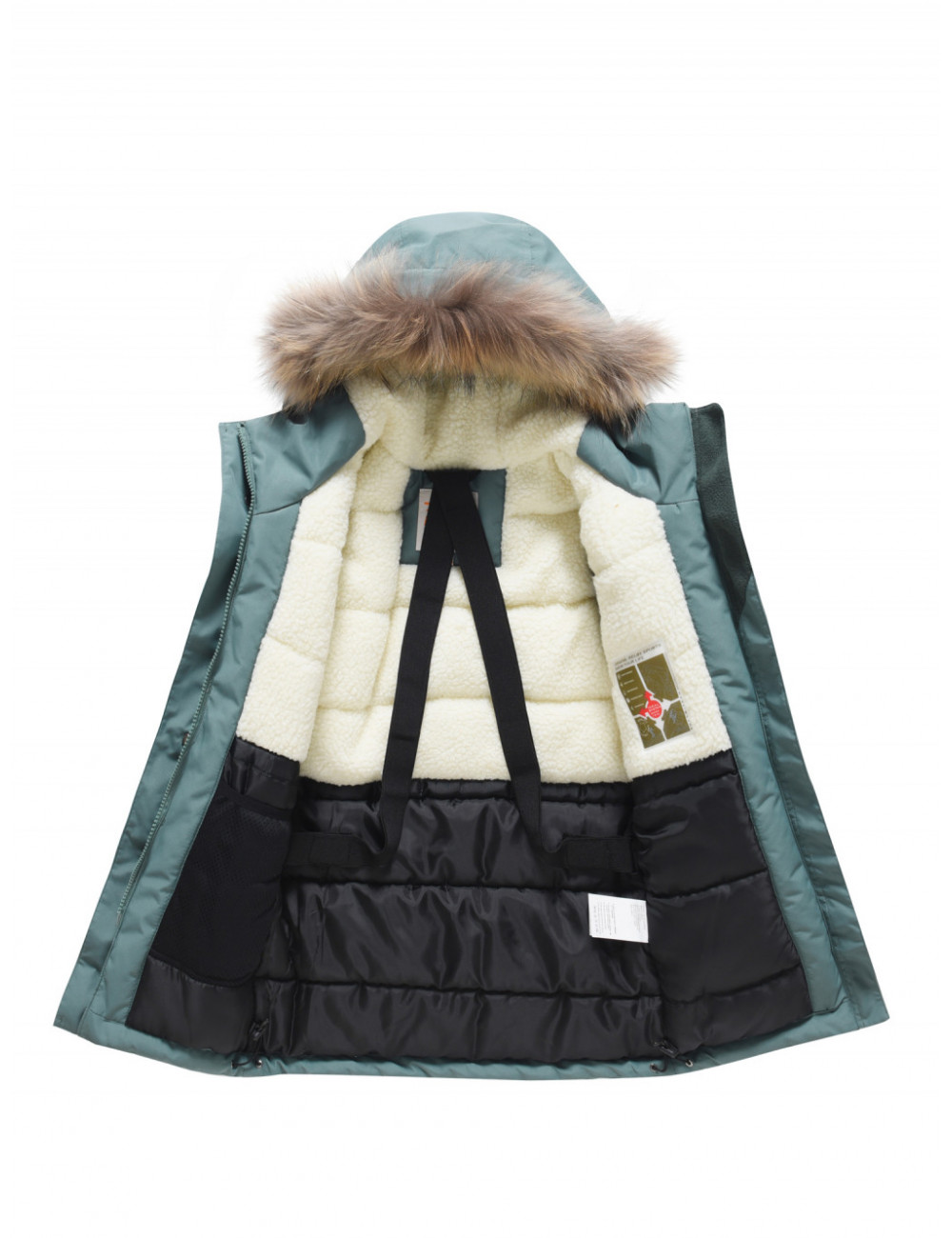 - Натуральный мех съёмной опушки: добавляет стильный акцент и дополнительное тепло в холодную погоду.