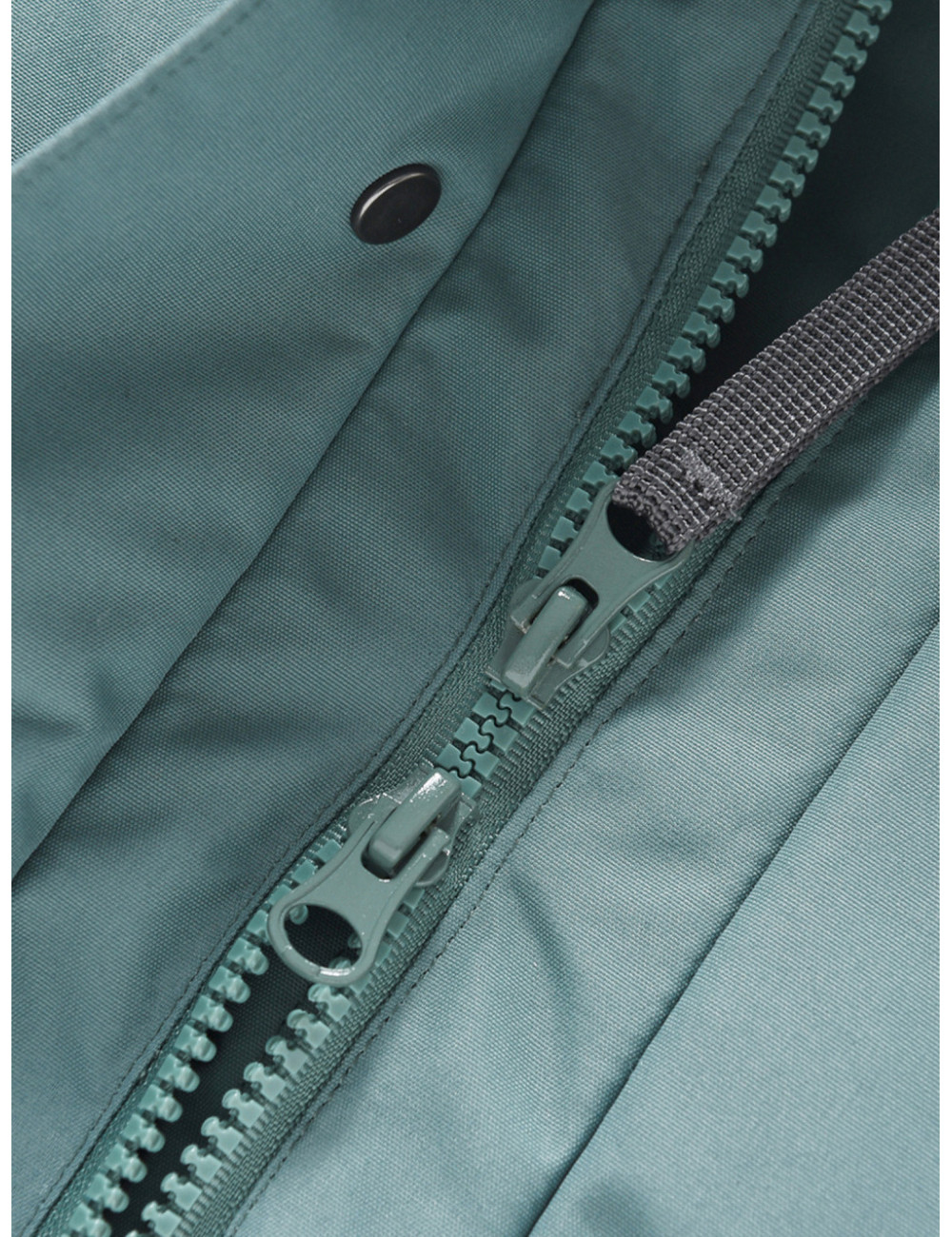 - Прорезные карманы, скрытые ветрозащитной планкой: удобное место для хранения мелочей, защищённое от ветра и снега.