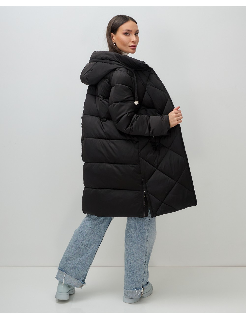 Эта модель с шероховатой стёганой фактурой станет вашим незаменимым спутником этой осенью и зимой, защищая от ветра и влаги, а также обеспечивая гипоаллергенность. Не упустите возможность приобрести это потрясающее пуховик-пальто и ощутите на себе сочетание стиля, комфорта и защиты от непогоды! Доставка по Москве и Московской области Пуховик-пальто женский утеплённый с капюшоном, чёрный