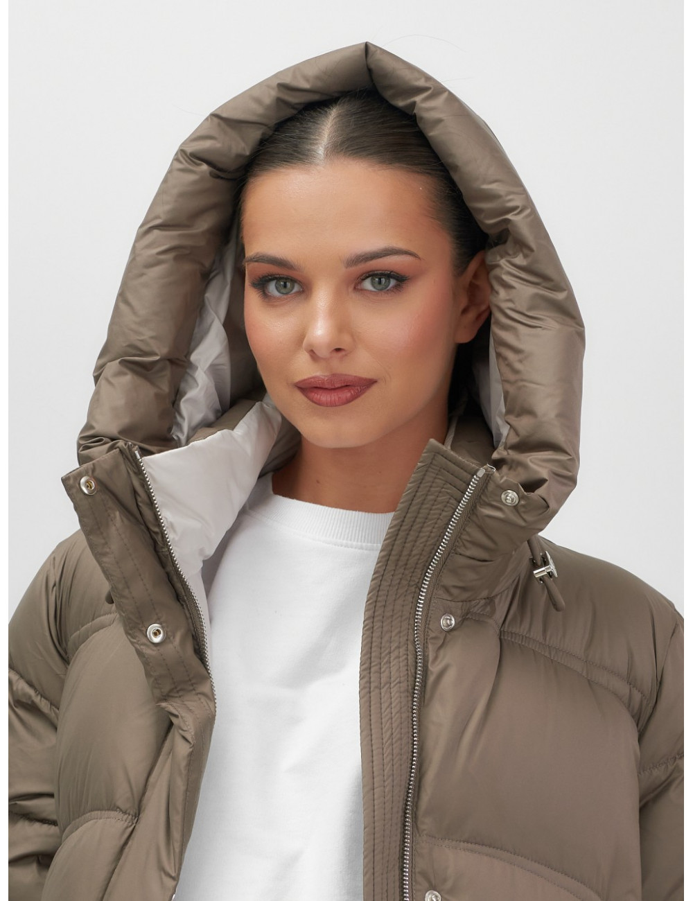 Выберите из четырёх классических цветов: коричневый, чёрный, бежевый и хаки, и добавьте этот модный и функциональный элемент в свой гардероб! Пуховик-пальто из коллекции осень-зима 2025 станет незаменимым спутником в холодное время года. Доставка по Москве и Московской области Пуховик-пальто женский утеплённый с капюшоном коричневый