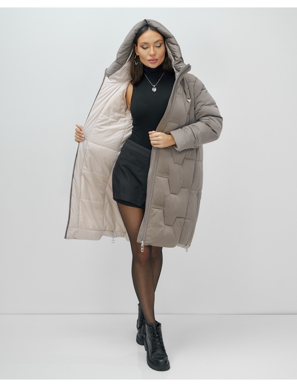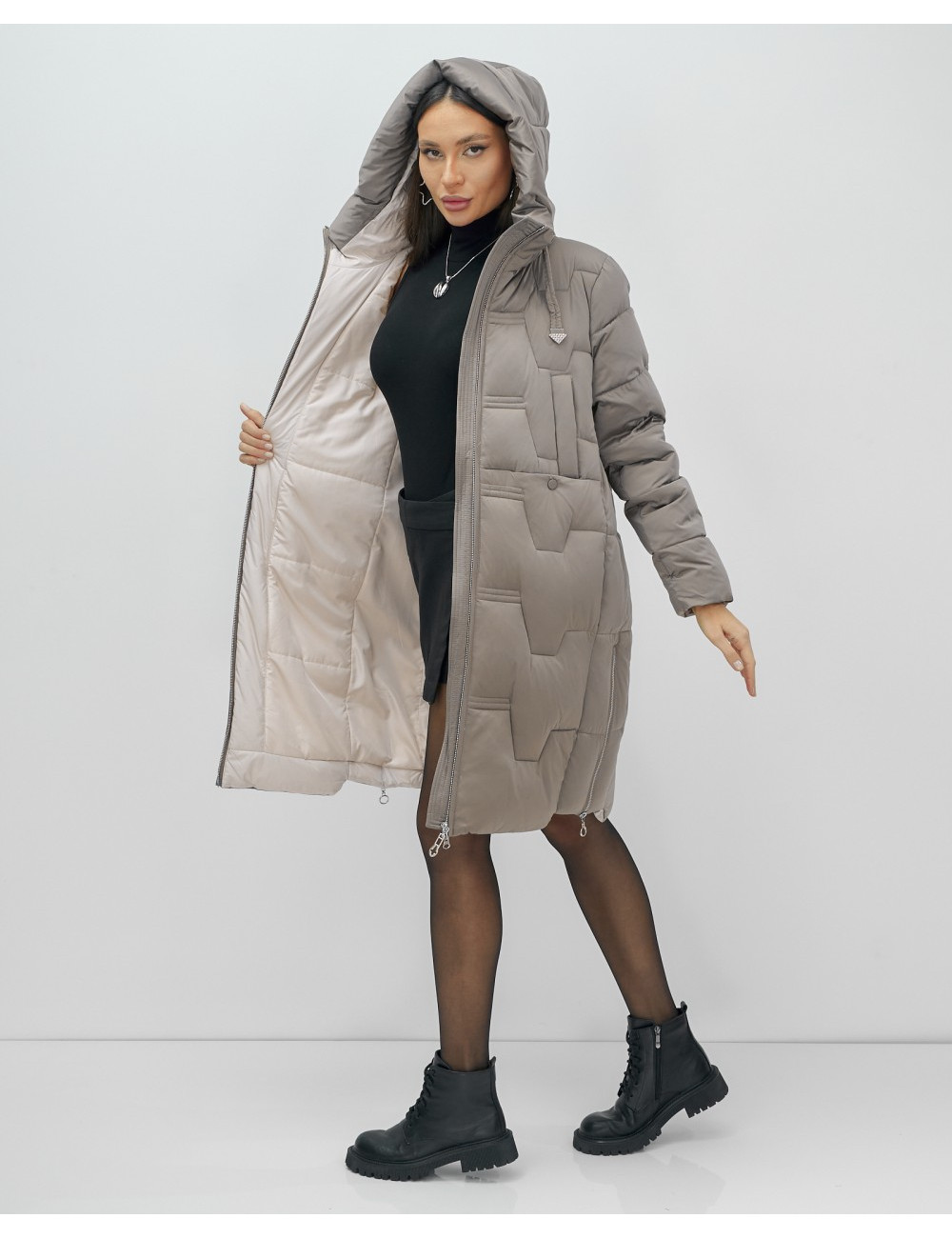 - Стильный вид благодаря элегантному капюшону и удлинённой длине до колена.