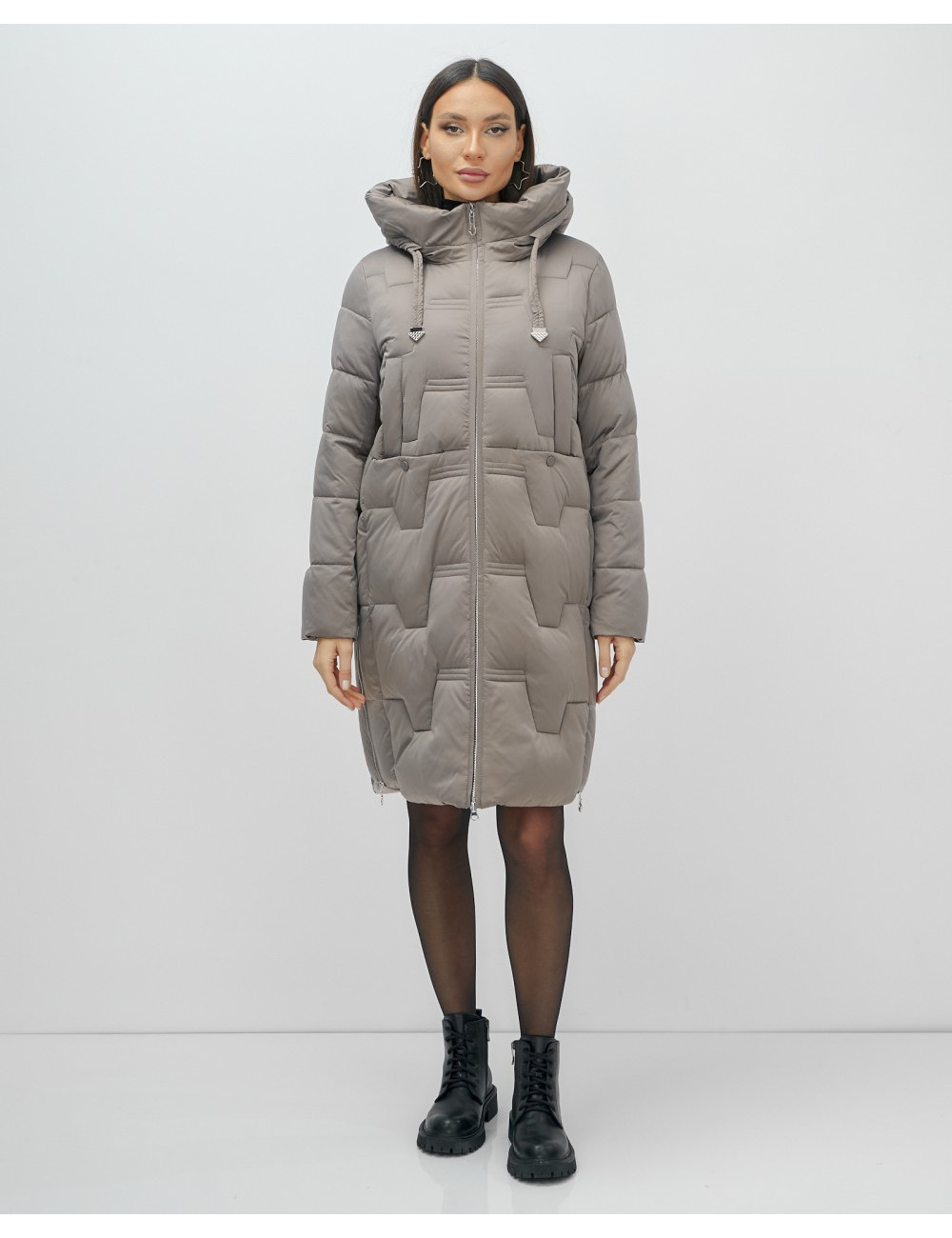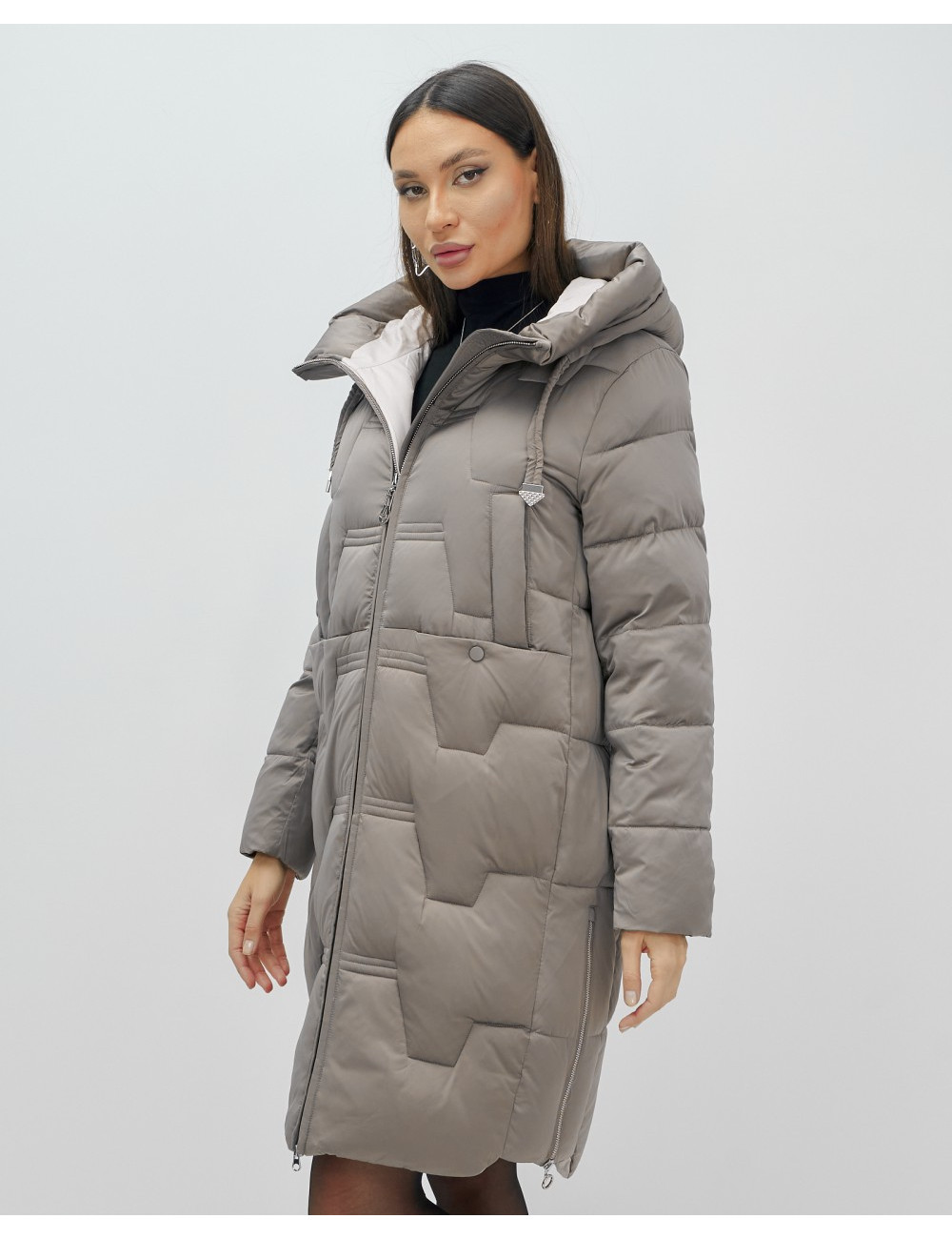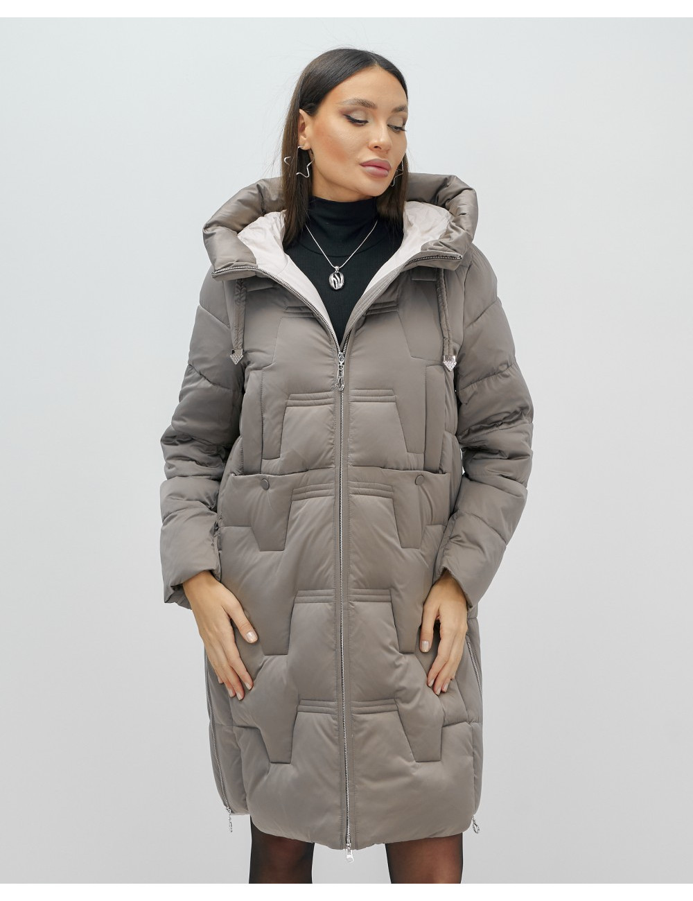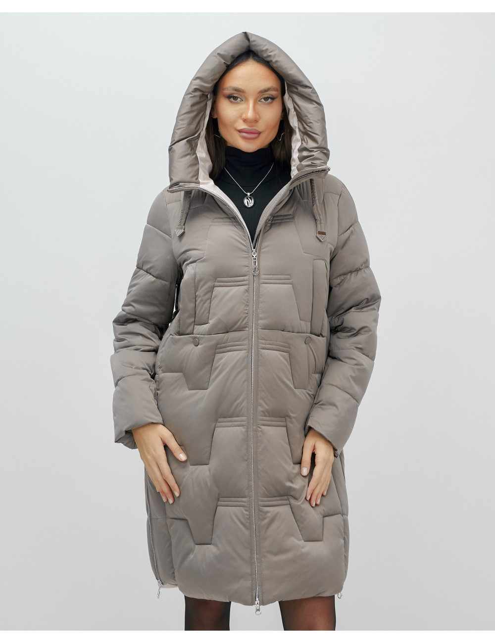 Пуховик-пальто женское утеплённое с капюшоном