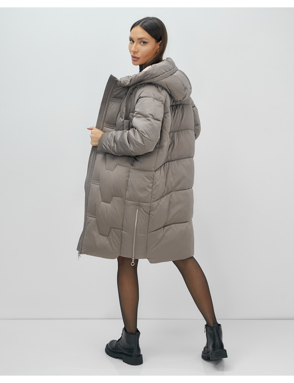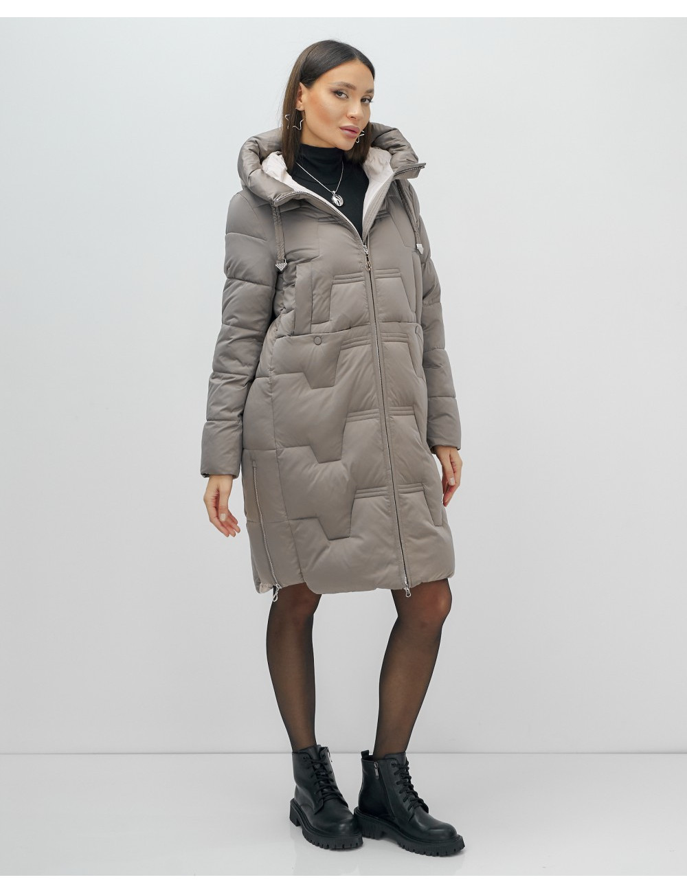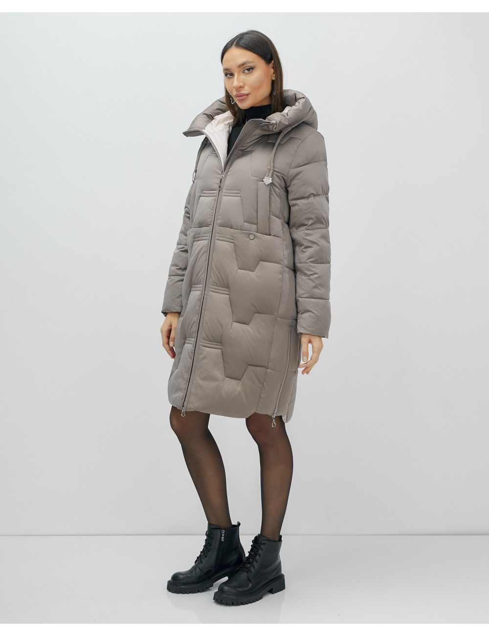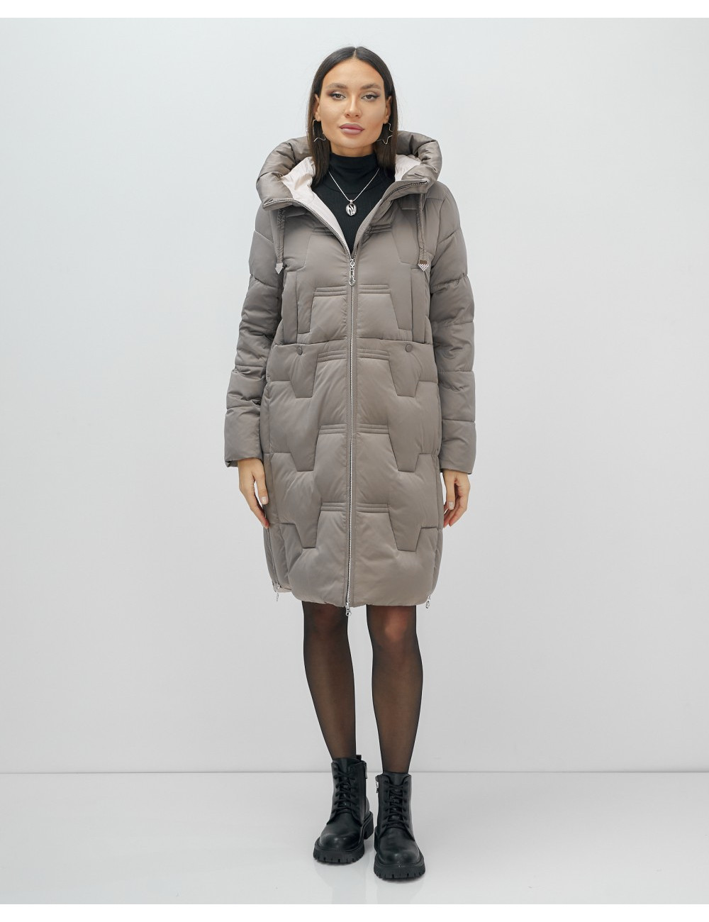 Пуховик-пальто женское утеплённое с капюшоном