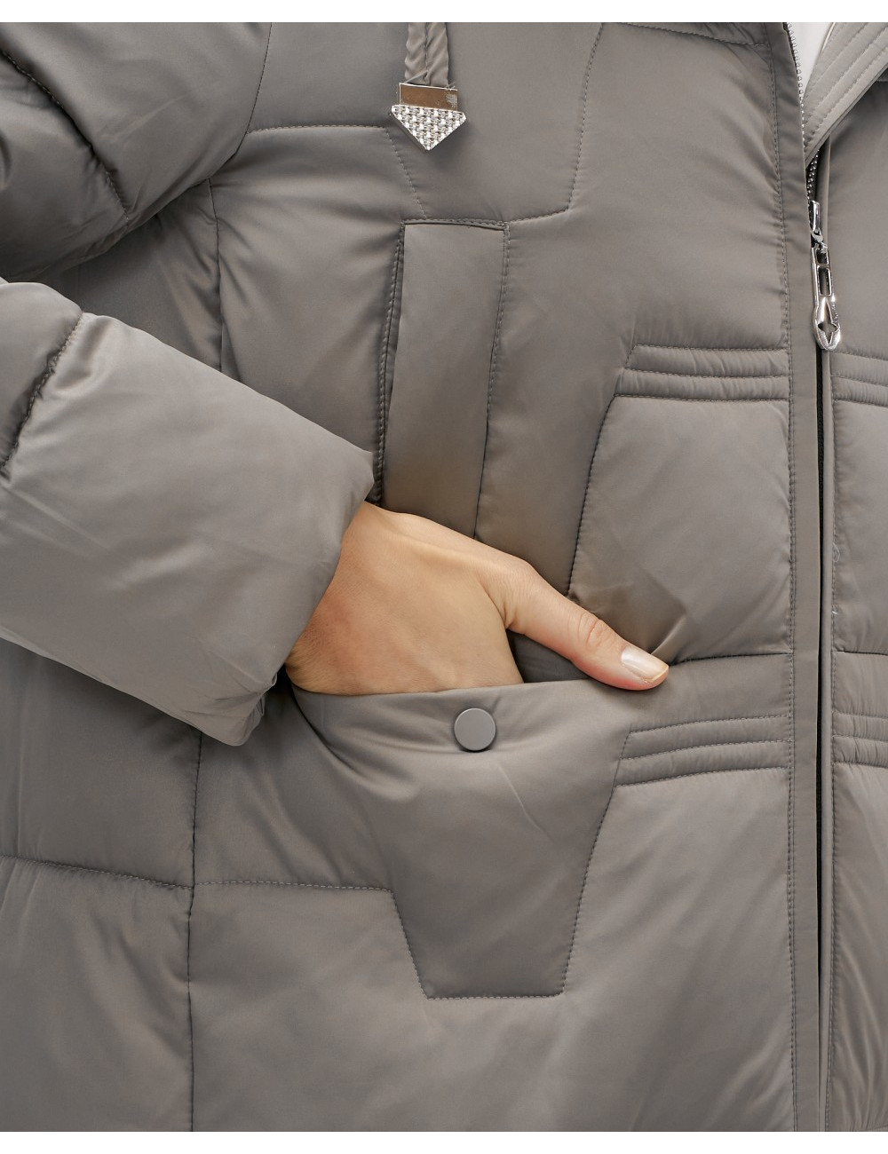 Не упустите шанс добавить в свой гардероб этот прекрасный утеплённый пуховик-пальто! Доставка по Москве и Московской области Пуховик-пальто женский утеплённый с капюшоном серый