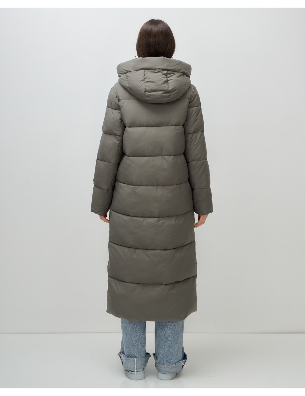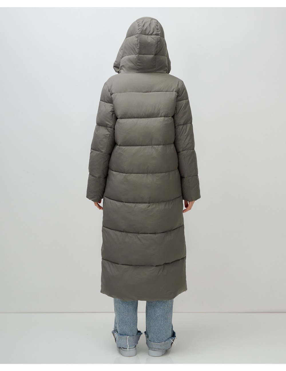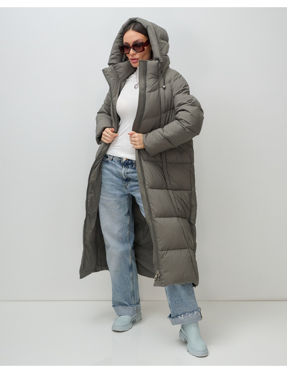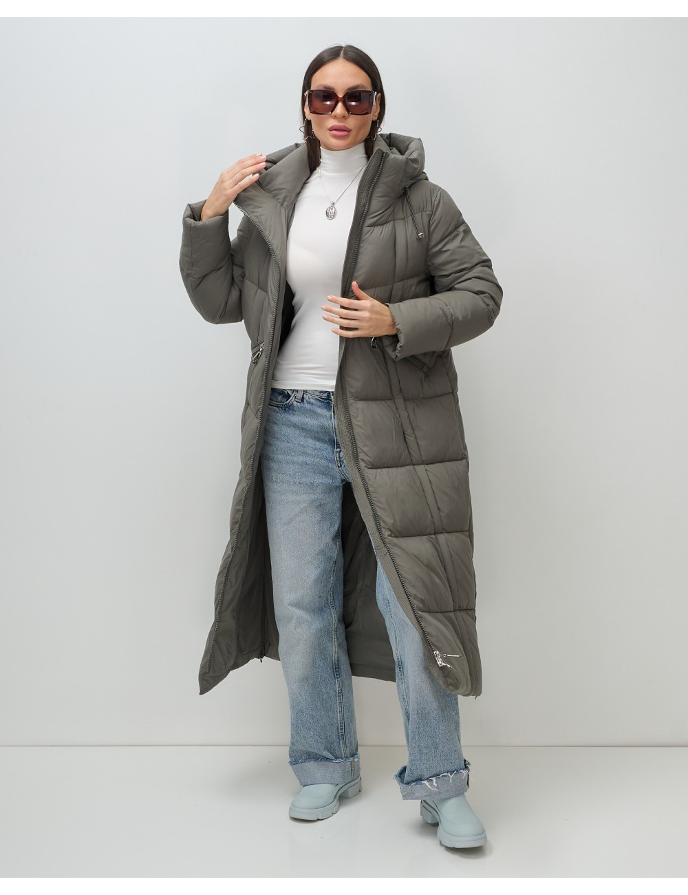 Пуховик-пальто женский утеплённый с капюшоном, тёмно-серый