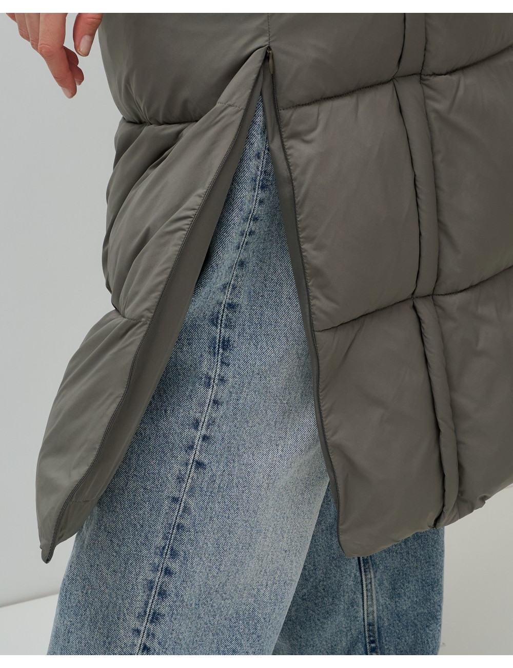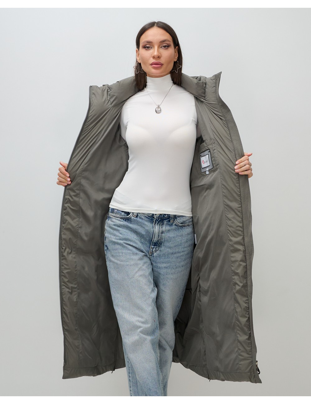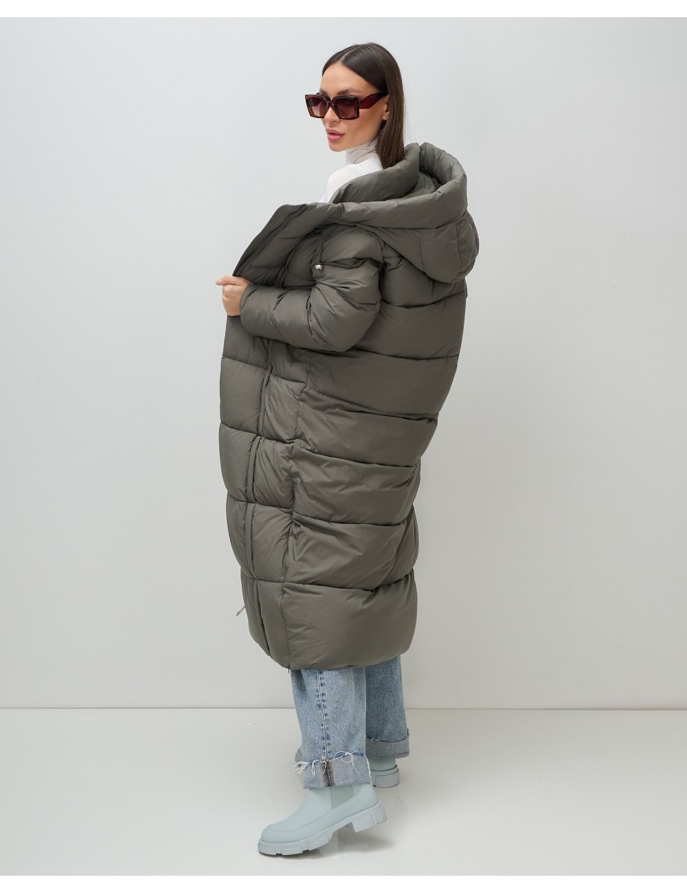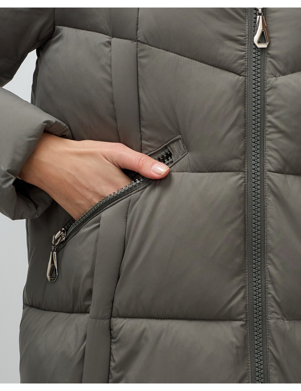 Пуховик-пальто женский утеплённый с капюшоном, тёмно-серый