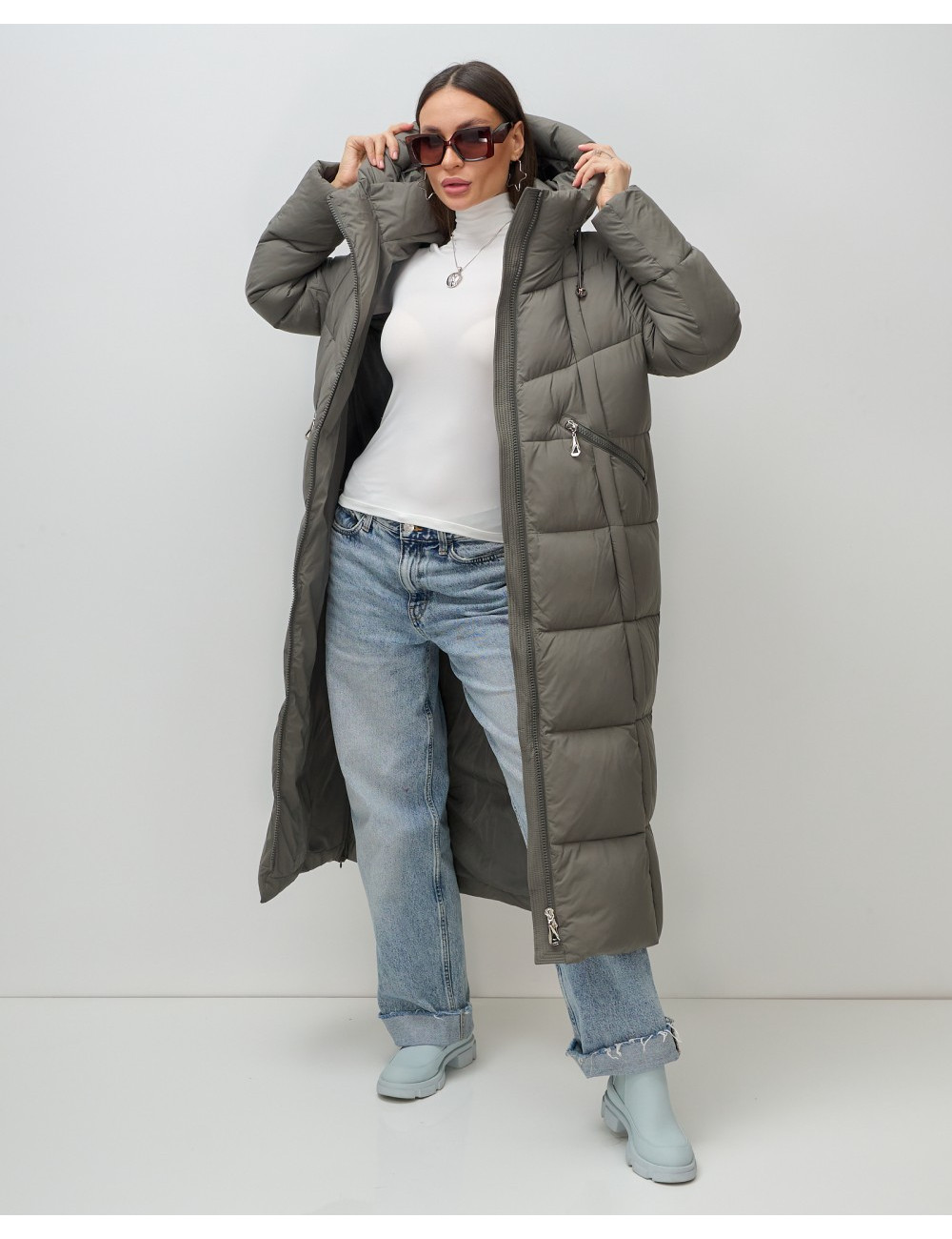 Купить за 15569 ₽ в Москве Пуховик-пальто женский утеплённый с капюшоном, тёмно-серый