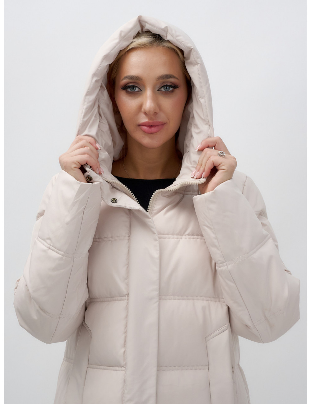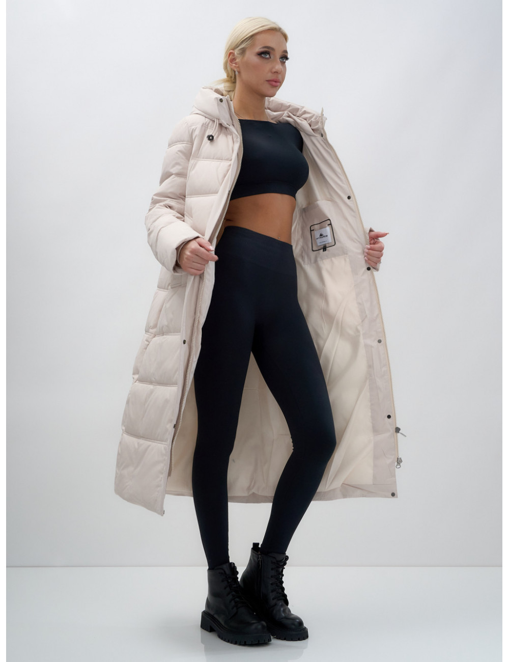 Этот пуховик-пальто станет отличным выбором для прогулок, встреч с друзьями, походов по магазинам и других активностей в холодное время года. Оно легко сочетается с джинсами, брюками, юбками и платьями, позволяя создавать разнообразные образы. Ветрозащитная планка и водоотталкивающая ткань делают его идеальным решением для зимних прогулок в любую погоду. Доставка по Москве и Московской области Пуховик-пальто женское утеплённое стеганое зимнее с капюшоном бежевое