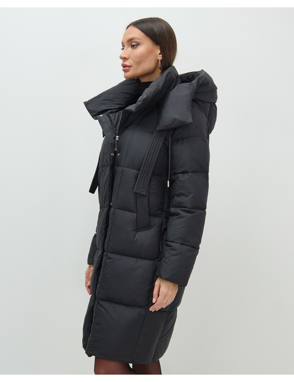 Купить за 15569 ₽ в Москве Пуховик-пальто женский зимний утеплённый с капюшоном, чёрный.
