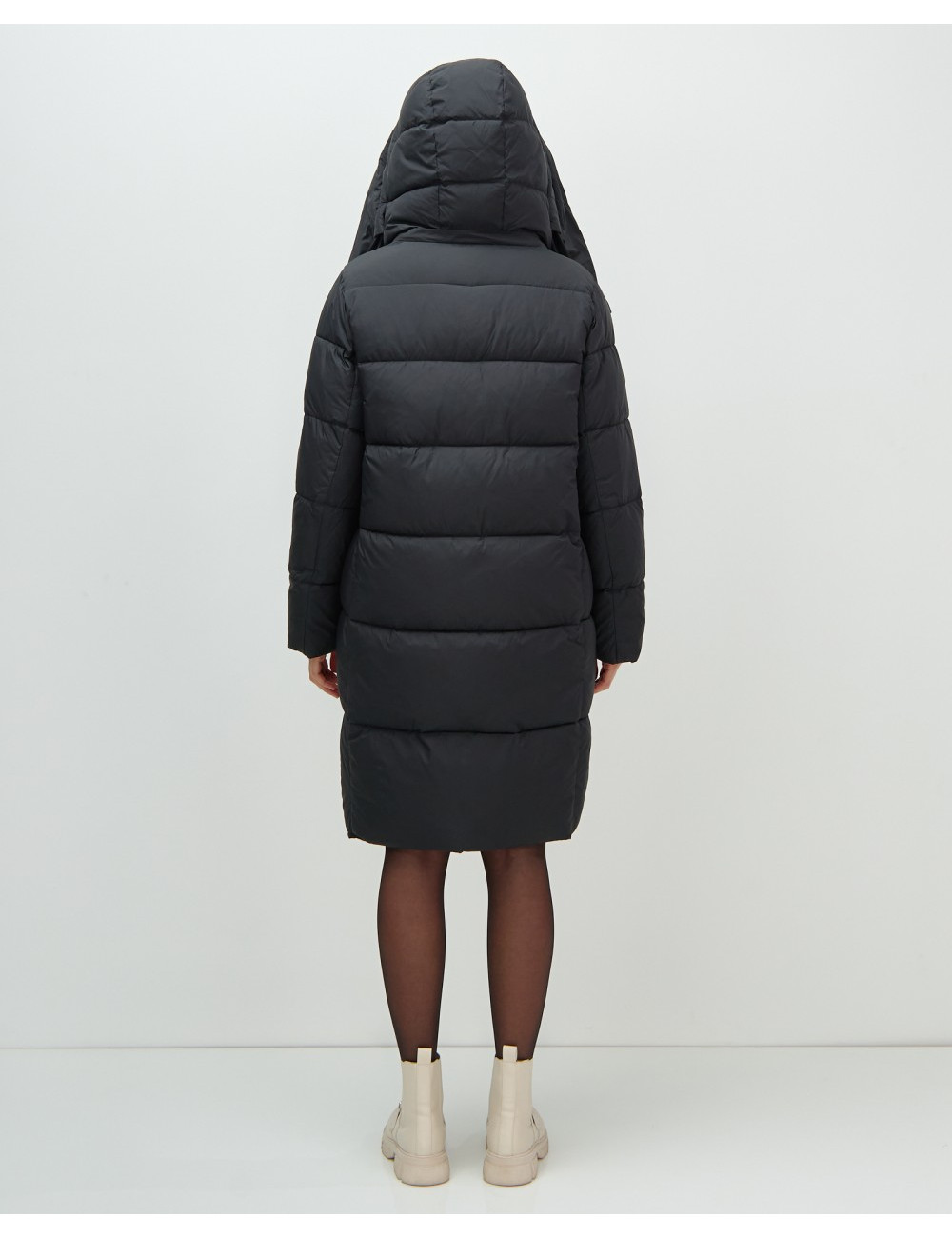 Технические характеристики Пуховик-пальто женский зимний утеплённый с капюшоном, чёрный.