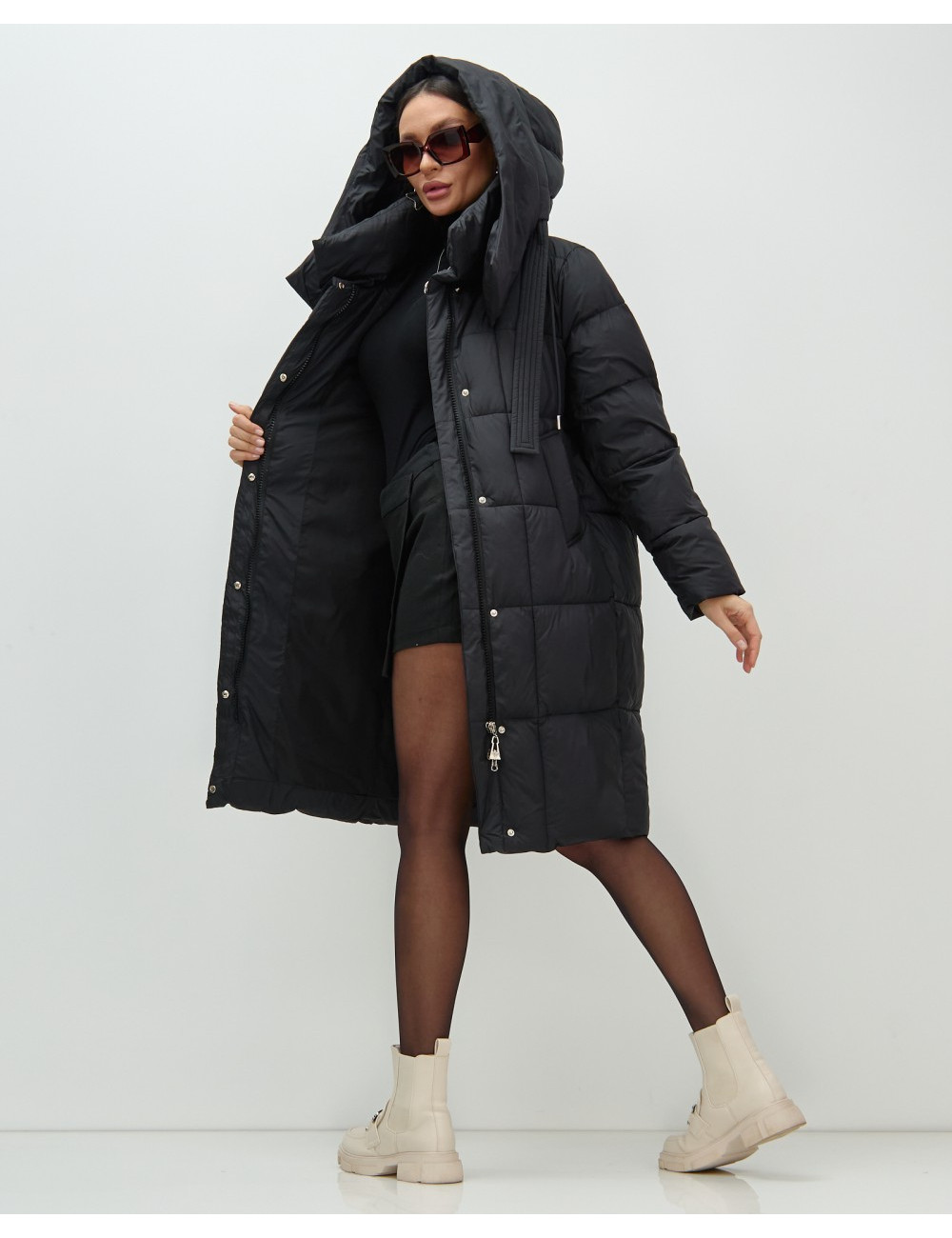Не упустите возможность стать обладательницей этого великолепного пуховика-пальто из коллекции осень-зима 2025! Доставка по Москве и Московской области Пуховик-пальто женский утеплённый с капюшоном, чёрный