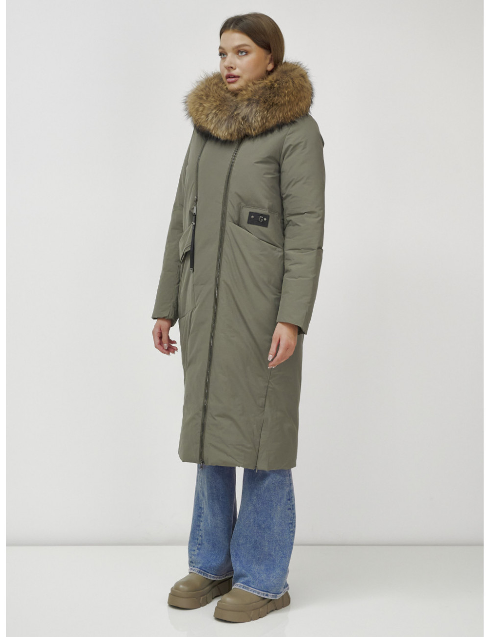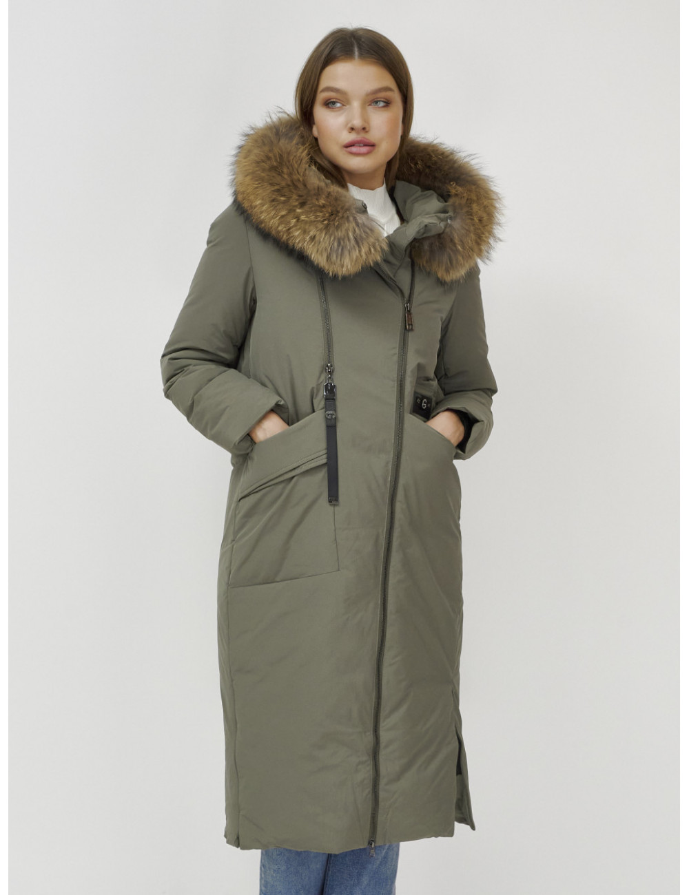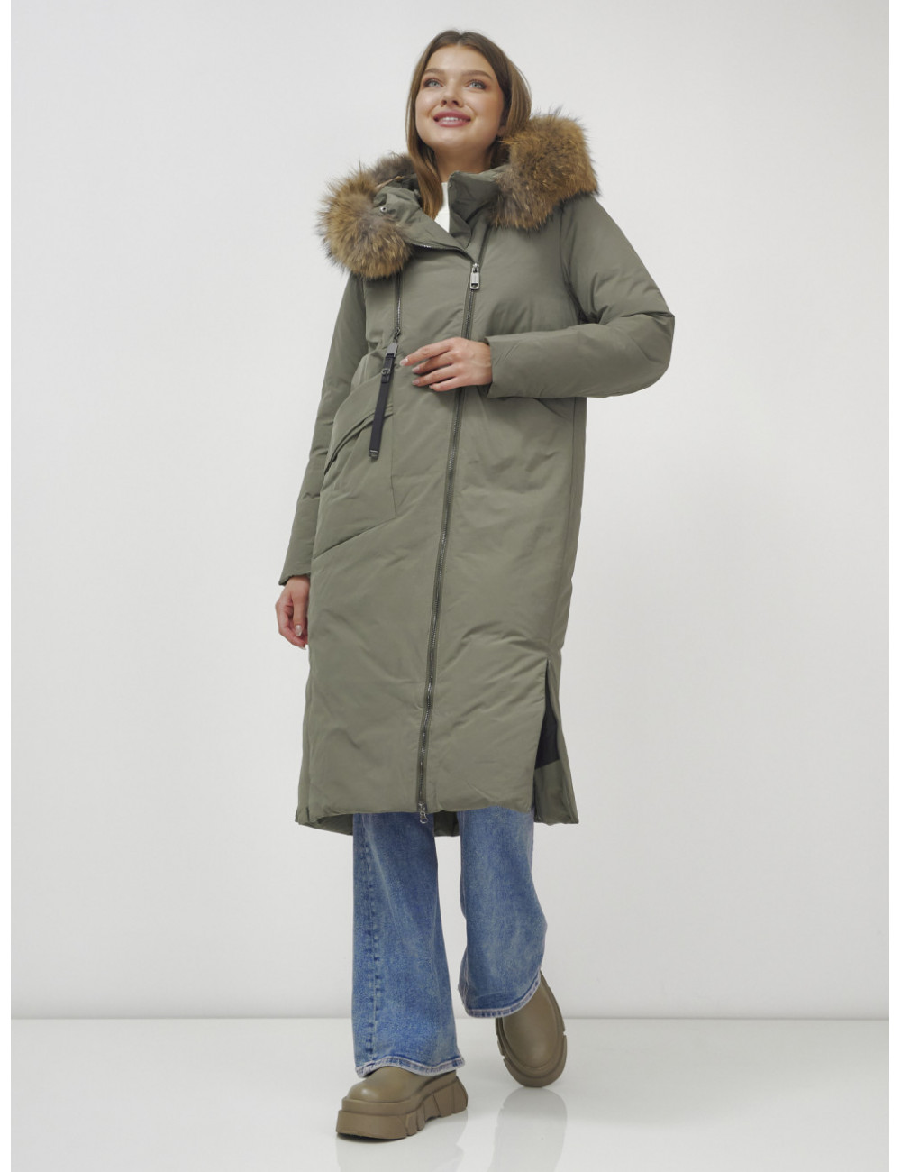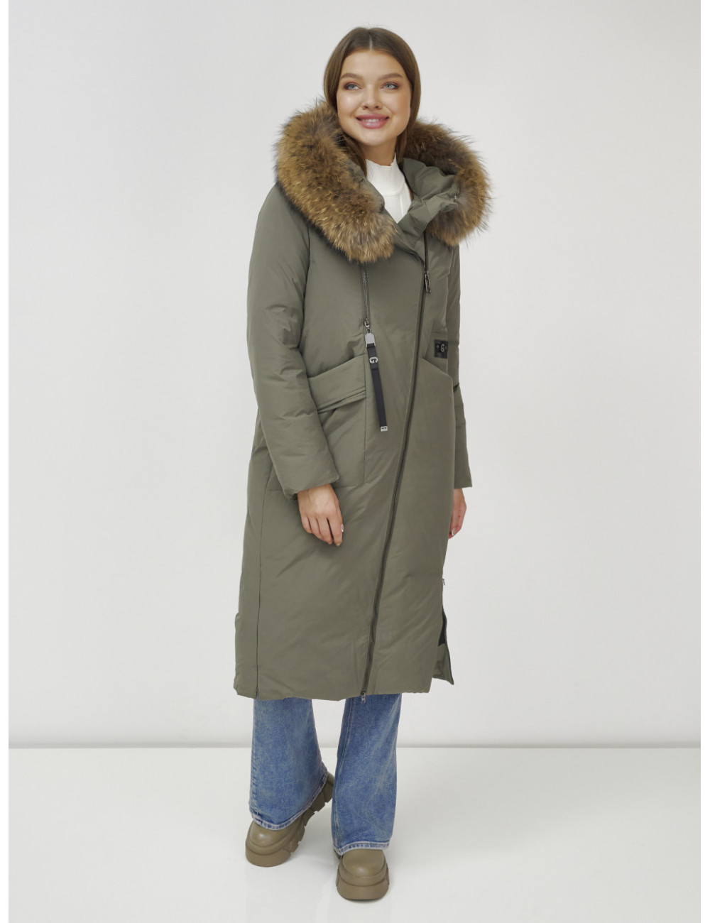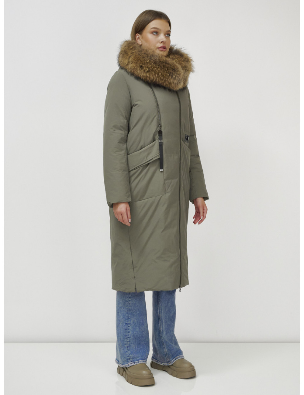 Позвольте себе излучать уверенность и позитив, уютно укутавшись в роскошь, которая согревает не только тело, но и душу. Вы заслуживаете только лучшего! Доставка по Москве и Московской области Пуховик-пальто женское премиум класса с мехом енота, хаки