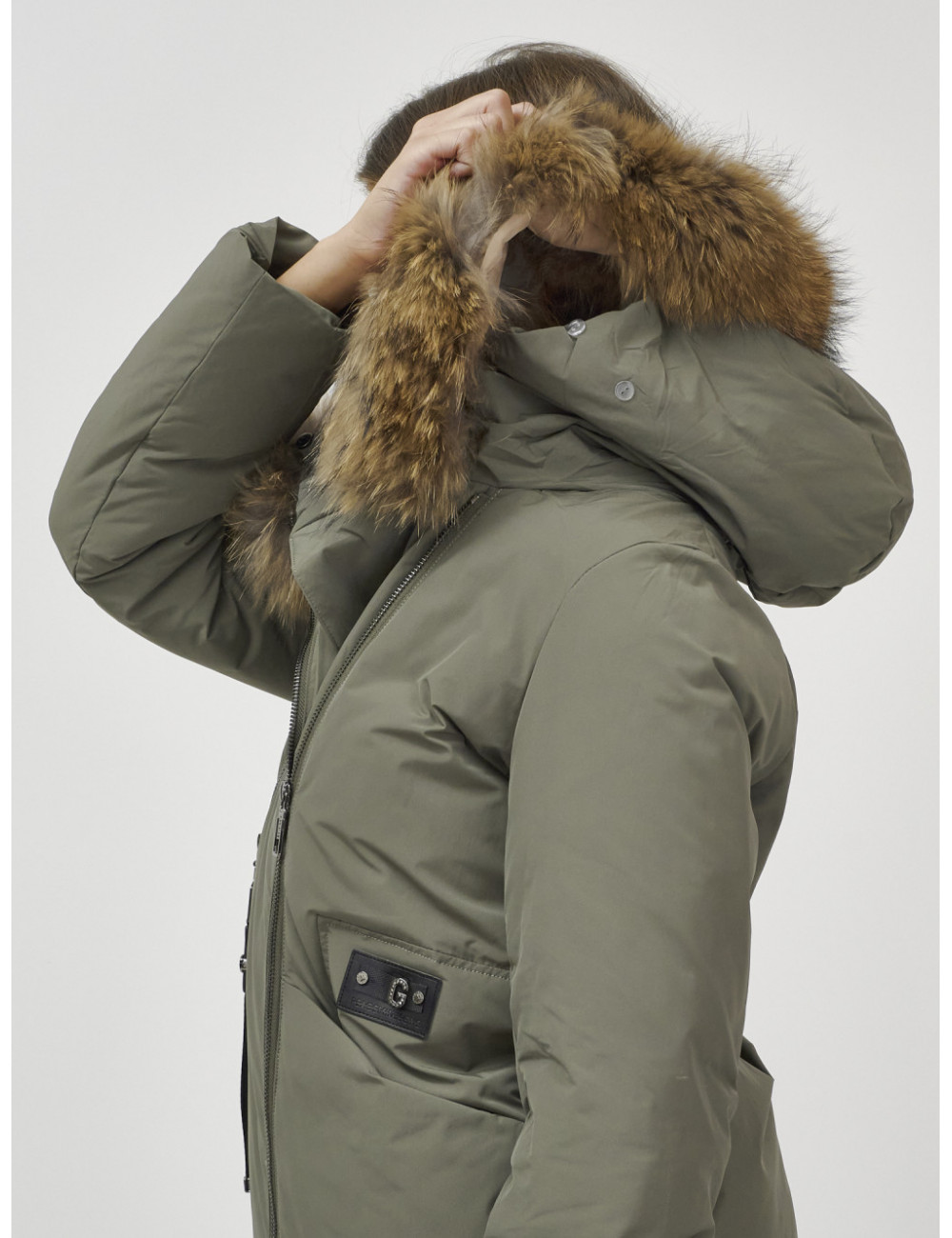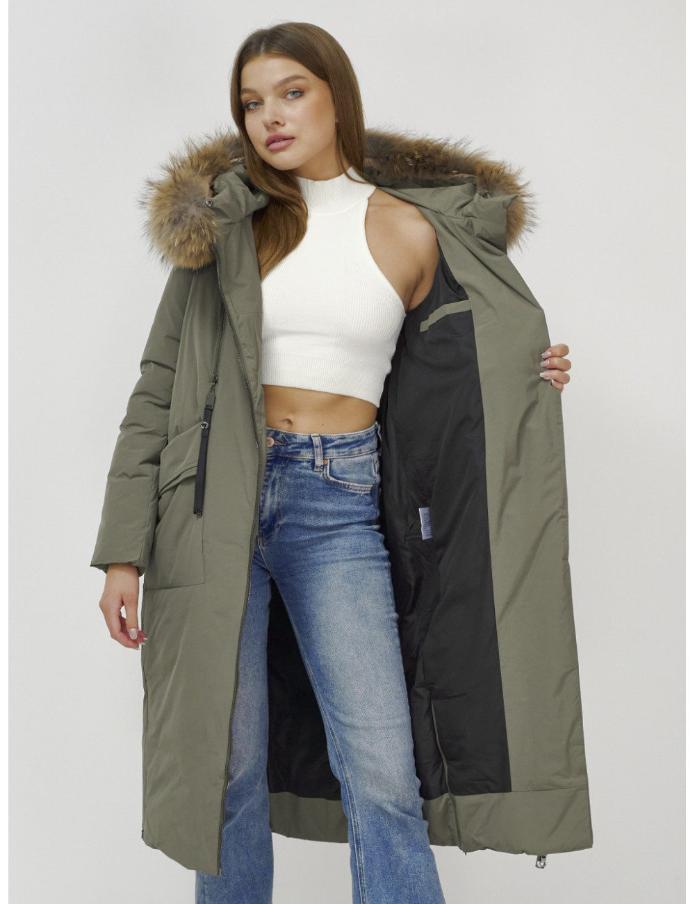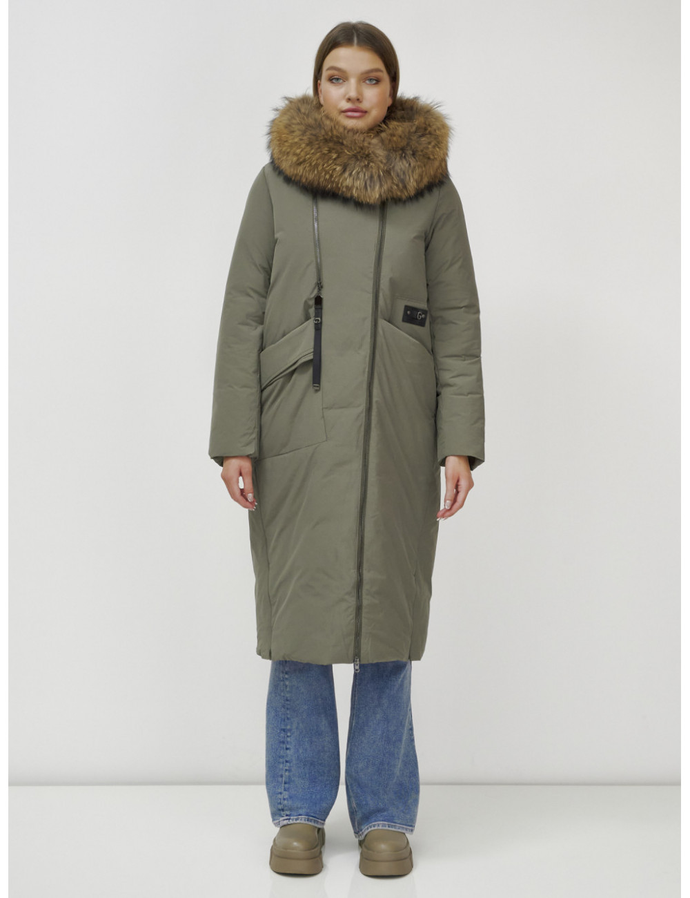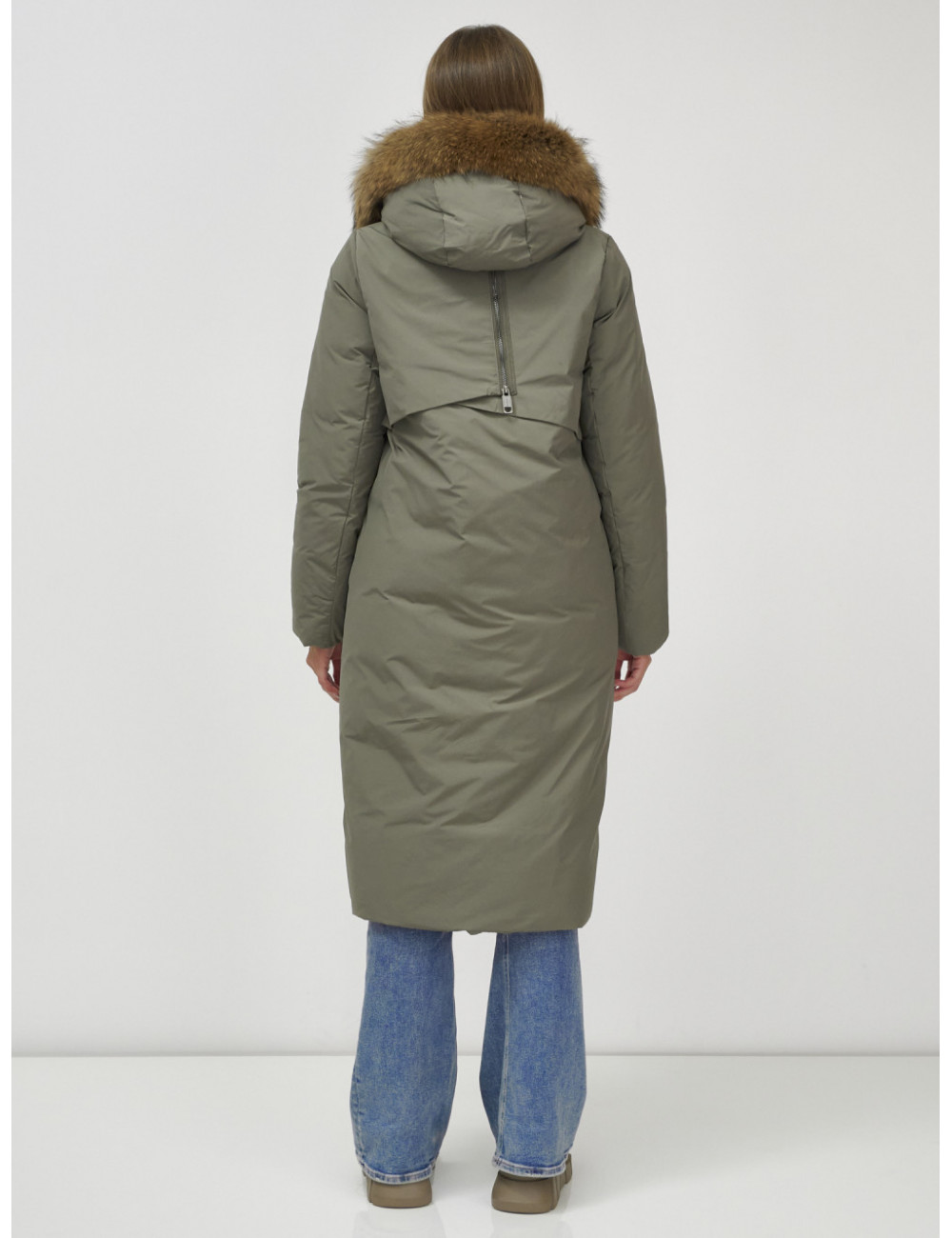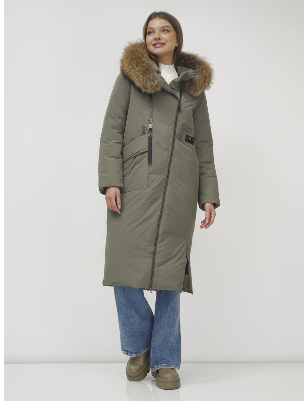 Позвольте себе излучать уверенность и позитив, уютно укутавшись в роскошь, которая согревает не только тело, но и душу. Вы заслуживаете только лучшего! Доставка по Москве и Московской области Пуховик-пальто женское премиум класса с мехом енота, хаки