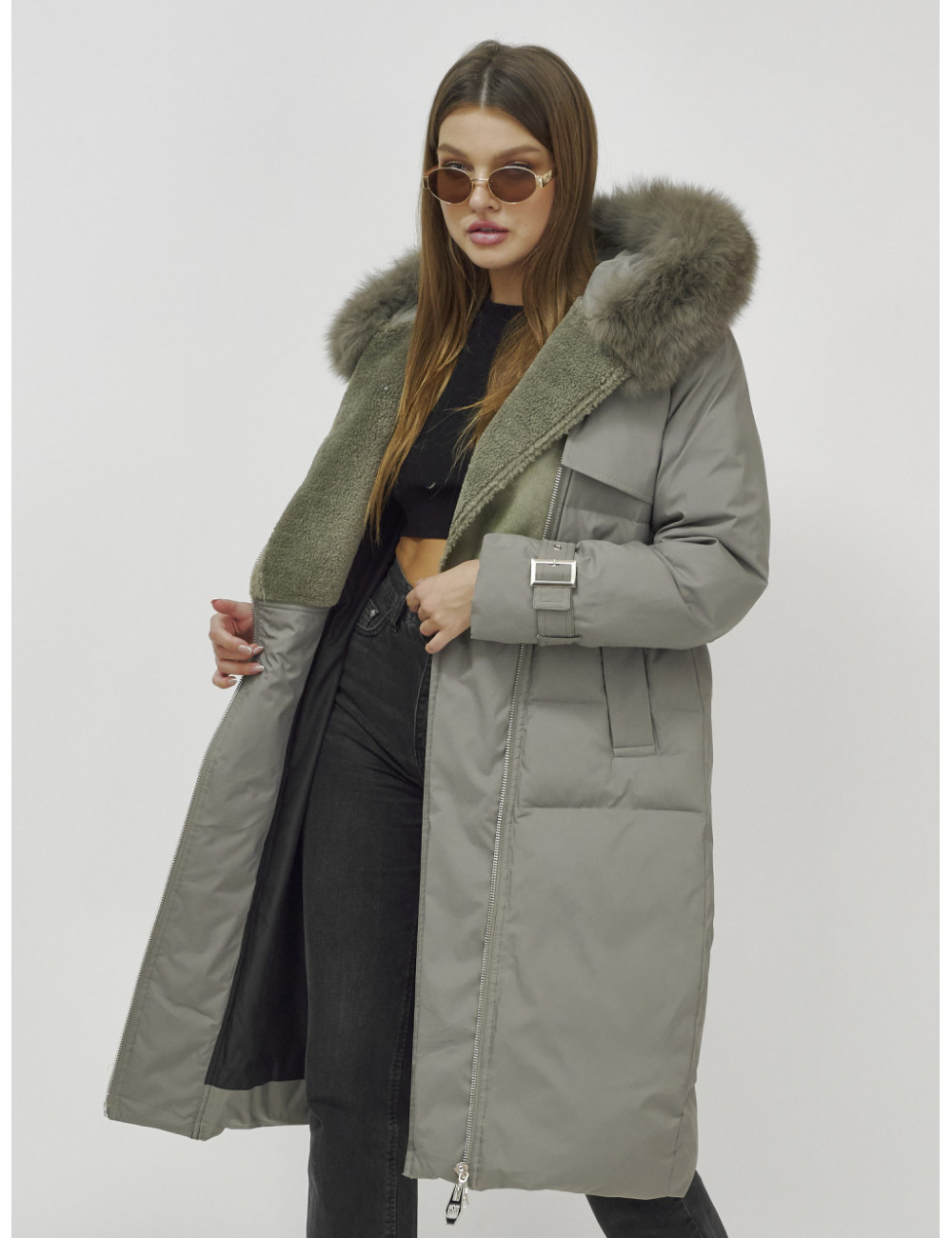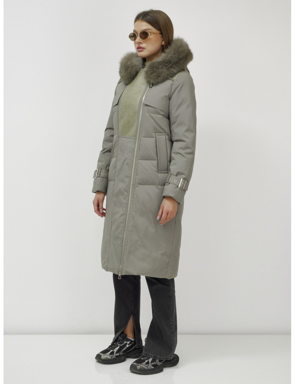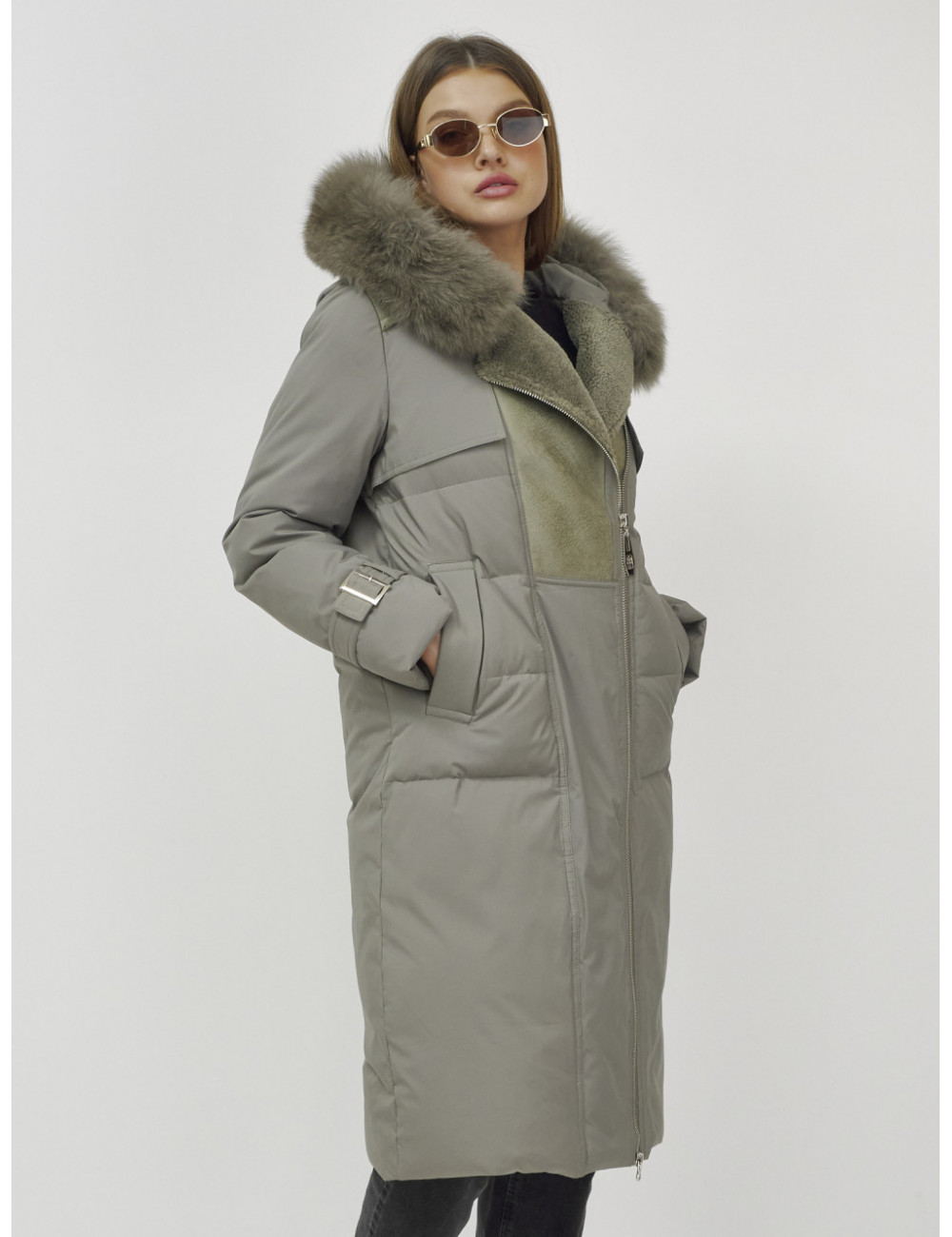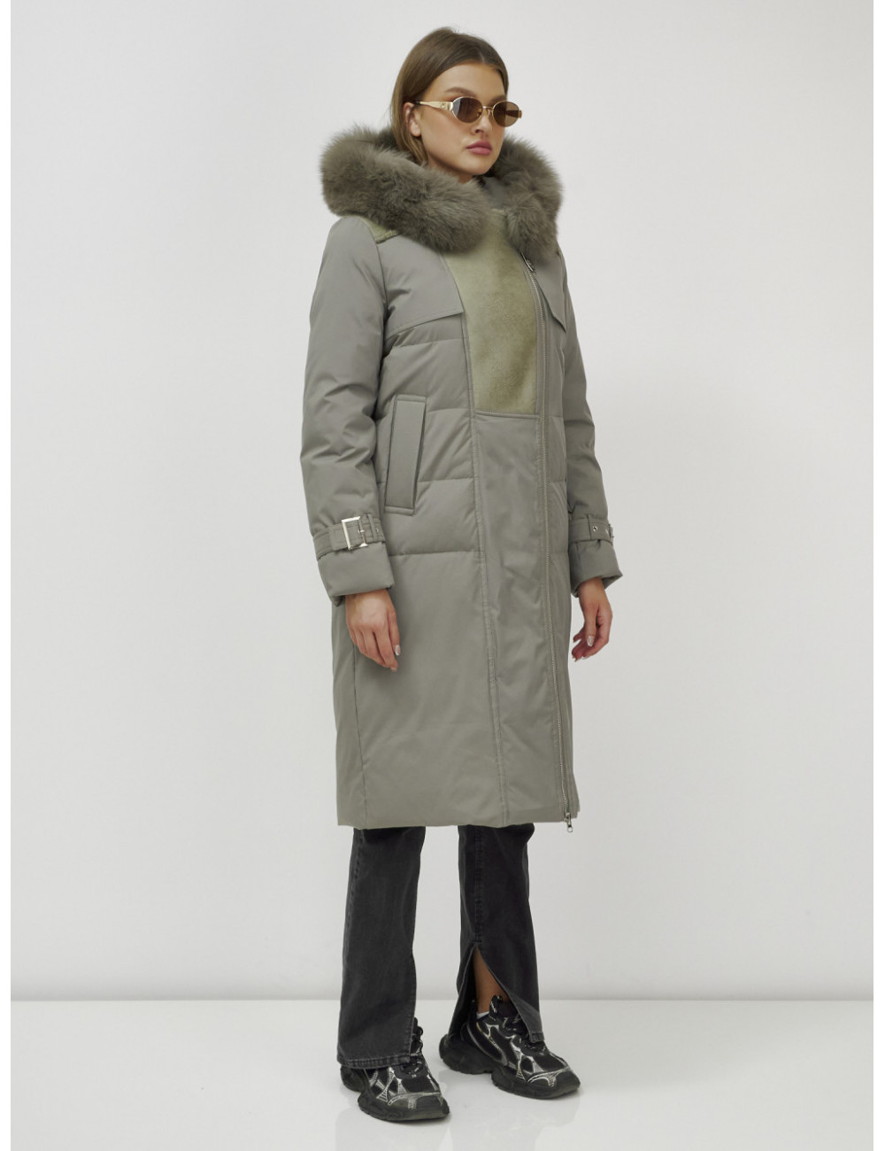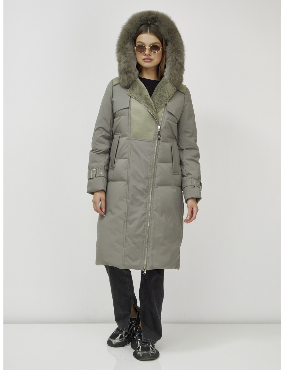 Позвольте себе роскошь, комфорт и защиту от зимних холодов с нашим великолепным пуховиком-пальто! Доставка по Москве и Московской области Пуховик-пальто женское премиум класса с мехом и овчиной, хаки