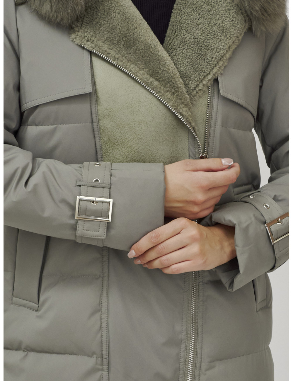 Женское зимнее пуховик-пальто с натуральным мехом и вставками из дублёной кожи