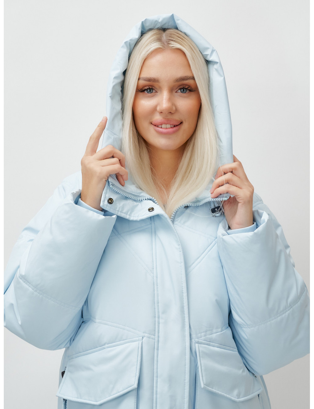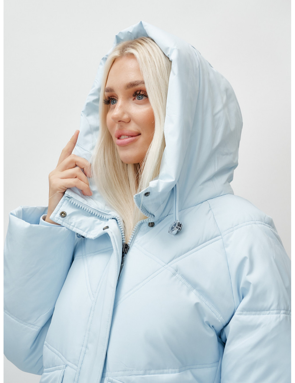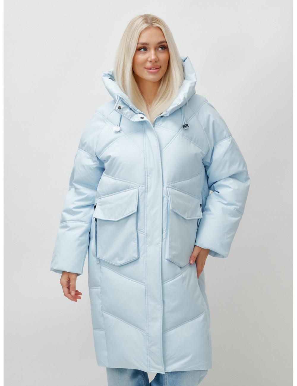 Пуховик-пальто гармонично сочетается с джинсами, брюками, юбками и платьями. Вы можете создать как повседневный, так и более элегантный образ, добавив аксессуары и подходящую обувь. Доставка по Москве и Московской области Пуховик-пальто женское зимнее с капюшоном голубого цвета