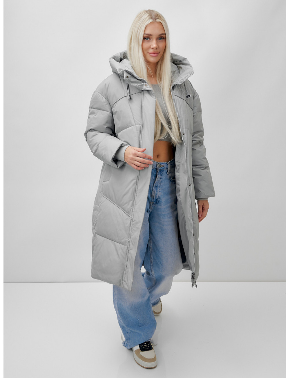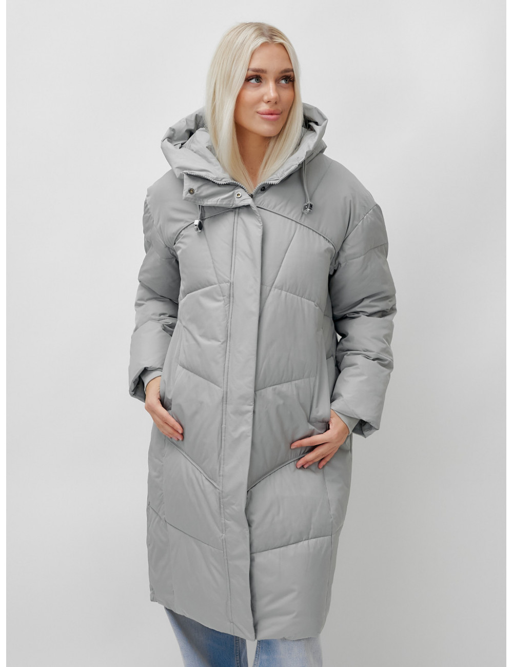 Не упустите возможность добавить в свой гардероб эту замечательную вещь от бренда MTFORCE! Доставка по Москве и Московской области Пуховик-пальто женское зимнее с капюшоном серого цвета