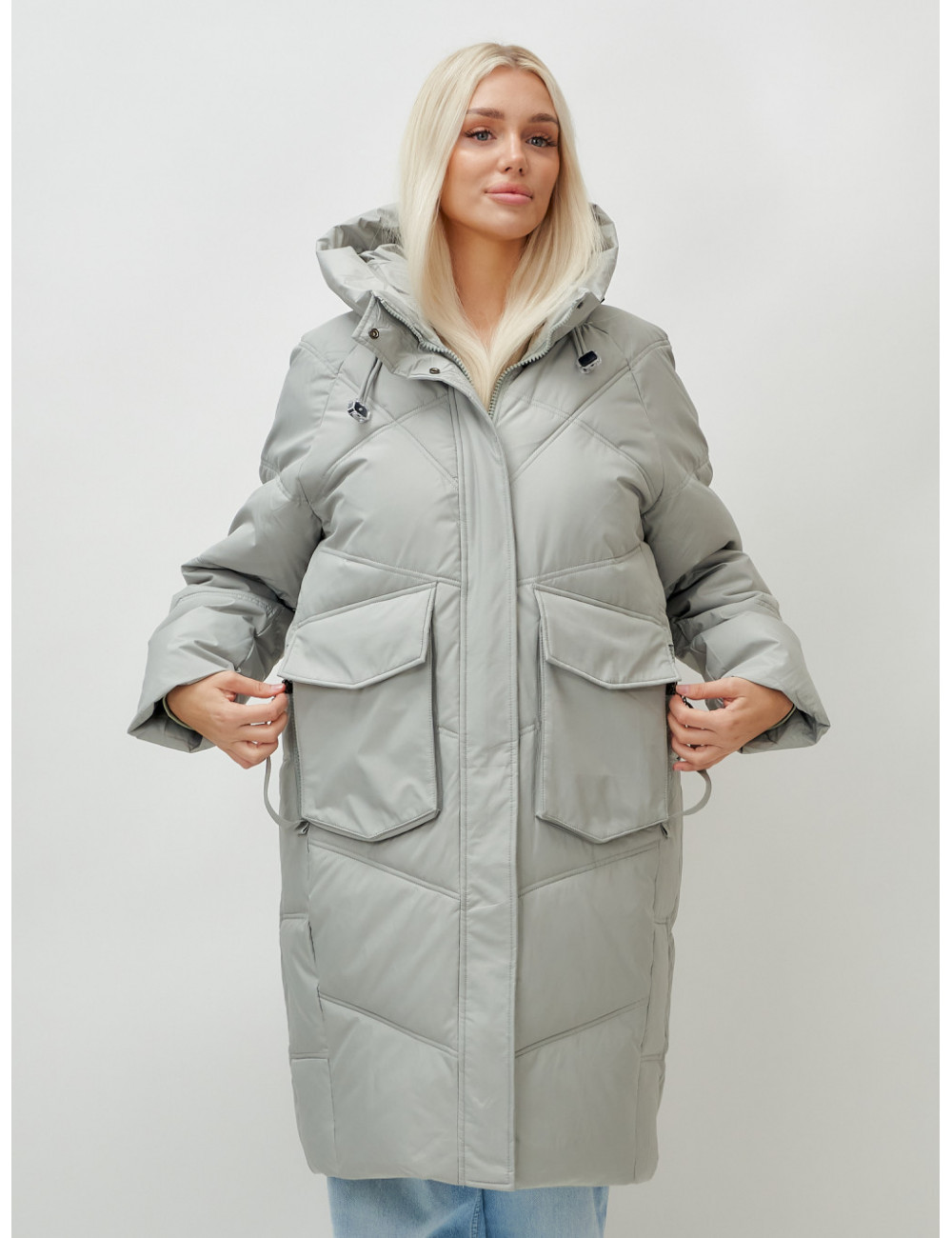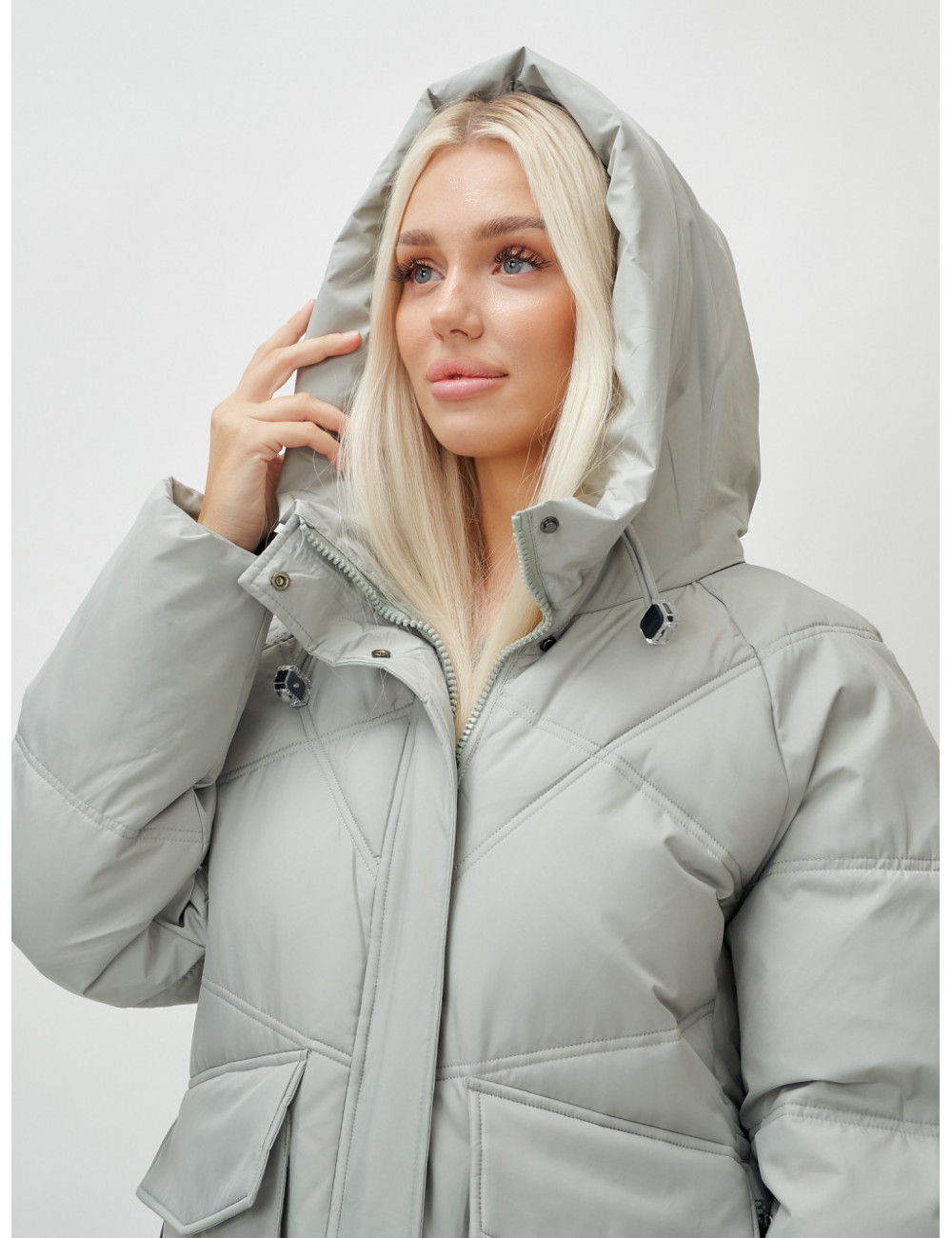 Технические характеристики Пуховик-пальто женское с капюшоном зимнее зелёное