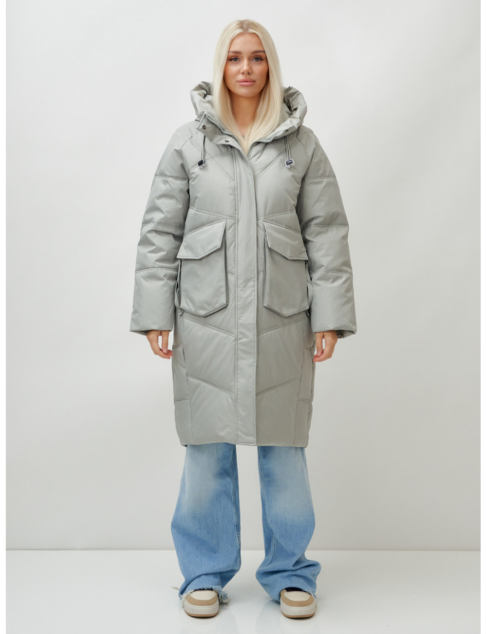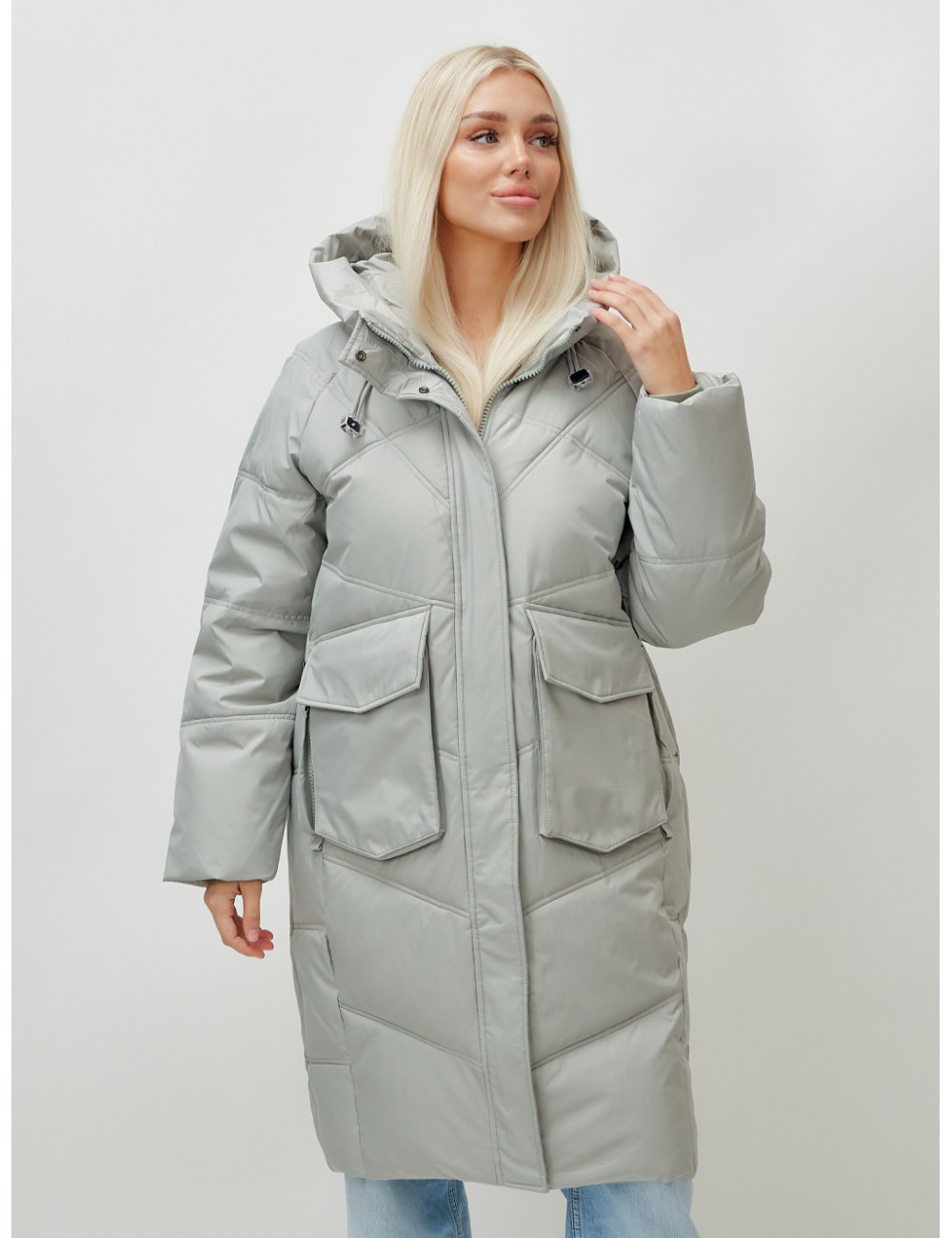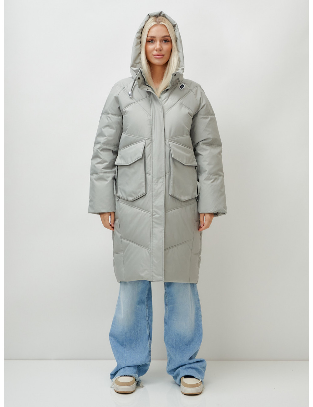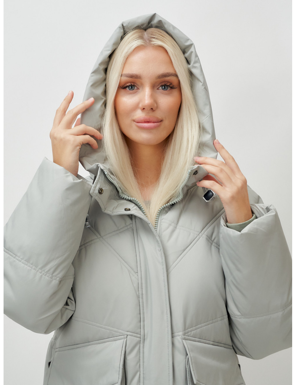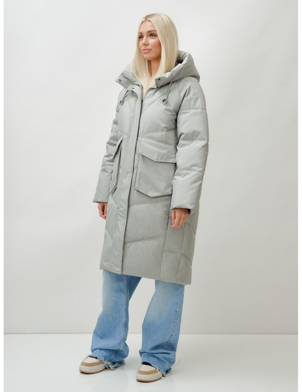 Купить за 12449 ₽ в Москве Пуховик-пальто женское с капюшоном зимнее зелёное