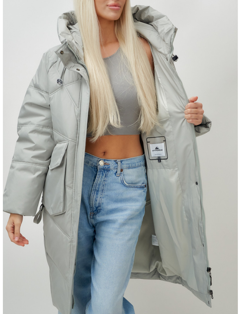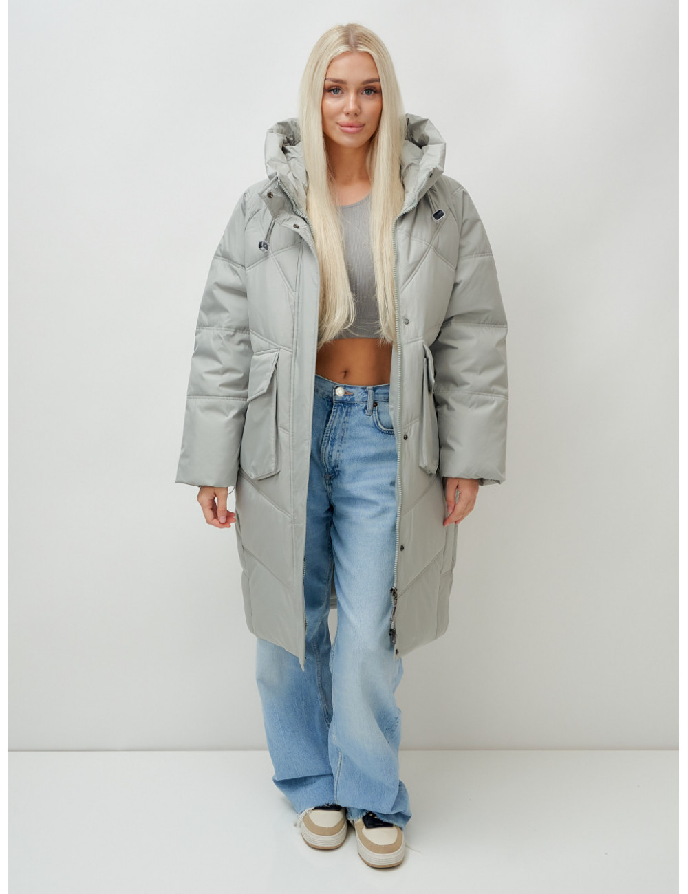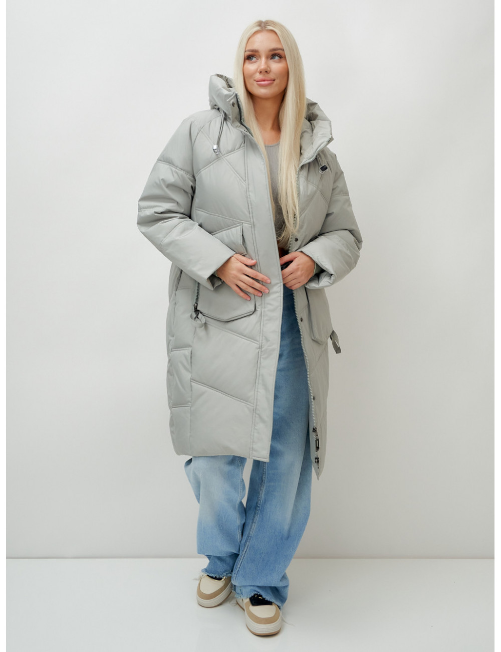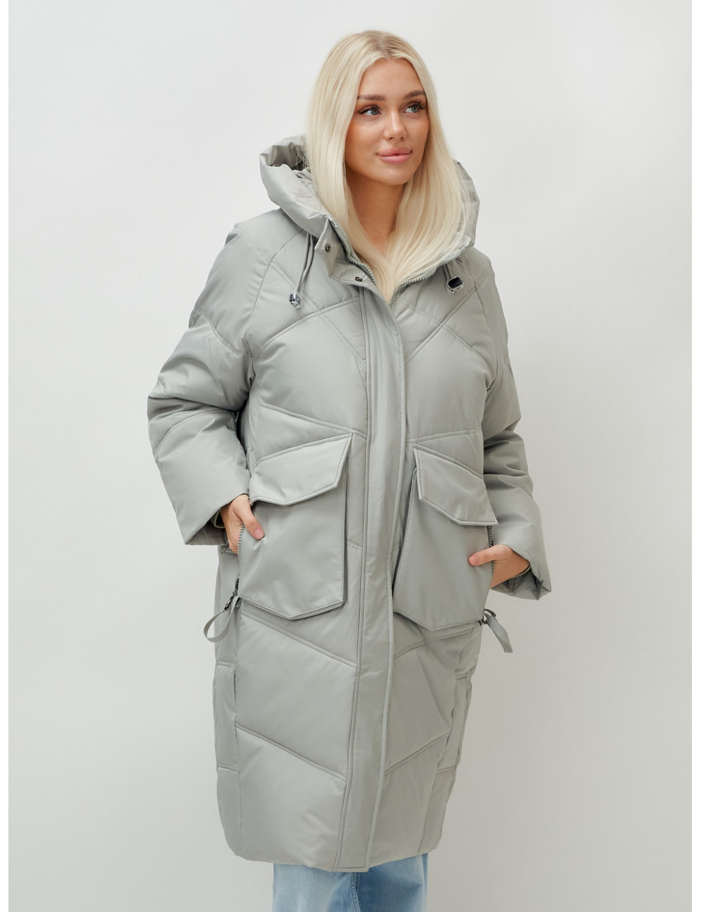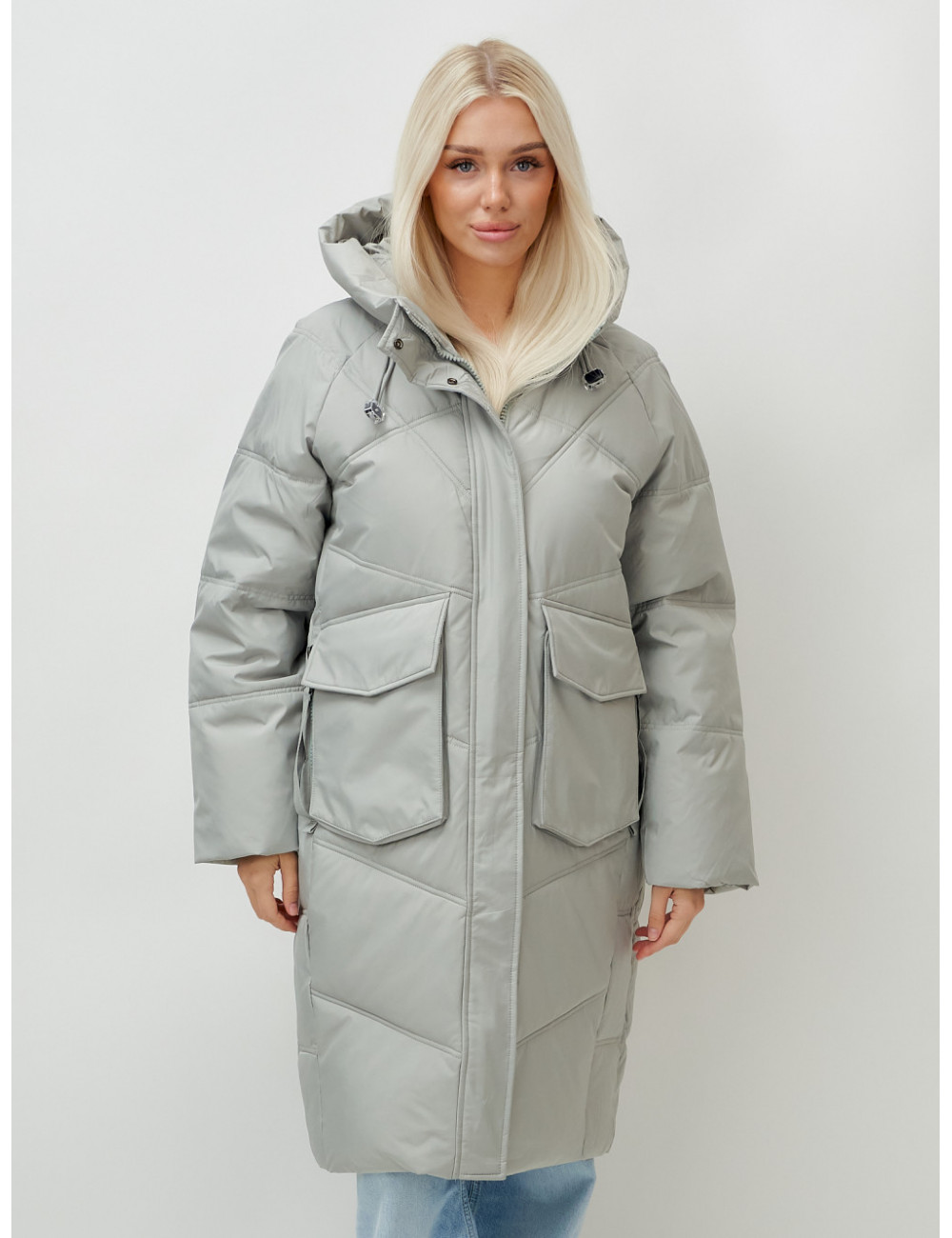 Купить за 12449 ₽ в Москве Пуховик-пальто женское с капюшоном зимнее зелёное