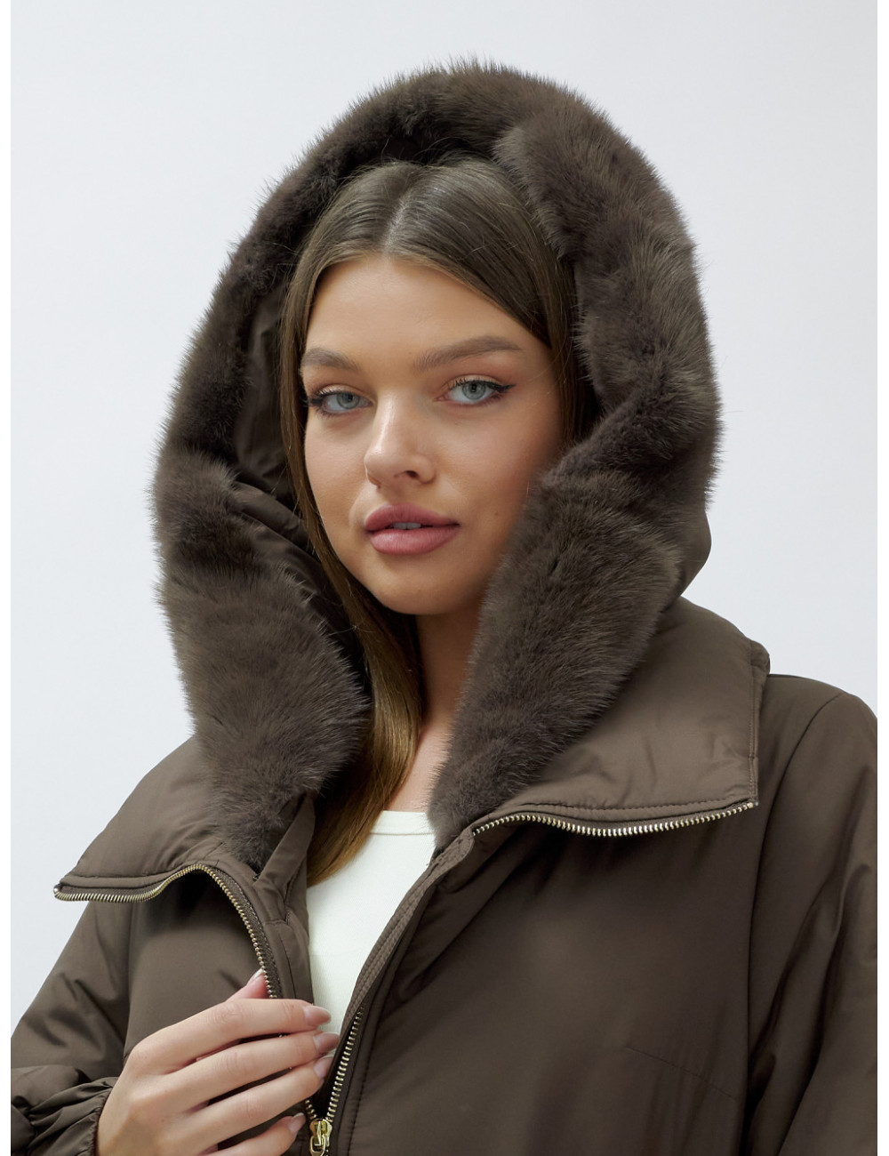 С этим пуховиком-пальто вы будете выглядеть безупречно в любую погоду. Подчеркните свою индивидуальность и создайте незабываемый образ с нашей моделью премиум-качества — идеальным выбором для стильных и уверенных в себе женщин! Доставка по Москве и Московской области Пуховик-пальто женское стильное с норкой люкс класса коричневого оттенка