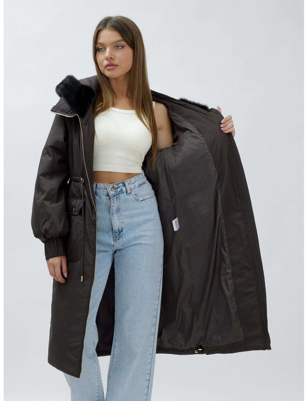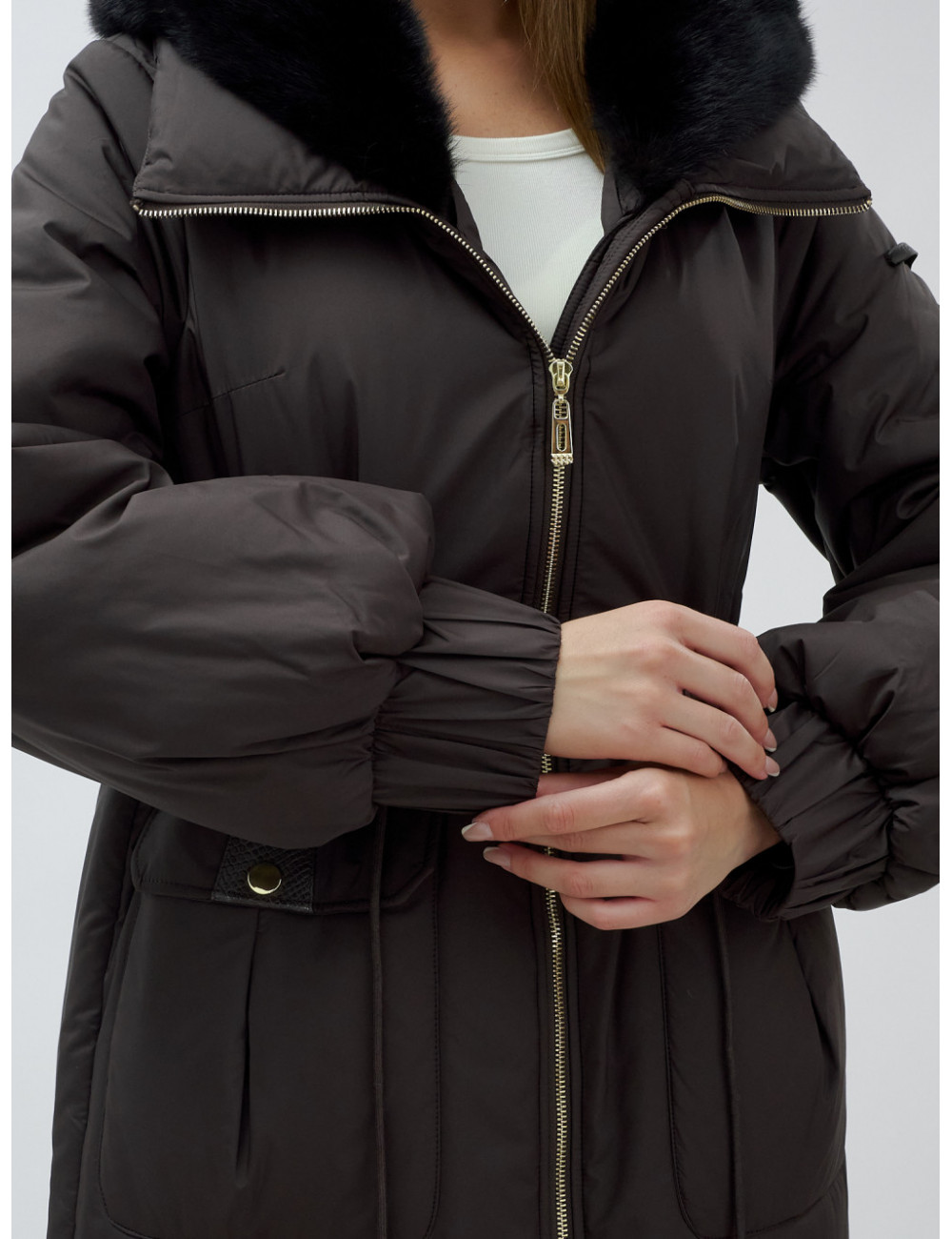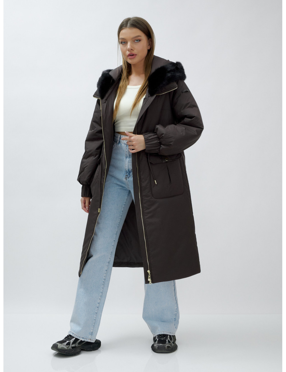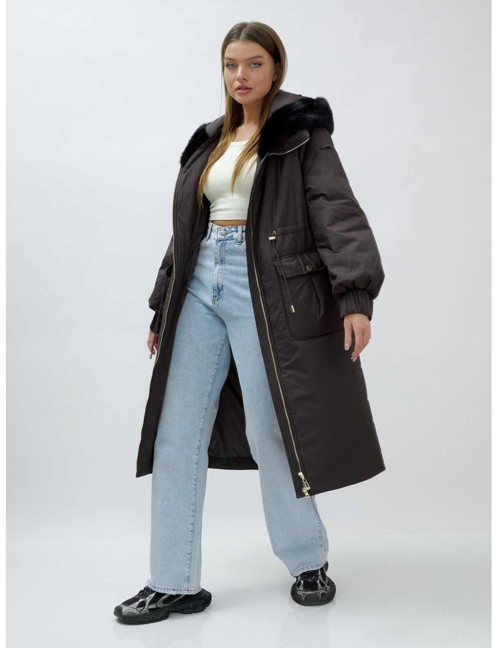 Пуховик-пальто гармонично сочетается с джинсами, брюками, юбками и платьями. Вы можете создать множество стильных образов, комбинируя его с различными аксессуарами и обувью. Добавьте к нему шарф, шапку и перчатки для создания полного зимнего образа. Доставка по Москве и Московской области Пуховик-пальто женское стильное с норкой люкс класса, тёмно-коричневый