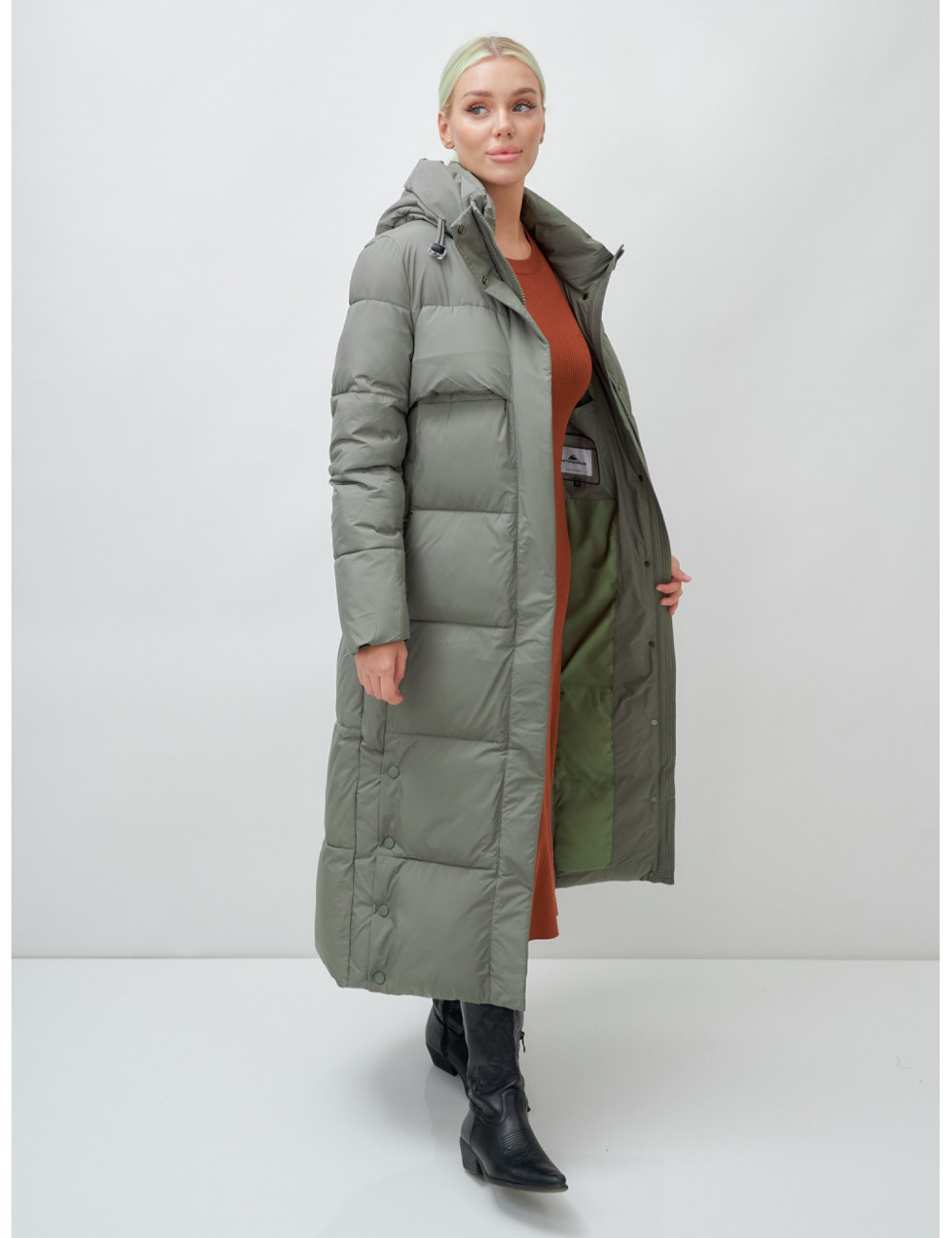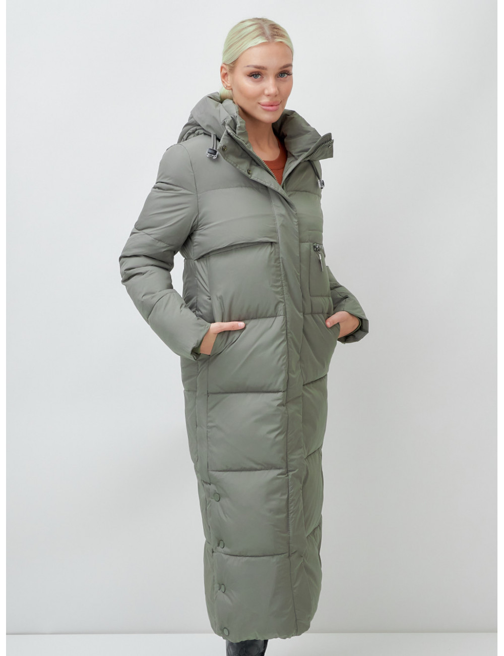 Купить за 12449 ₽ в Москве Пуховик-пальто женское стёганое зимнее с капюшоном, хаки Женское зимнее утеплённое стёганое пуховик-пальто с капюшоном