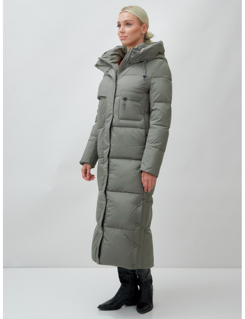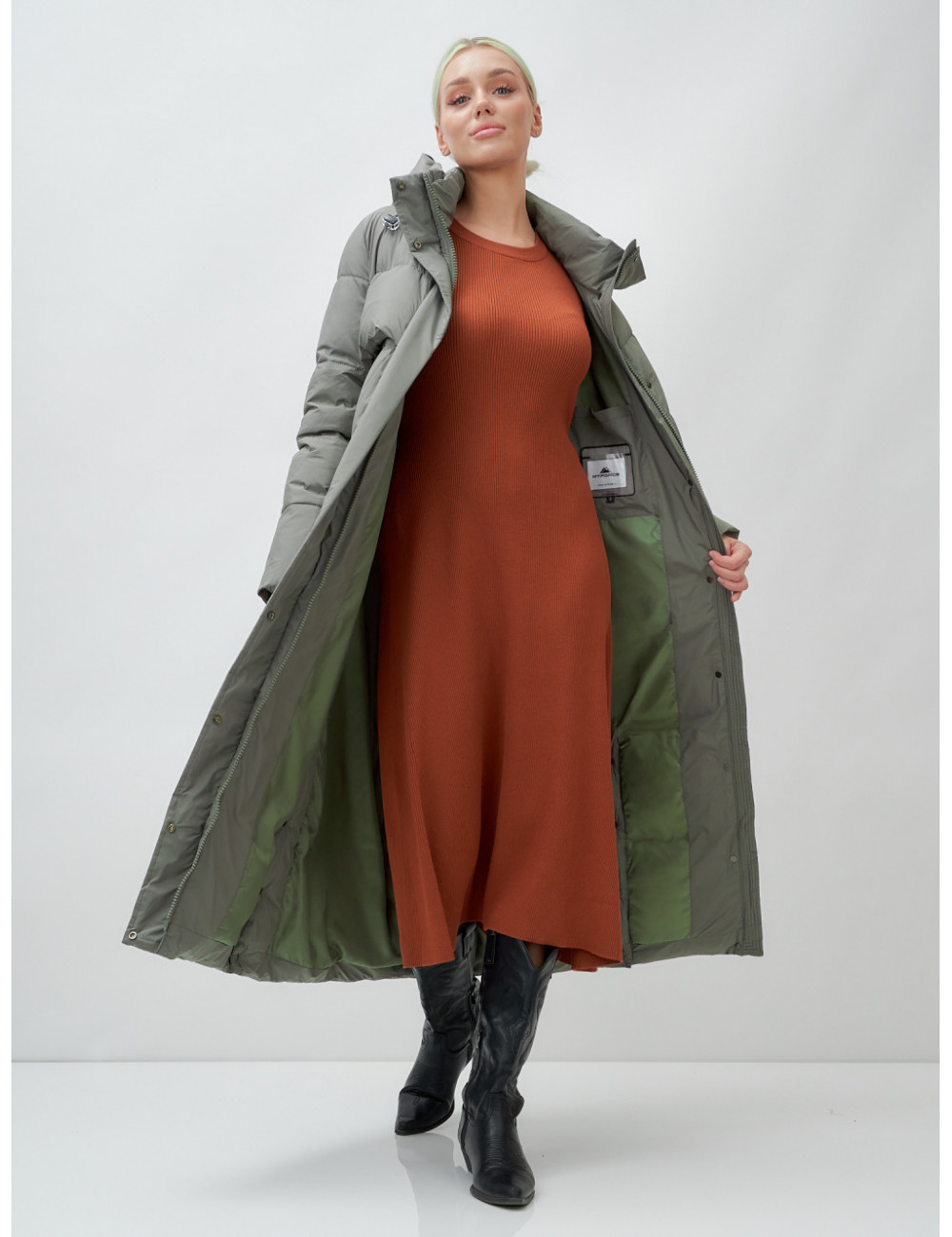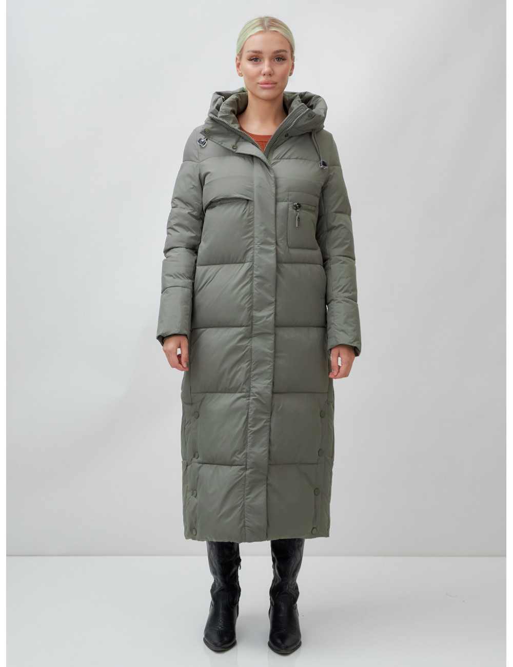 Идеальный баланс комфорта и элегантности — ваш верный выбор на эту зиму! Доставка по Москве и Московской области Пуховик-пальто женское зимнее стеганое с капюшоном хаки