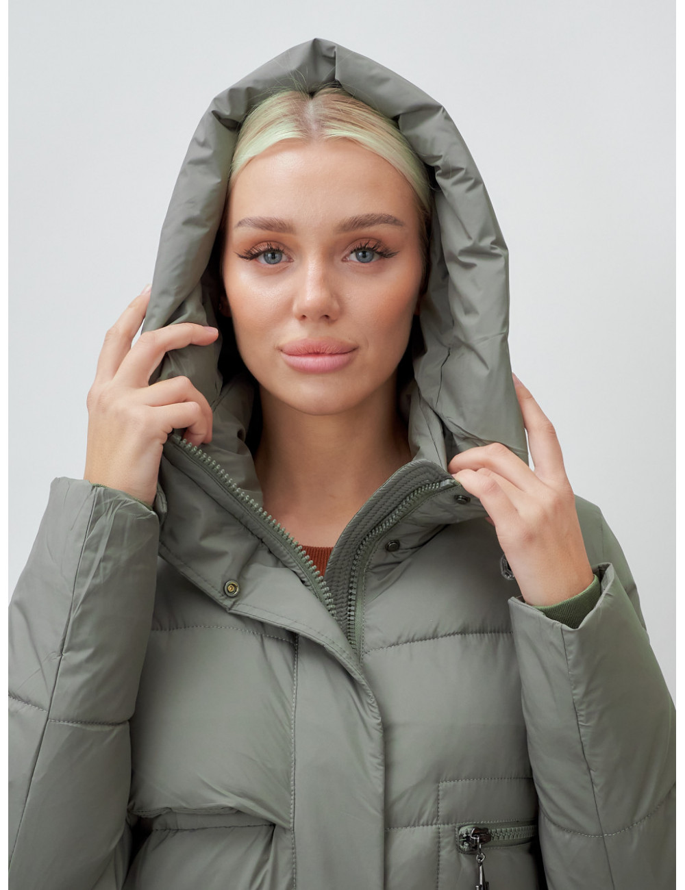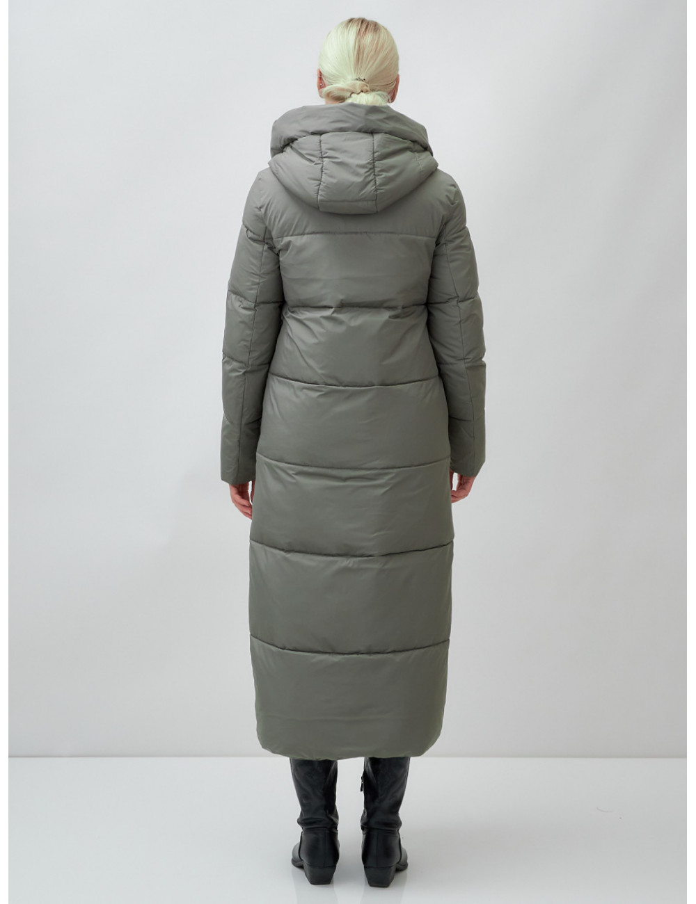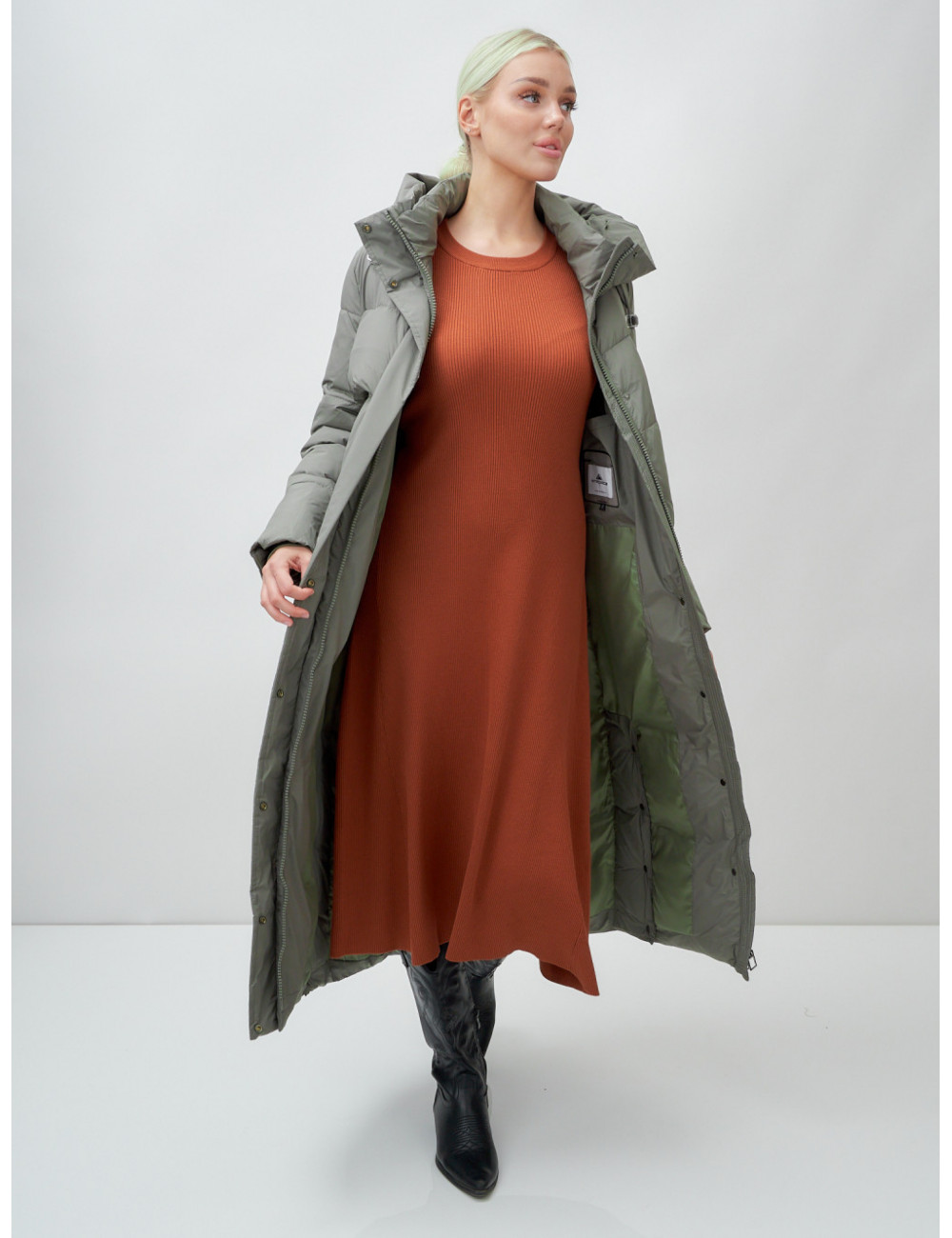 Пуховик-пальто женское стёганое зимнее с капюшоном, хаки