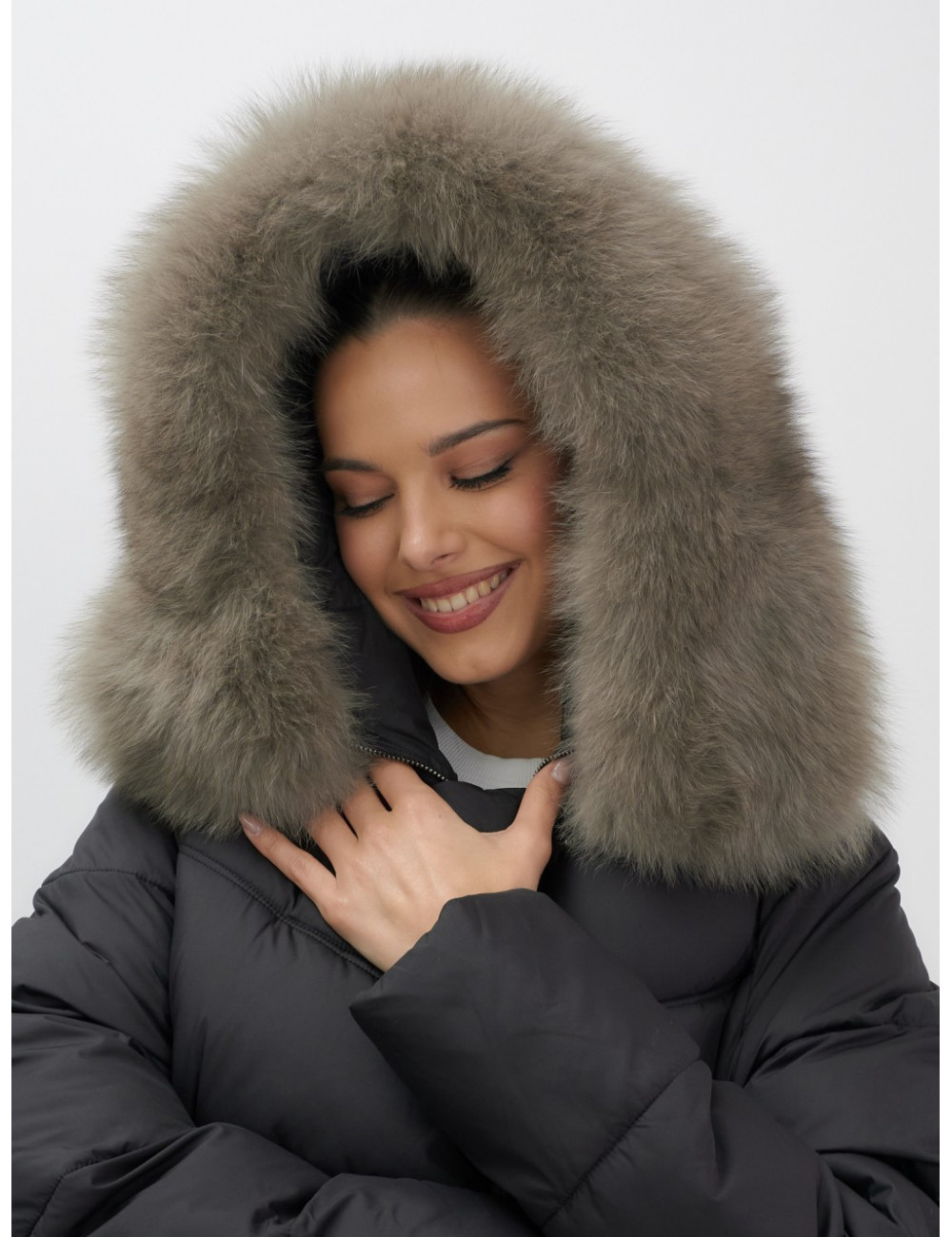 Купить за 18689 ₽ в Москве Пуховик-пальто женское утеплённое с мехом и капюшоном, чёрное