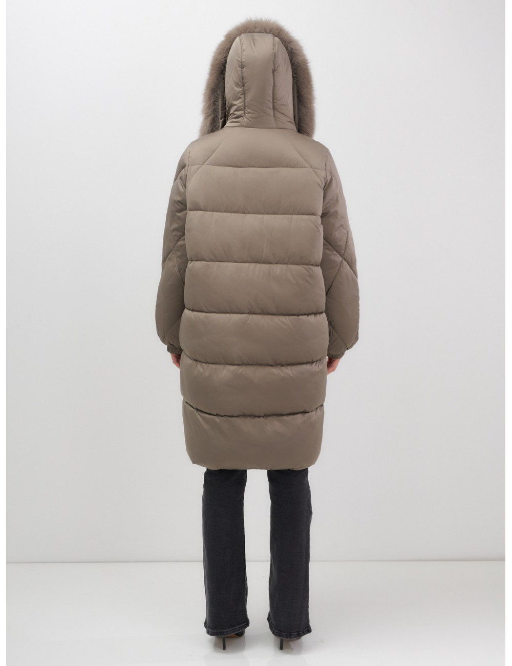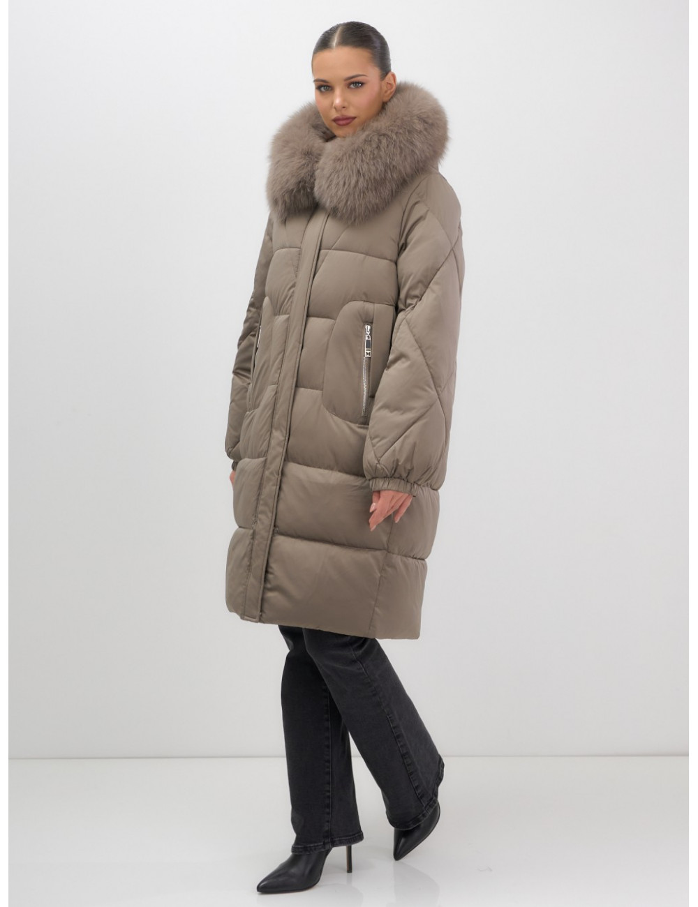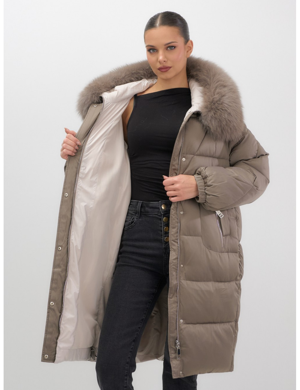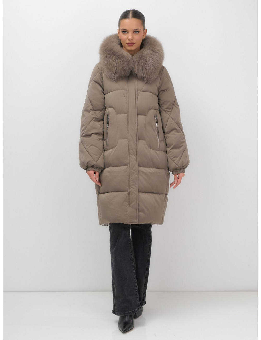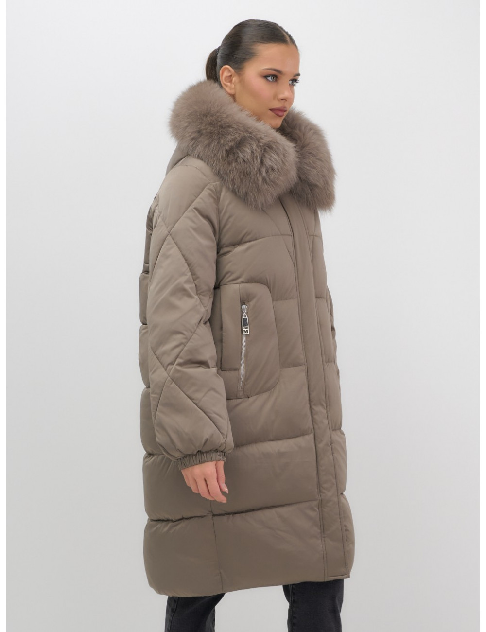 Пуховик-пальто гармонично сочетается с различными элементами гардероба. Он станет отличным дополнением к деловому костюму или создаст стильный образ с джинсами и ботинками. Натуральный мех песца придаёт образу изысканность и элегантность. Доставка по Москве и Московской области Пуховик-пальто женское утеплённое с мехом и капюшоном, тренд коричневого оттенка