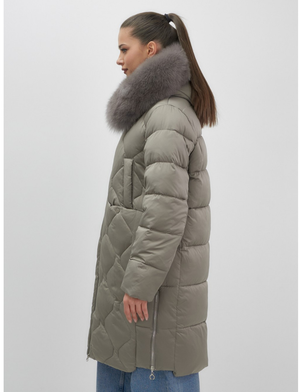 Купить за 18689 ₽ в Москве Пуховик-пальто женское утеплённое с мехом и капюшоном, коричневый.