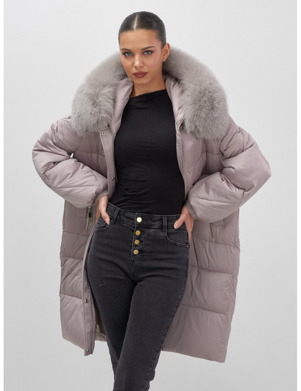 Откройте новую главу зимней элегантности с нашим пуховиком-пальто! Доставка по Москве и Московской области Пуховик-пальто женское утеплённое с мехом и капюшоном, тренд светло-коричневого оттенка