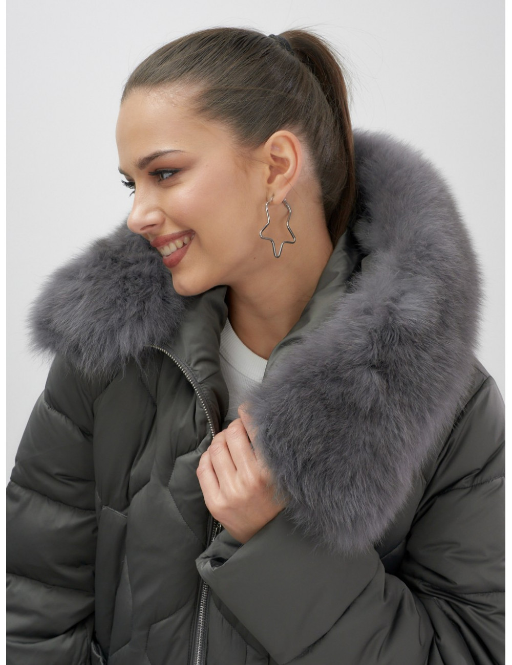 Купить за 18689 ₽ в Москве Пуховик-пальто женское утеплённое с мехом и капюшоном, тёмно-зелёное