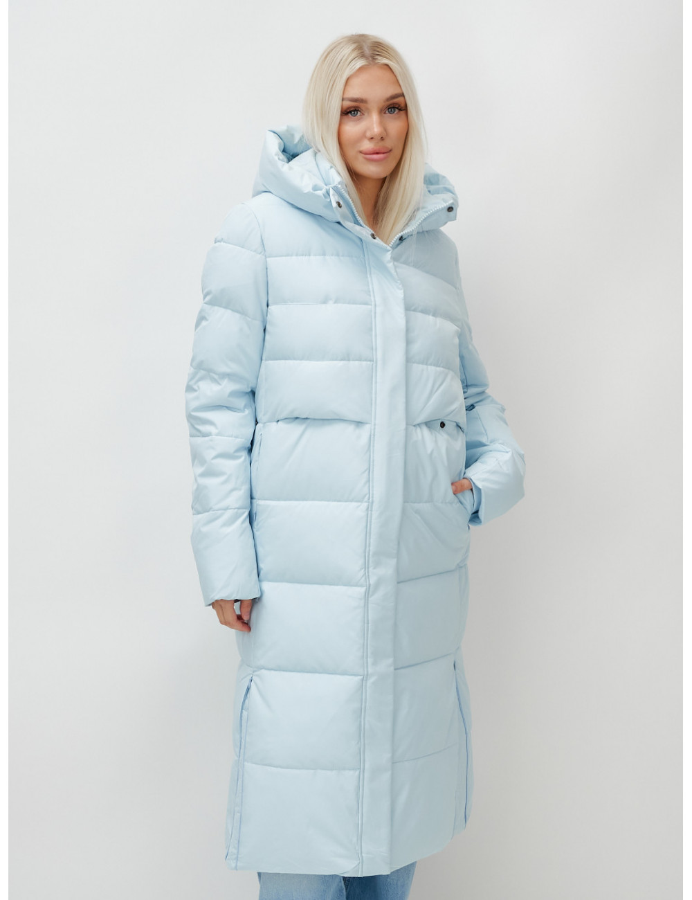 Не упустите возможность добавить этот практичный элемент в ваш гардероб и быть готовыми к любым погодным условиям! Доставка по Москве и Московской области Пуховик-пальто женское утеплённое стёганое зимнее с капюшоном, голубое