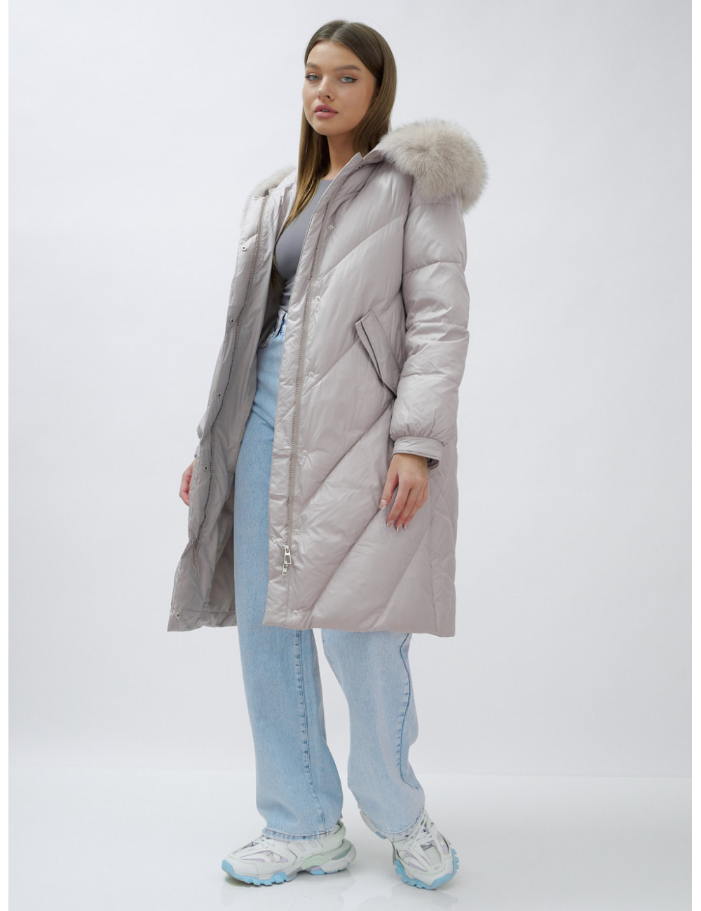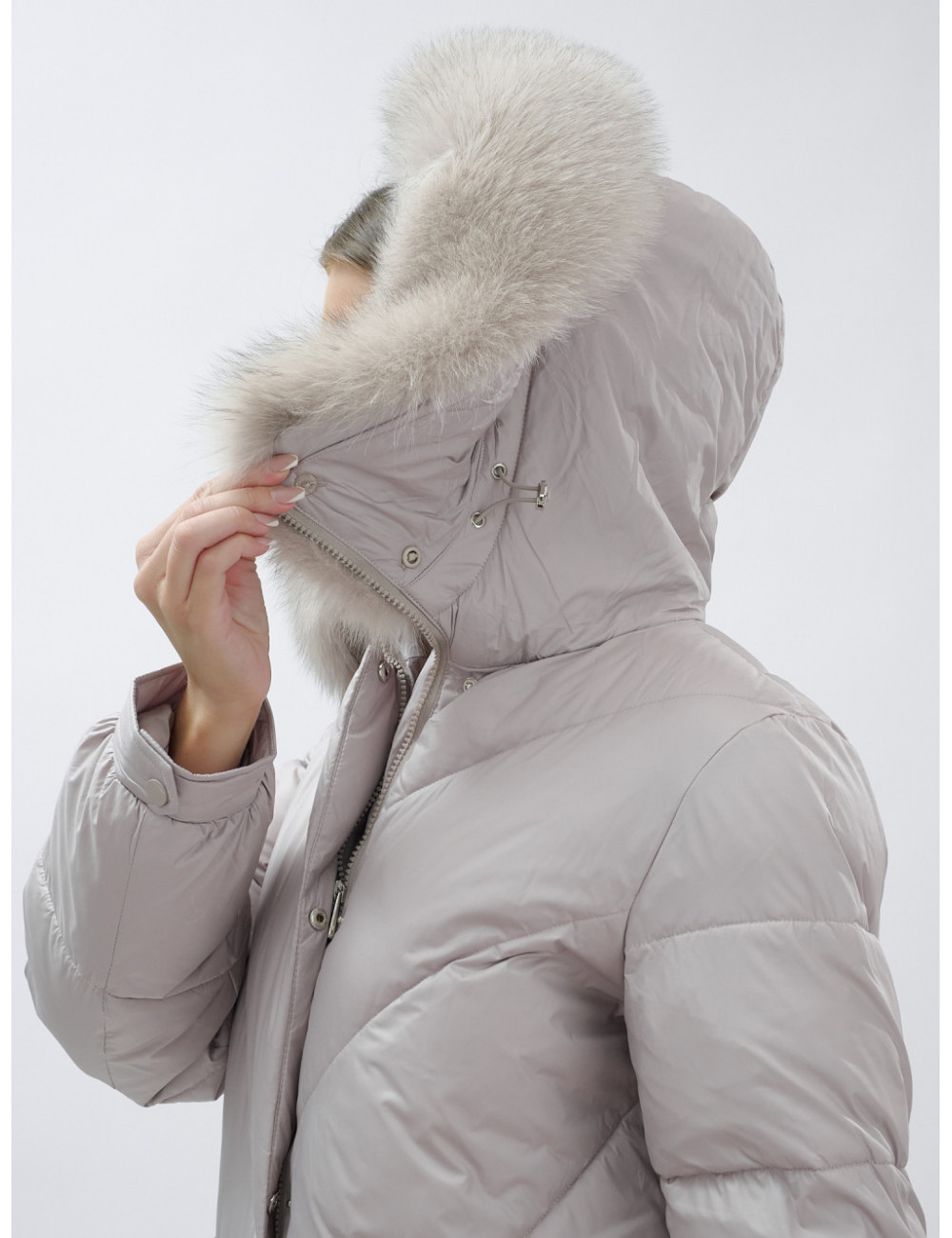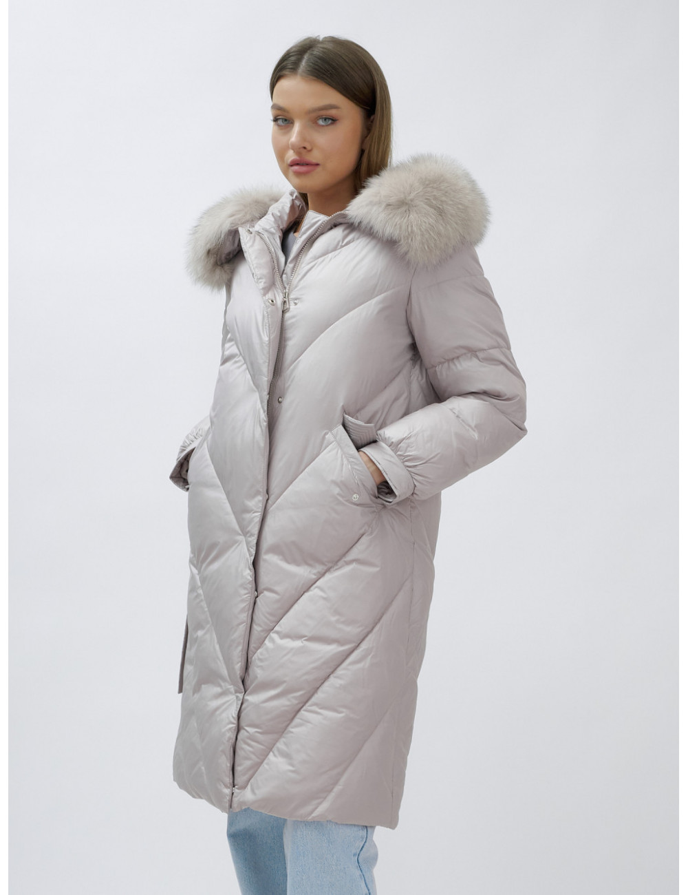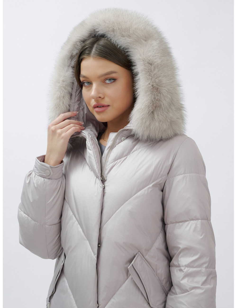 Купить за 26489 ₽ в Москве Пуховик-пальто женское зимнее с мехом песца, бежевый, люкс класса Женское зимнее пуховик-пальто с натуральным мехом песца