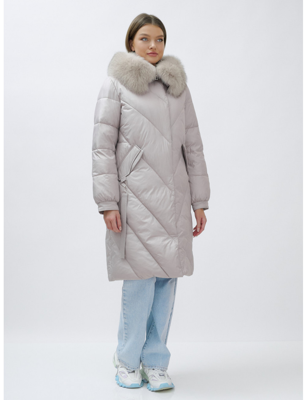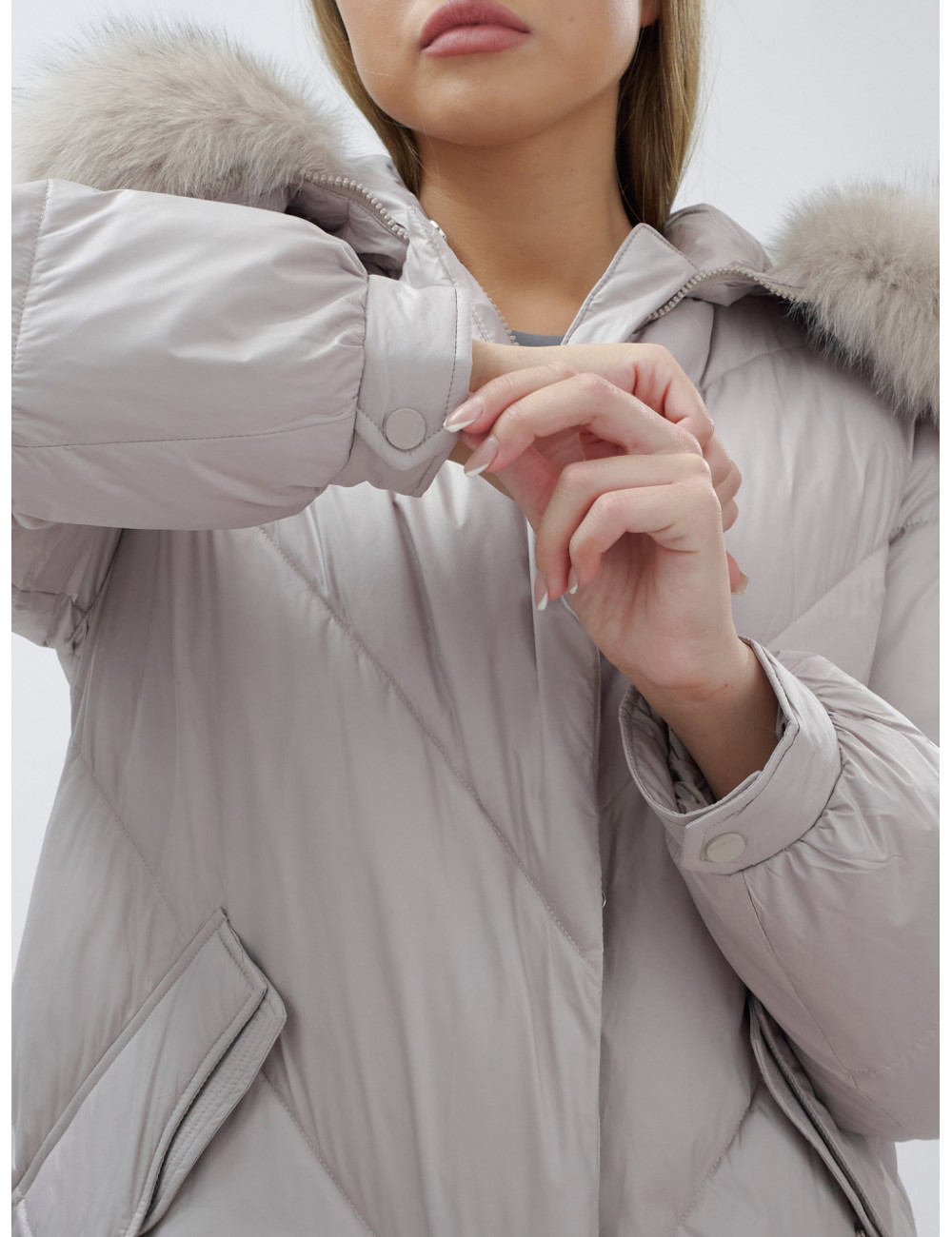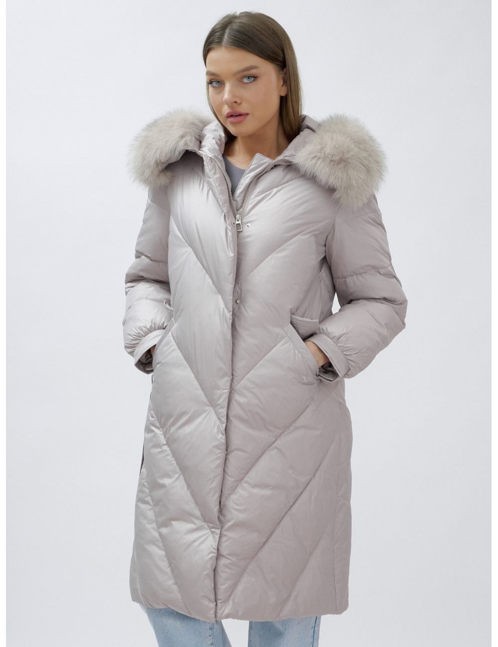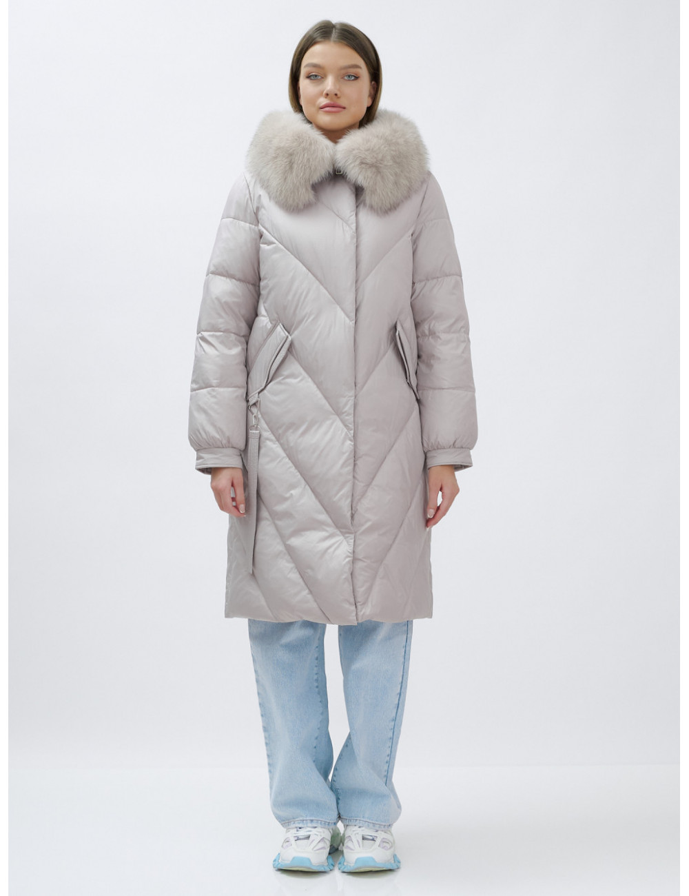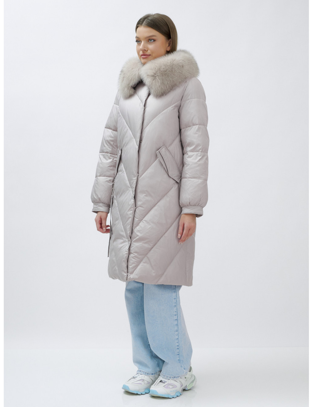 Купить за 26489 ₽ в Москве Пуховик-пальто женское зимнее с мехом песца, бежевый, люкс класса Женское зимнее пуховик-пальто с натуральным мехом песца