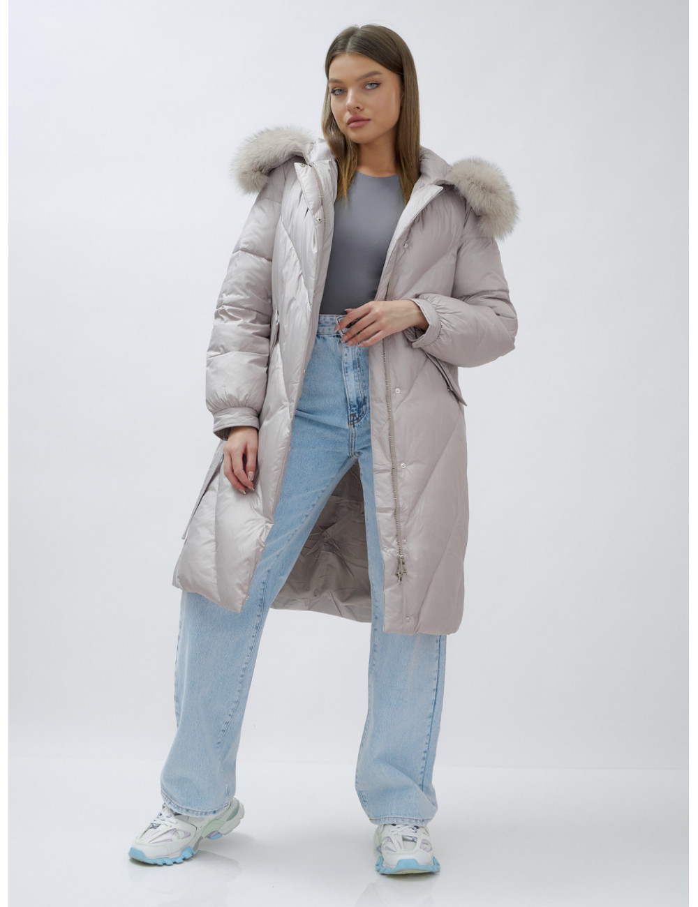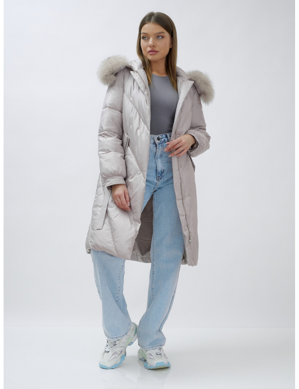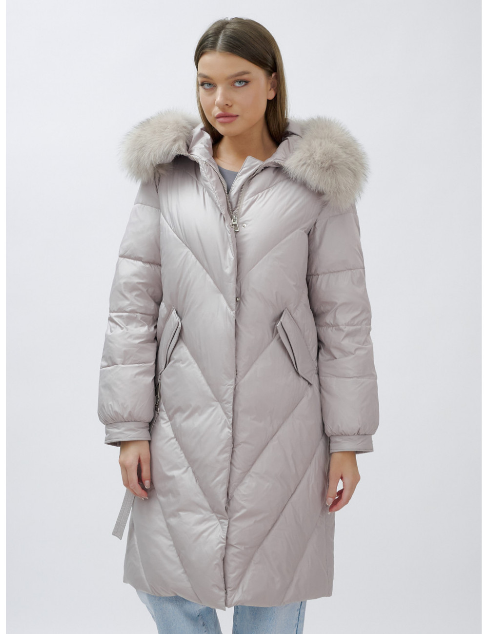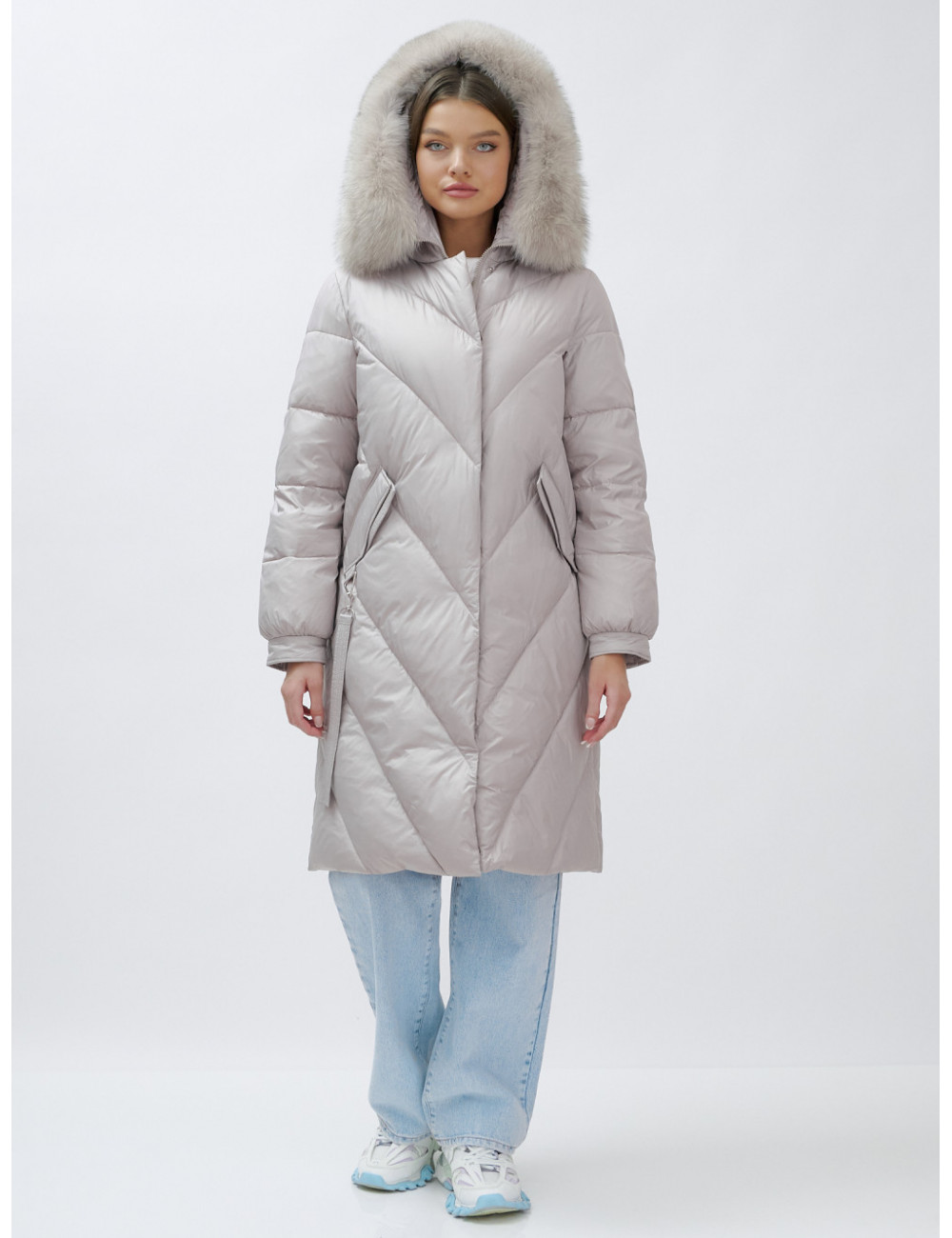 Купить за 26489 ₽ в Москве Пуховик-пальто женское зимнее с мехом песца, бежевый, люкс класса Женское зимнее пуховик-пальто с натуральным мехом песца